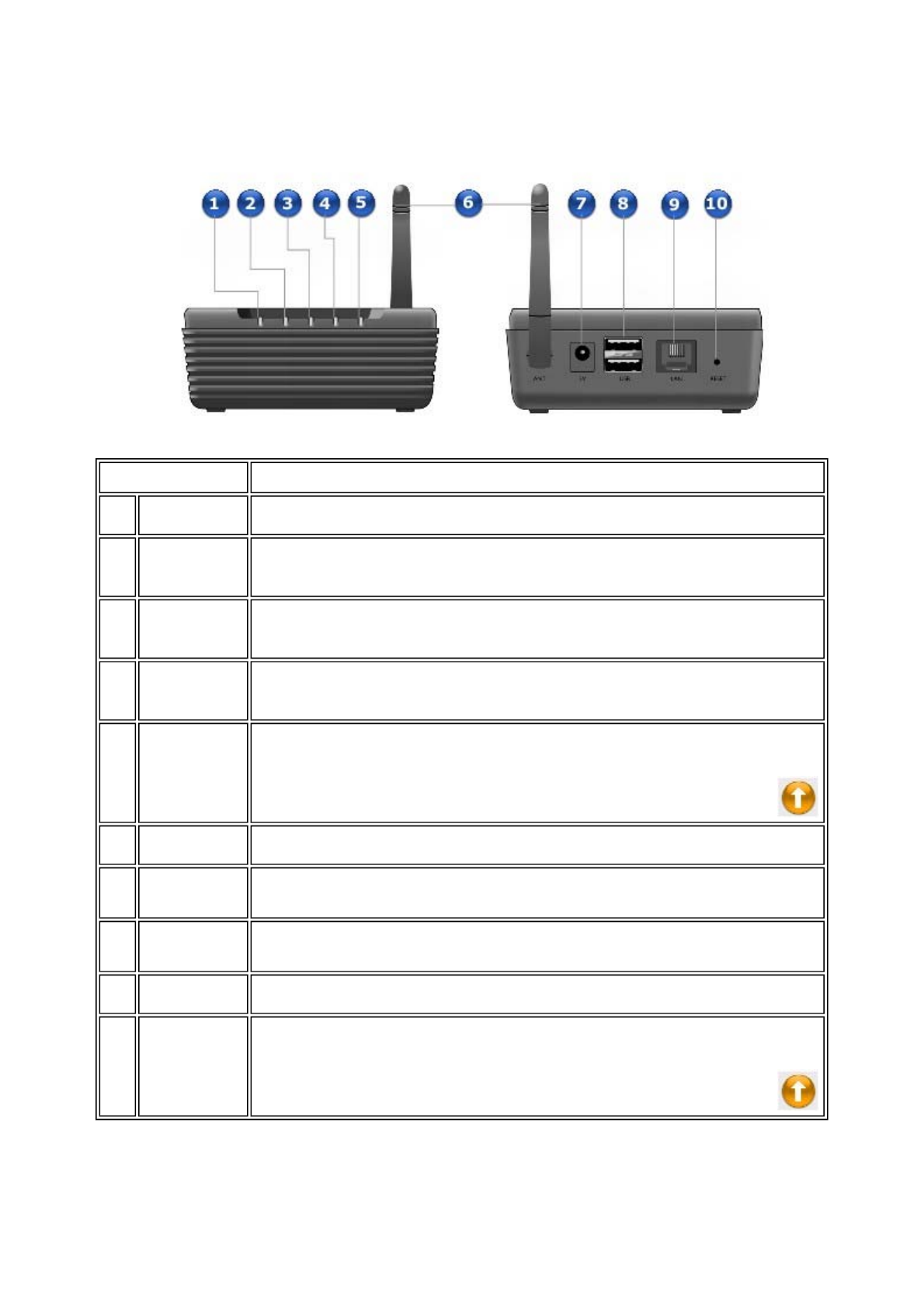 1. Power LED Lights up when your Wireless Server is connected to a power source.