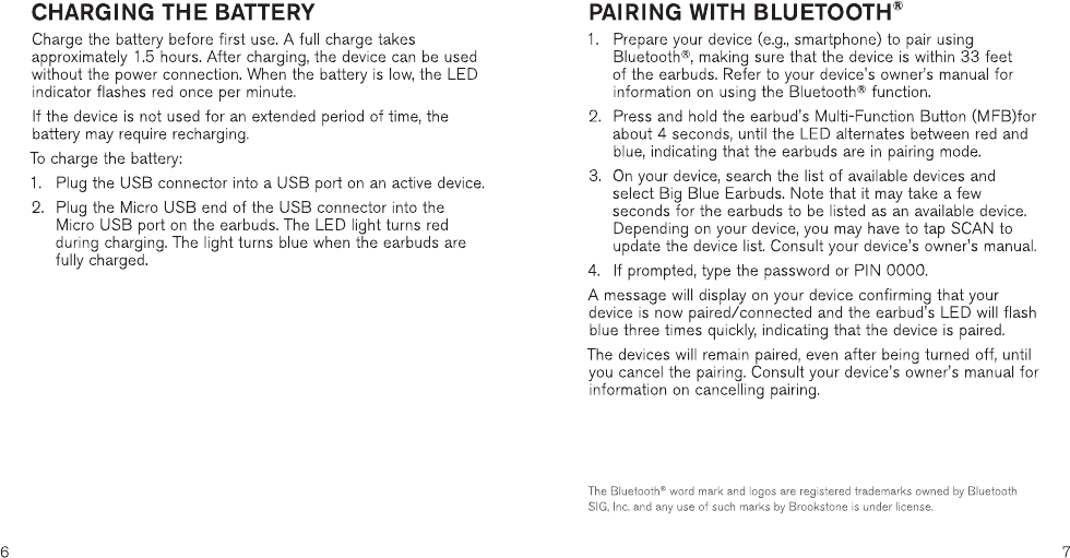 Brookstone Purchasing AR112A2XXA BIG BLUE Wireless Earbuds User Manual B246 SMBT 086