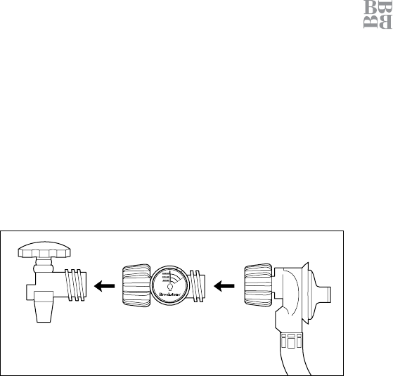 to the Grill Gauge by hand tightening the regulator plastic coupling