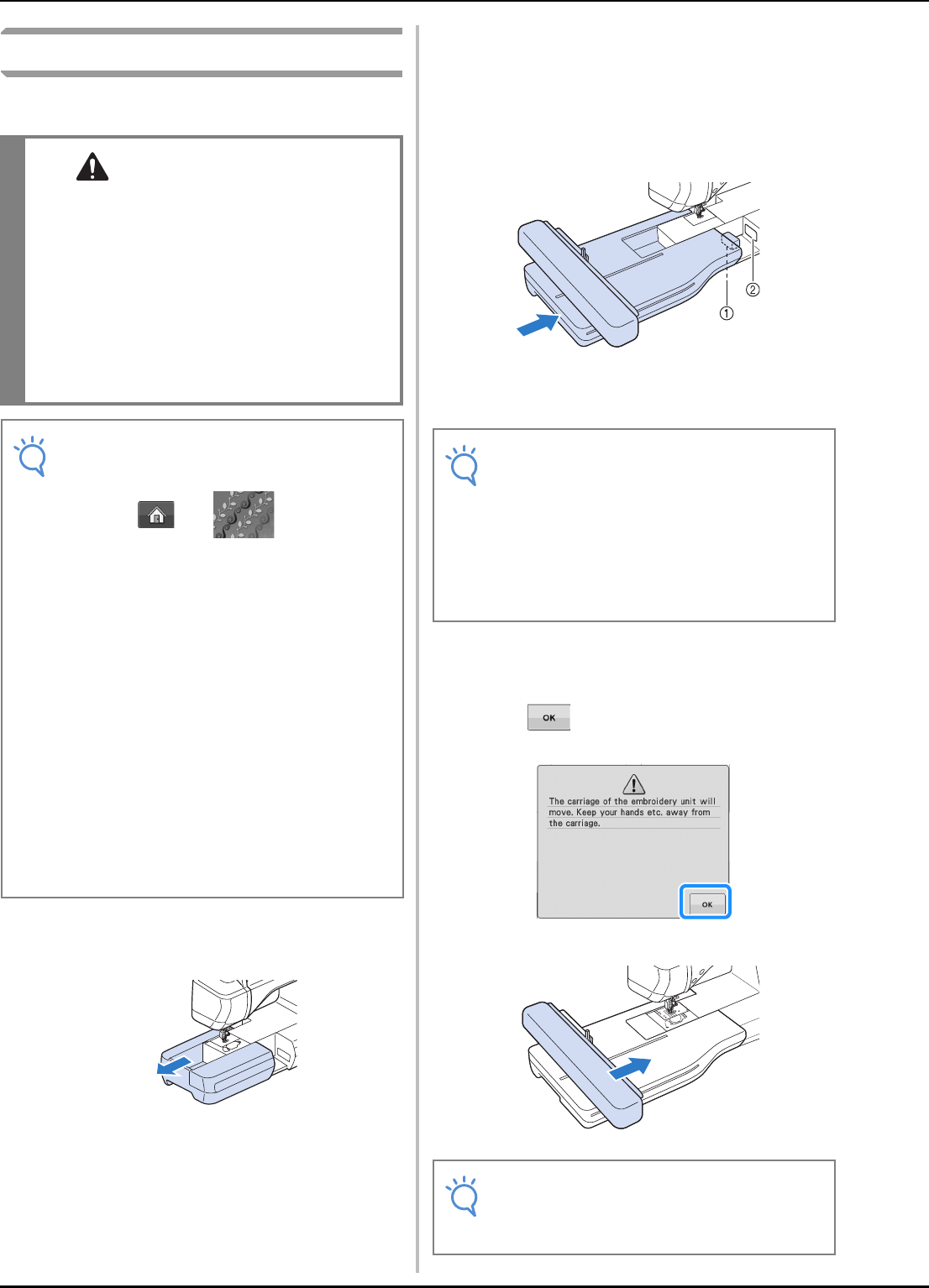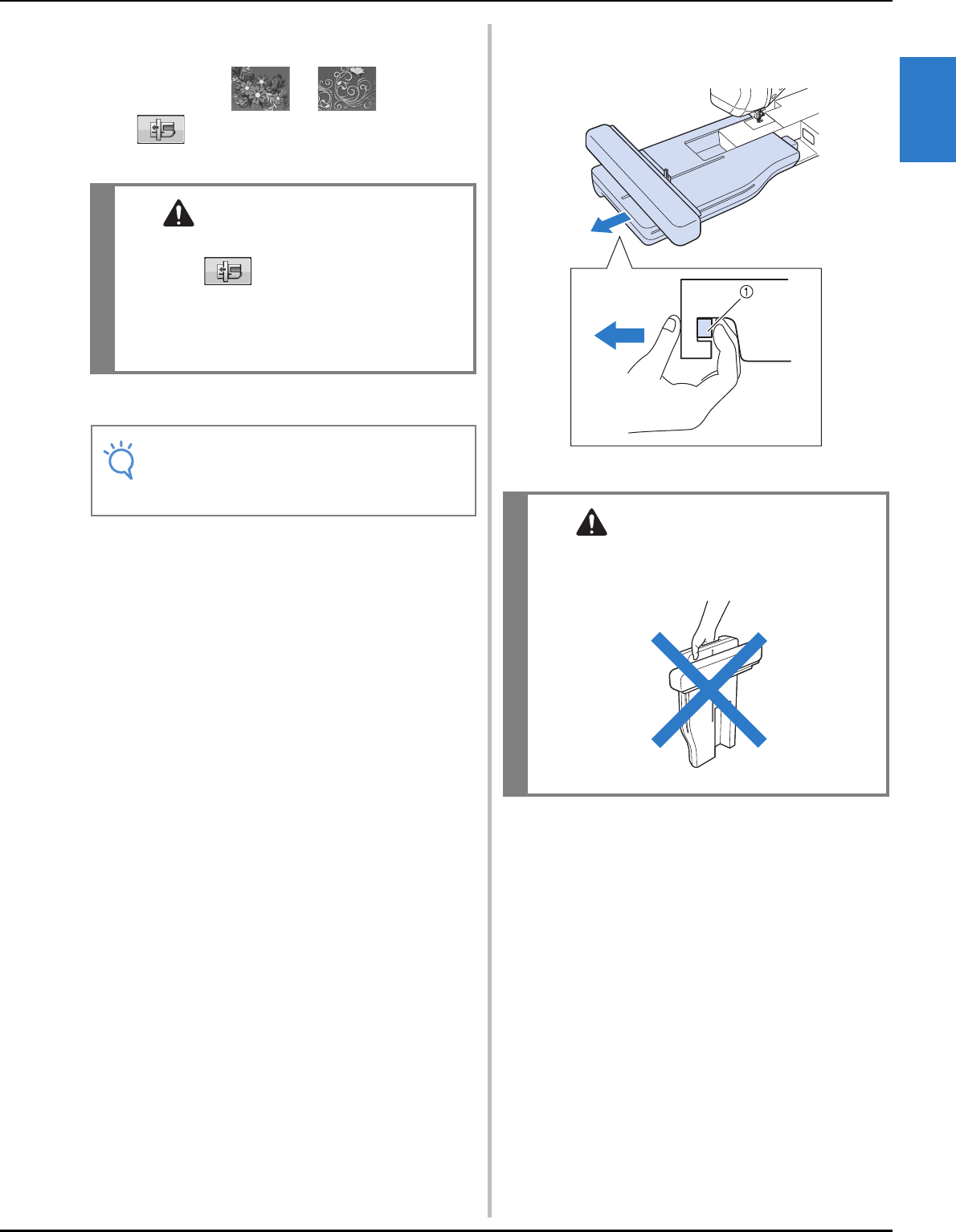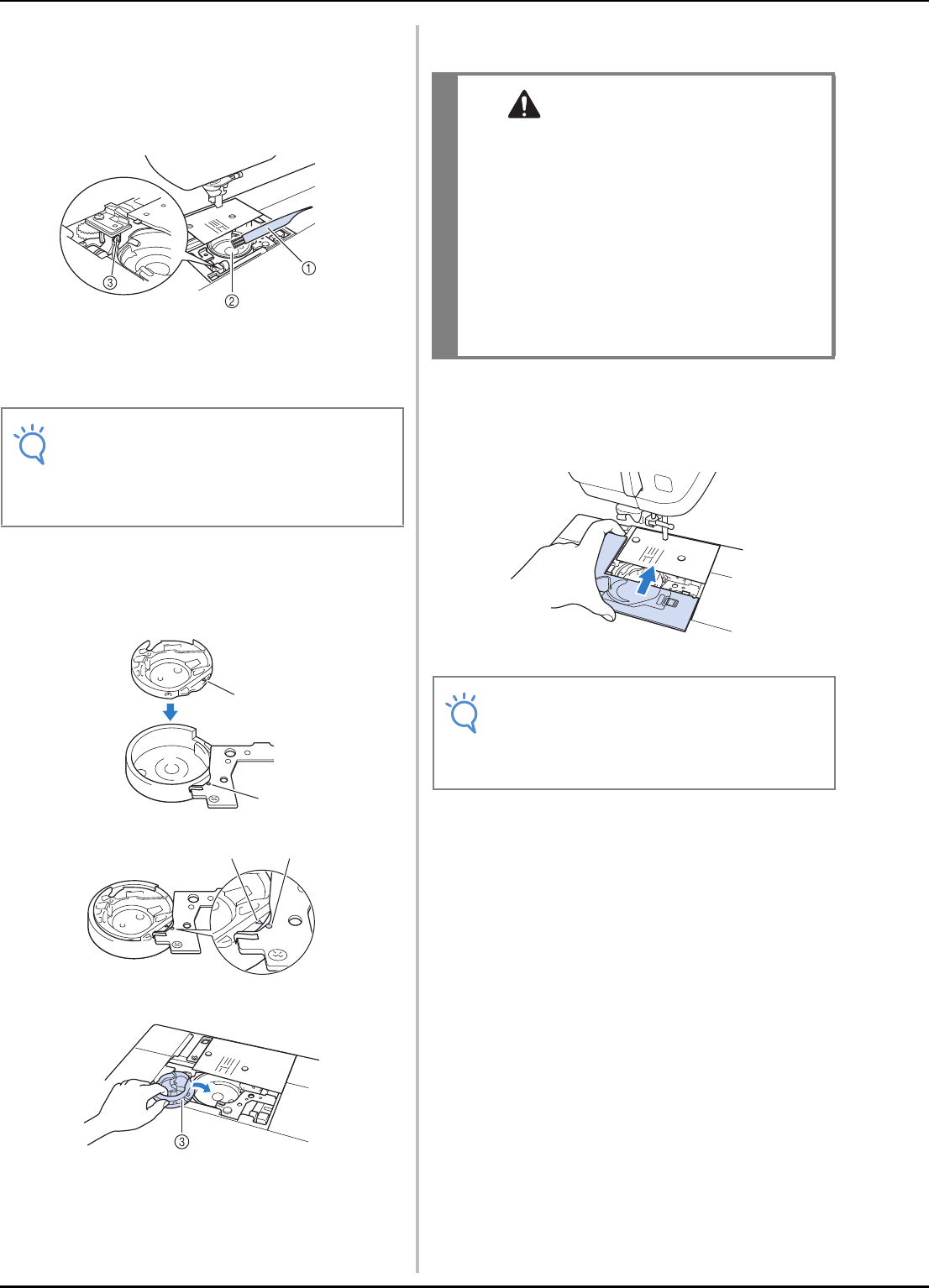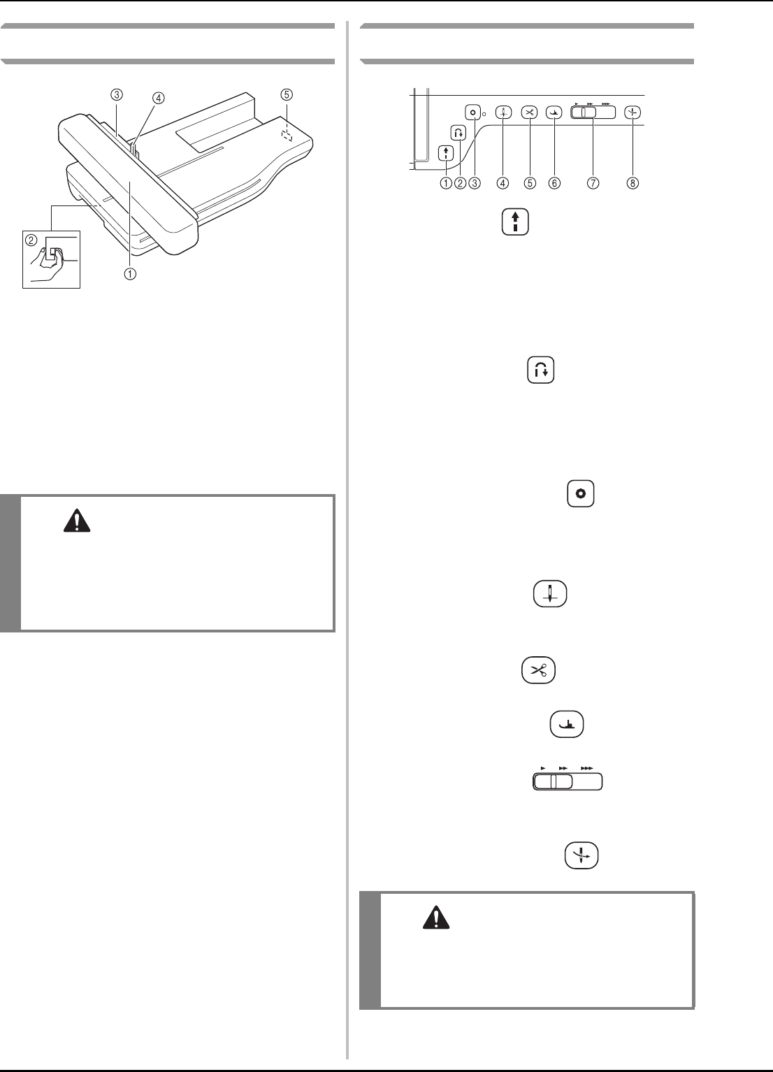 • When lifting the sewing machine, be careful not to make any sudden or careless movements, otherwise you may