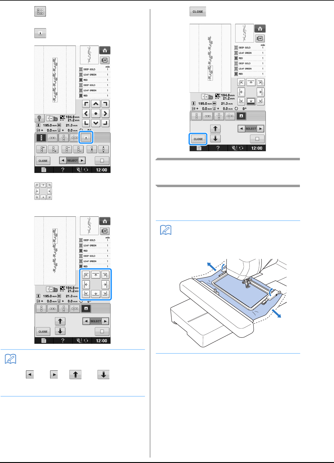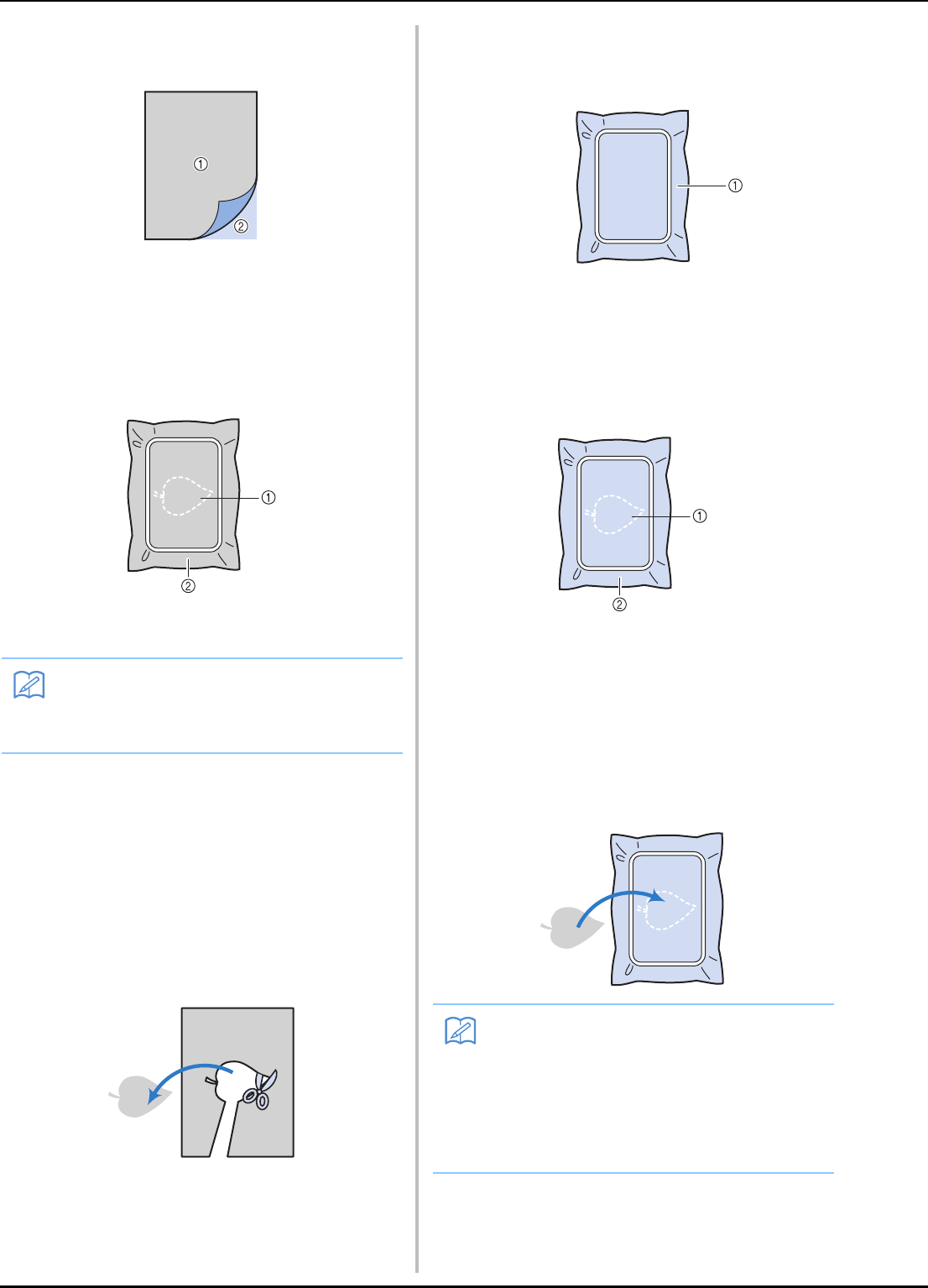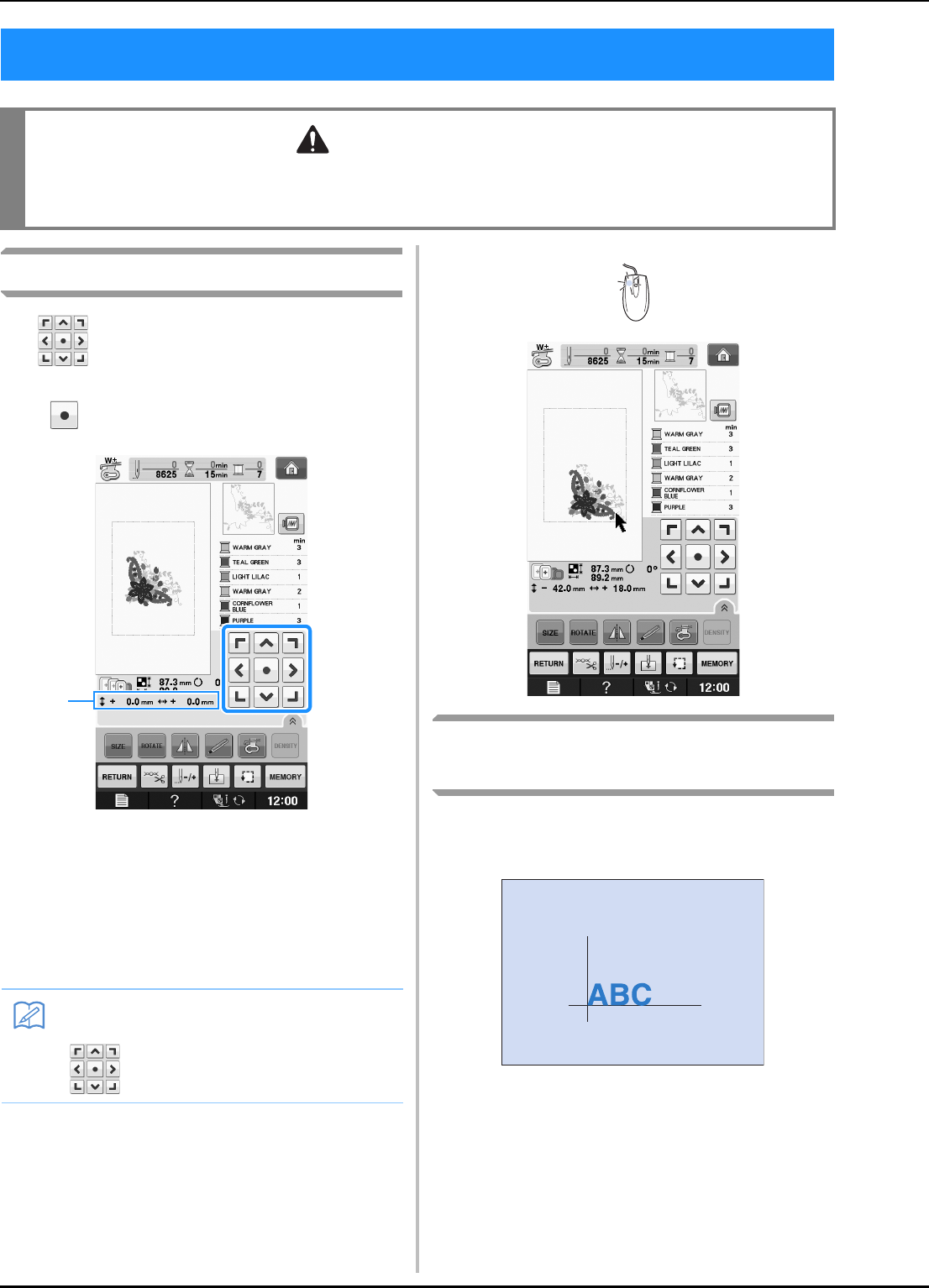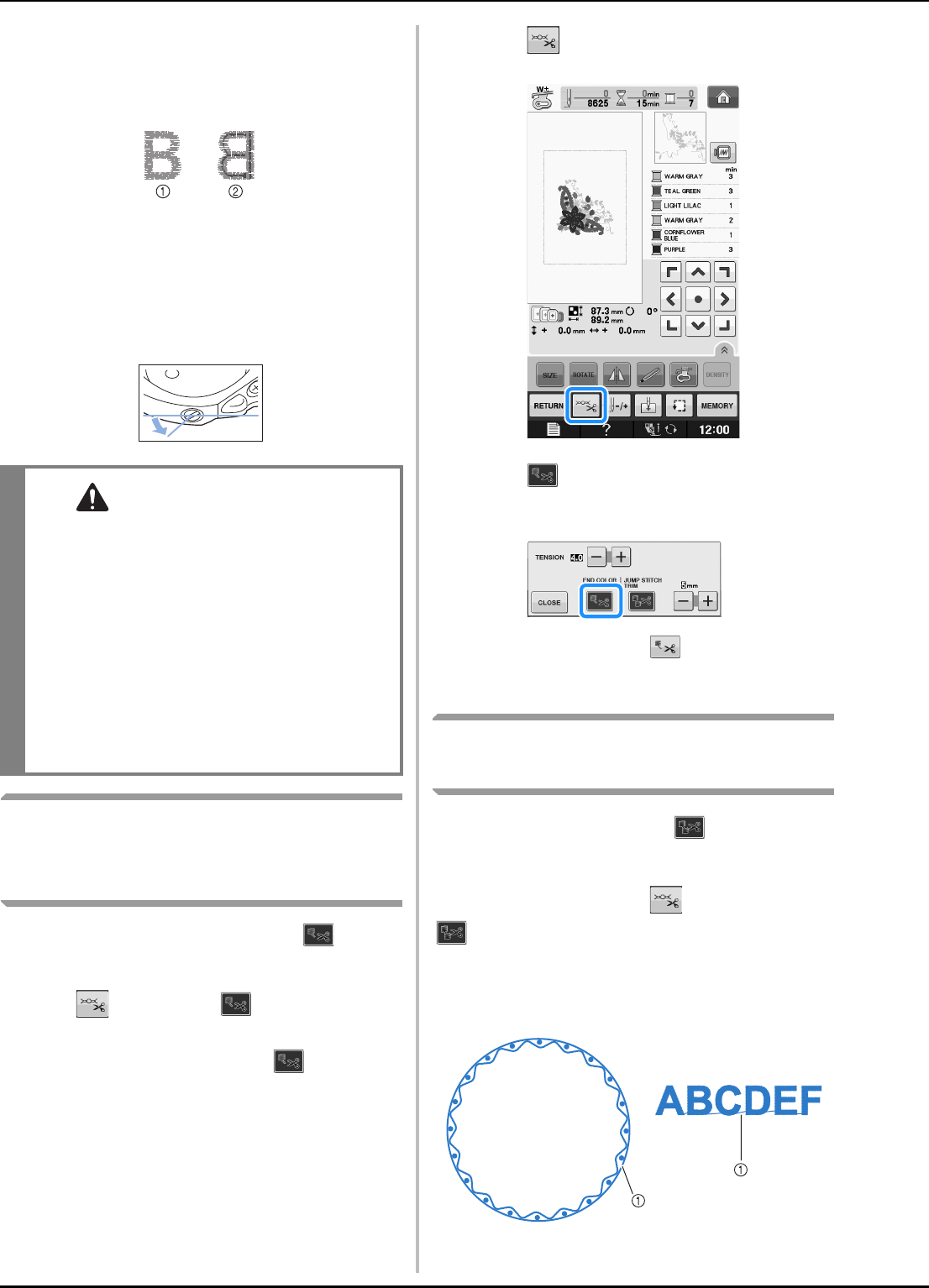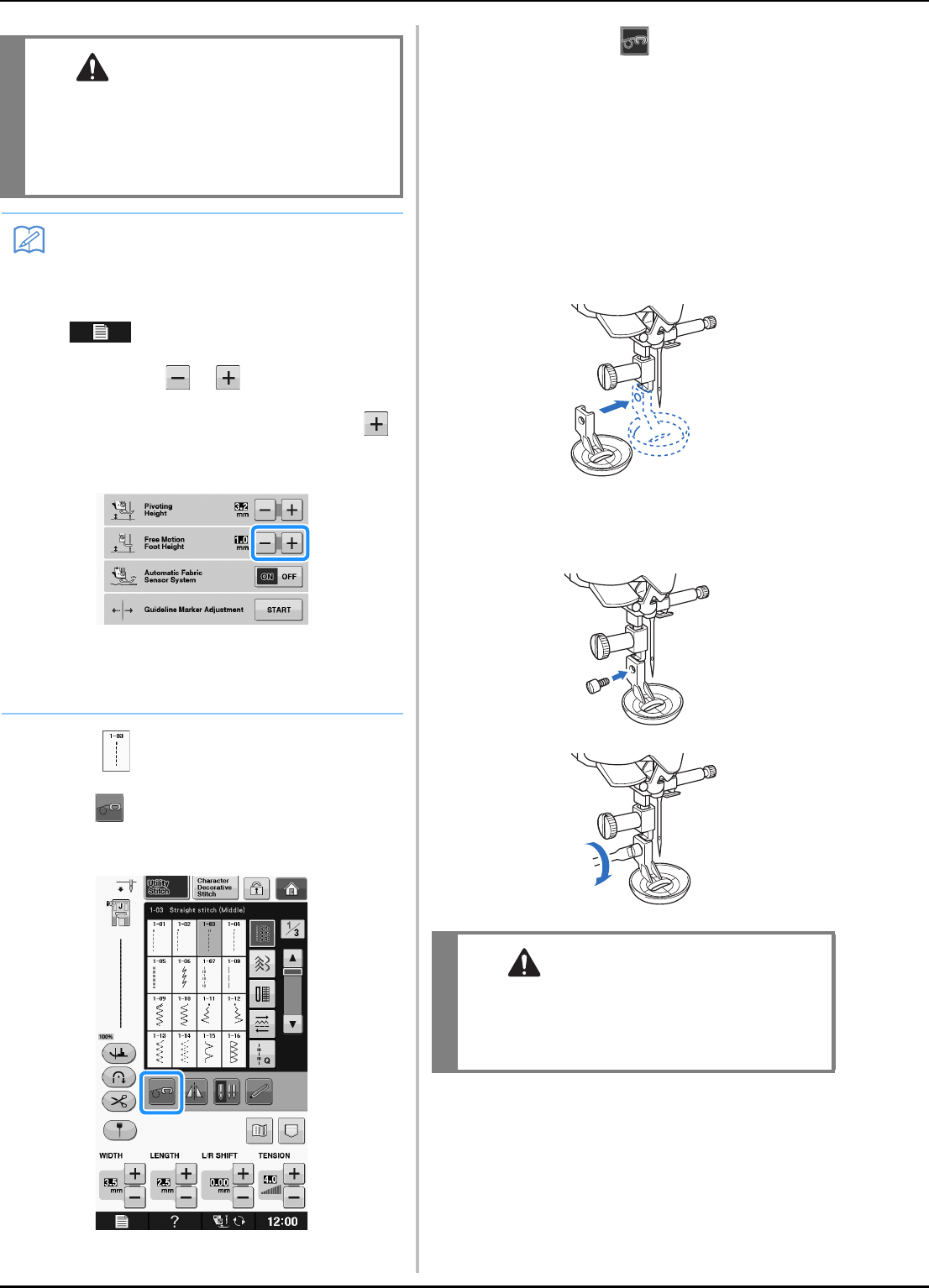 • Do not push or pull the fabric when sewing, and follow careful instruction when free motion stitching so that