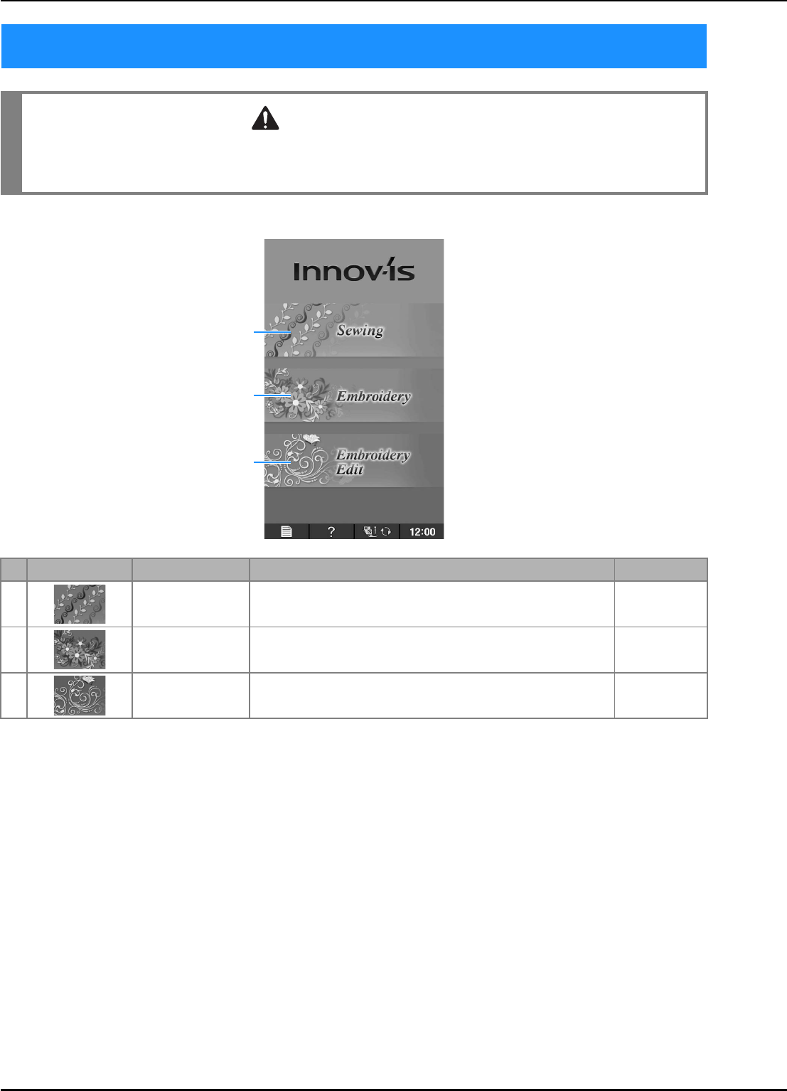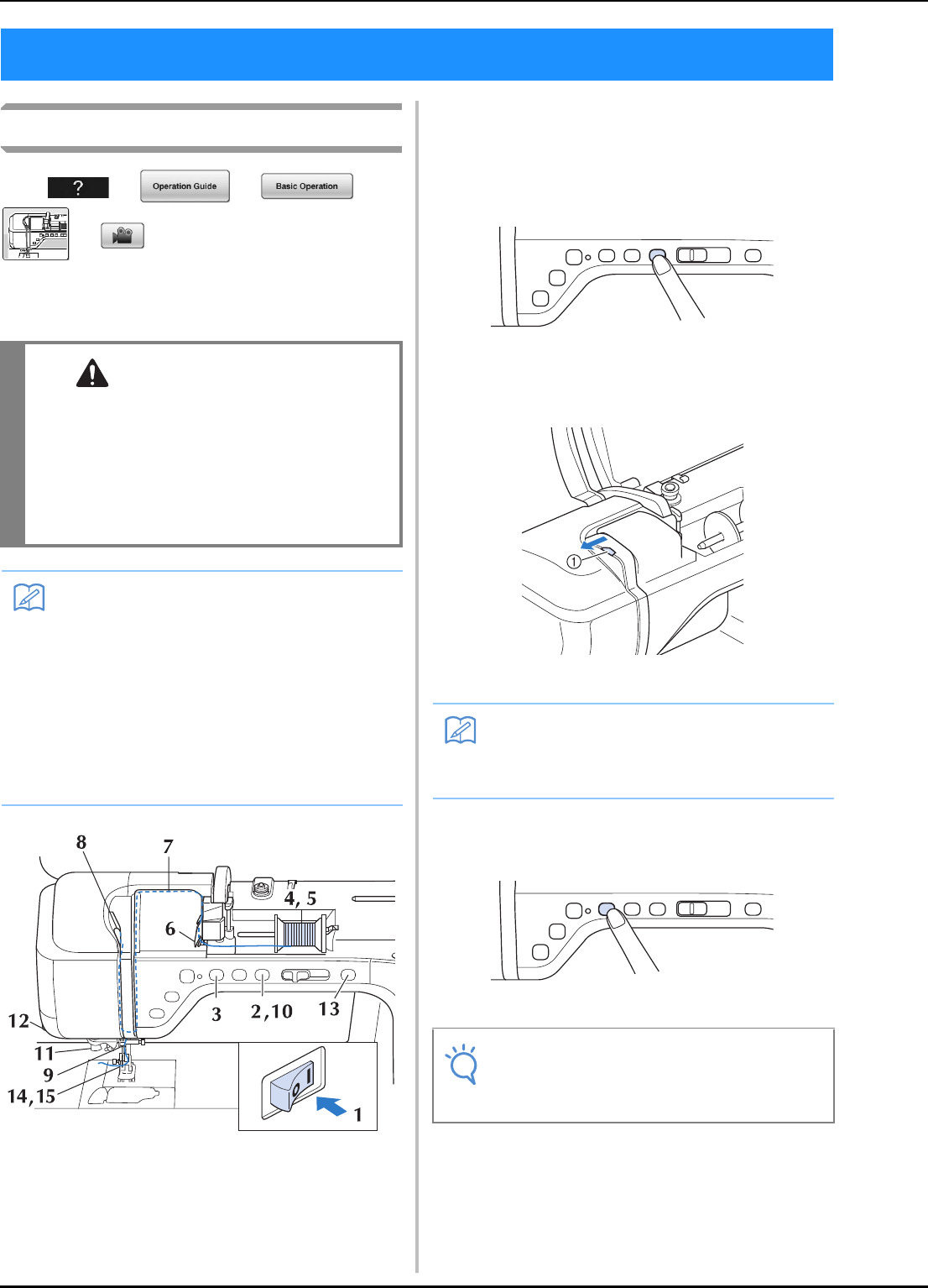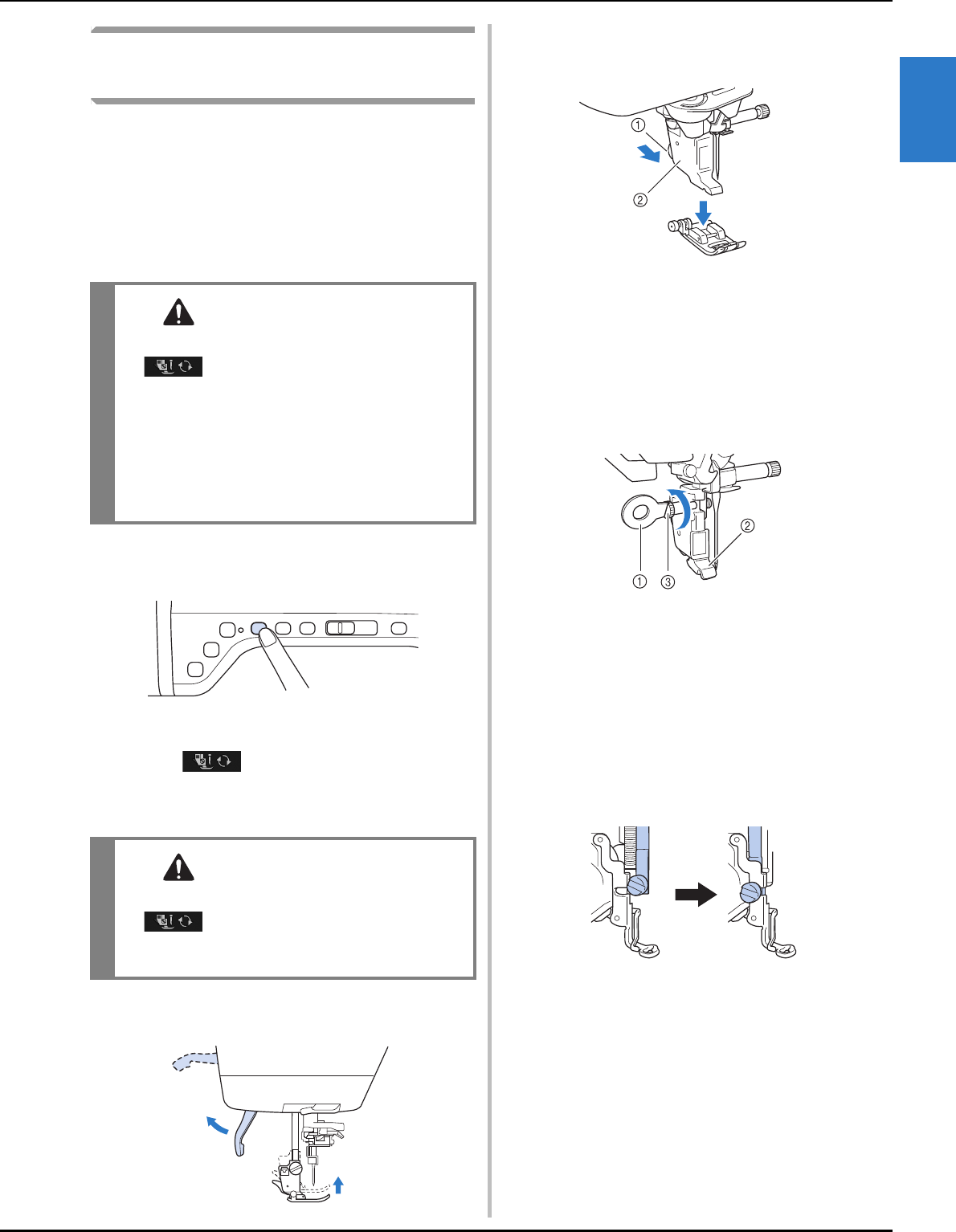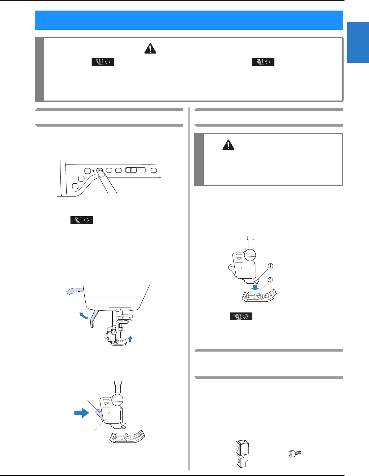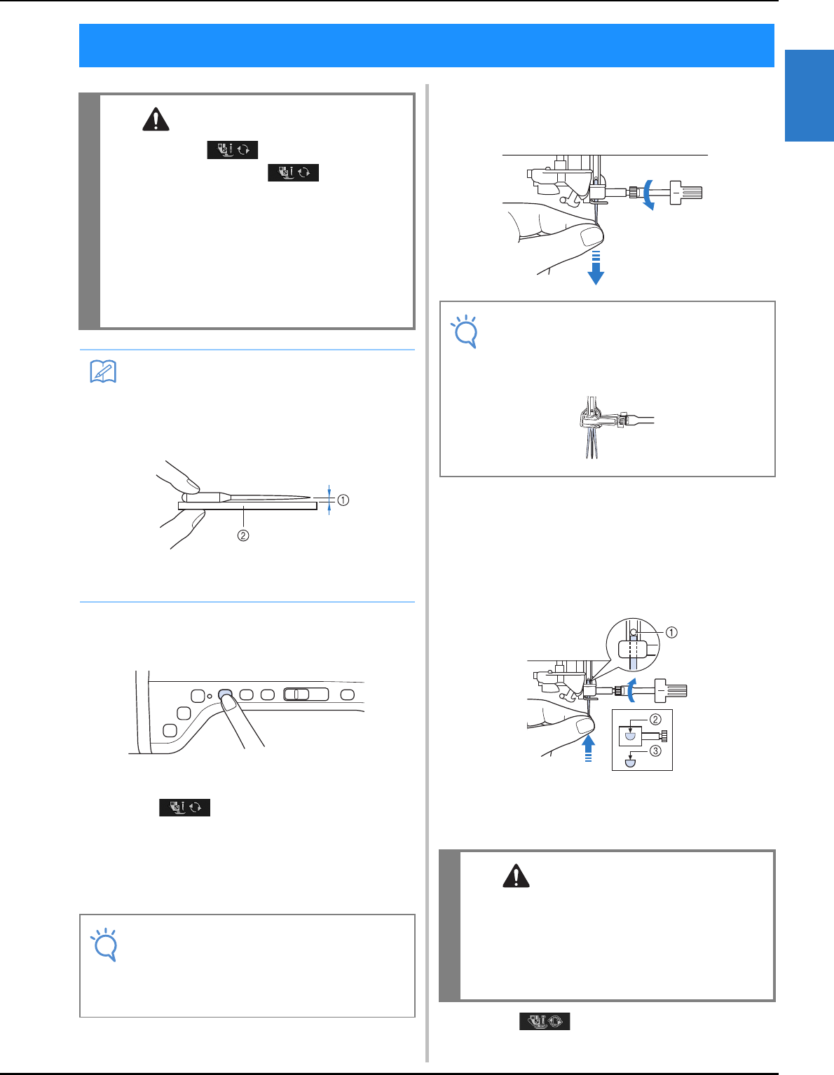 • Switch the sewing machine to the symbol “O” position to turn it off when making any adjustments in the needle