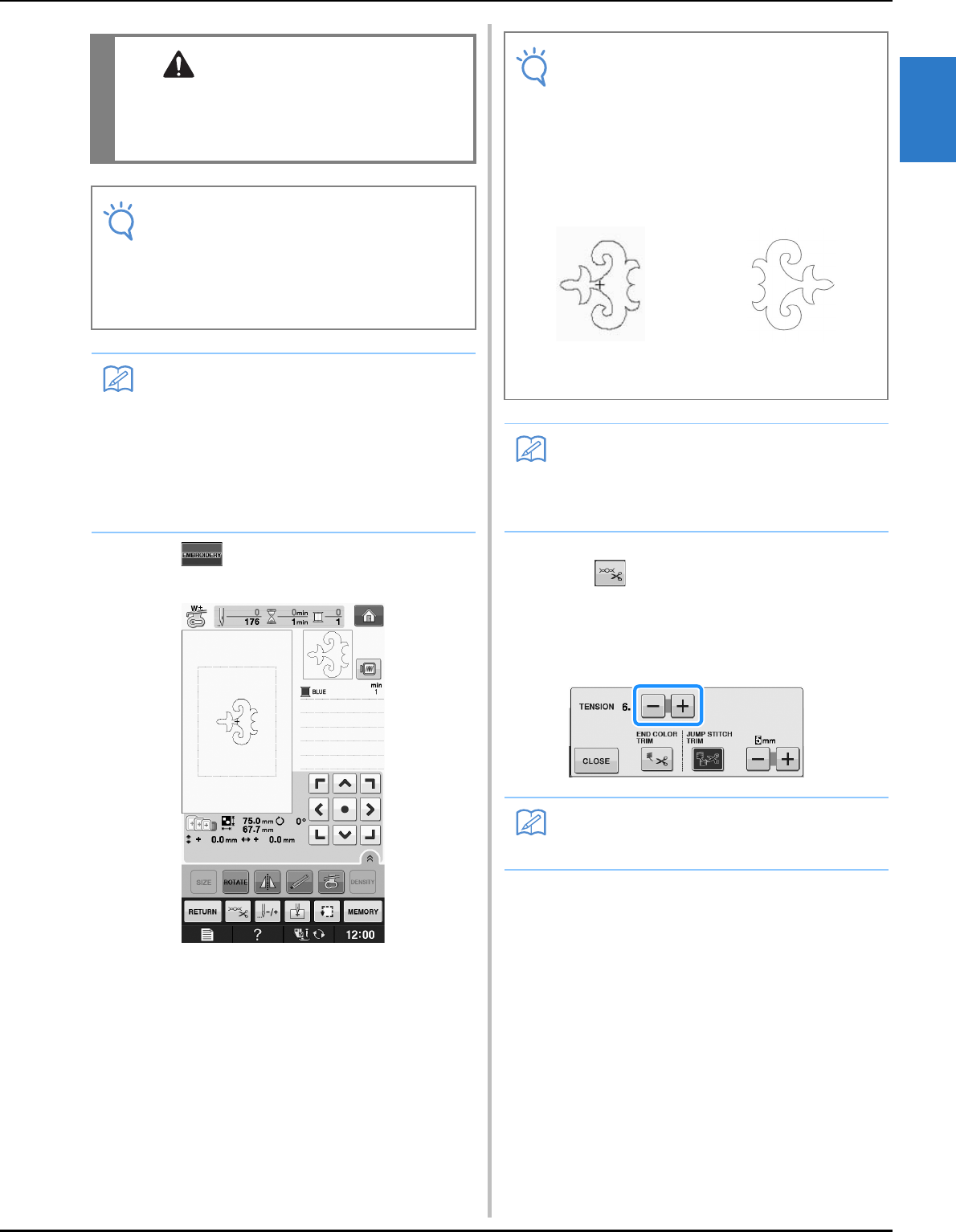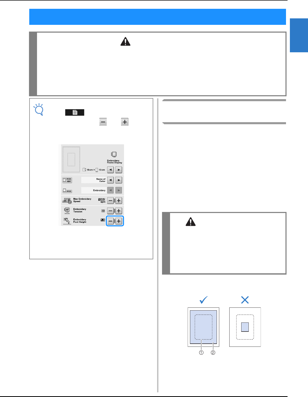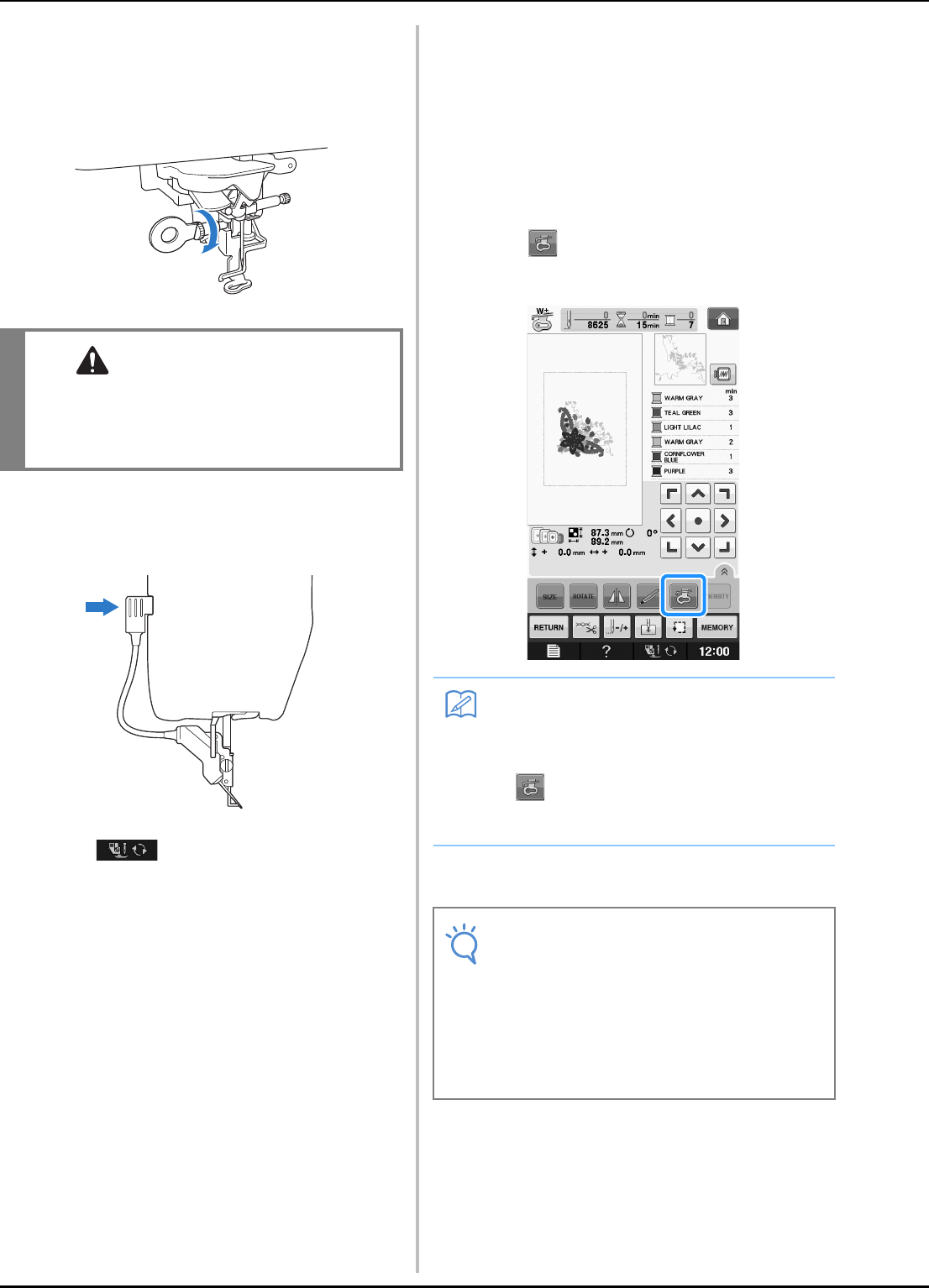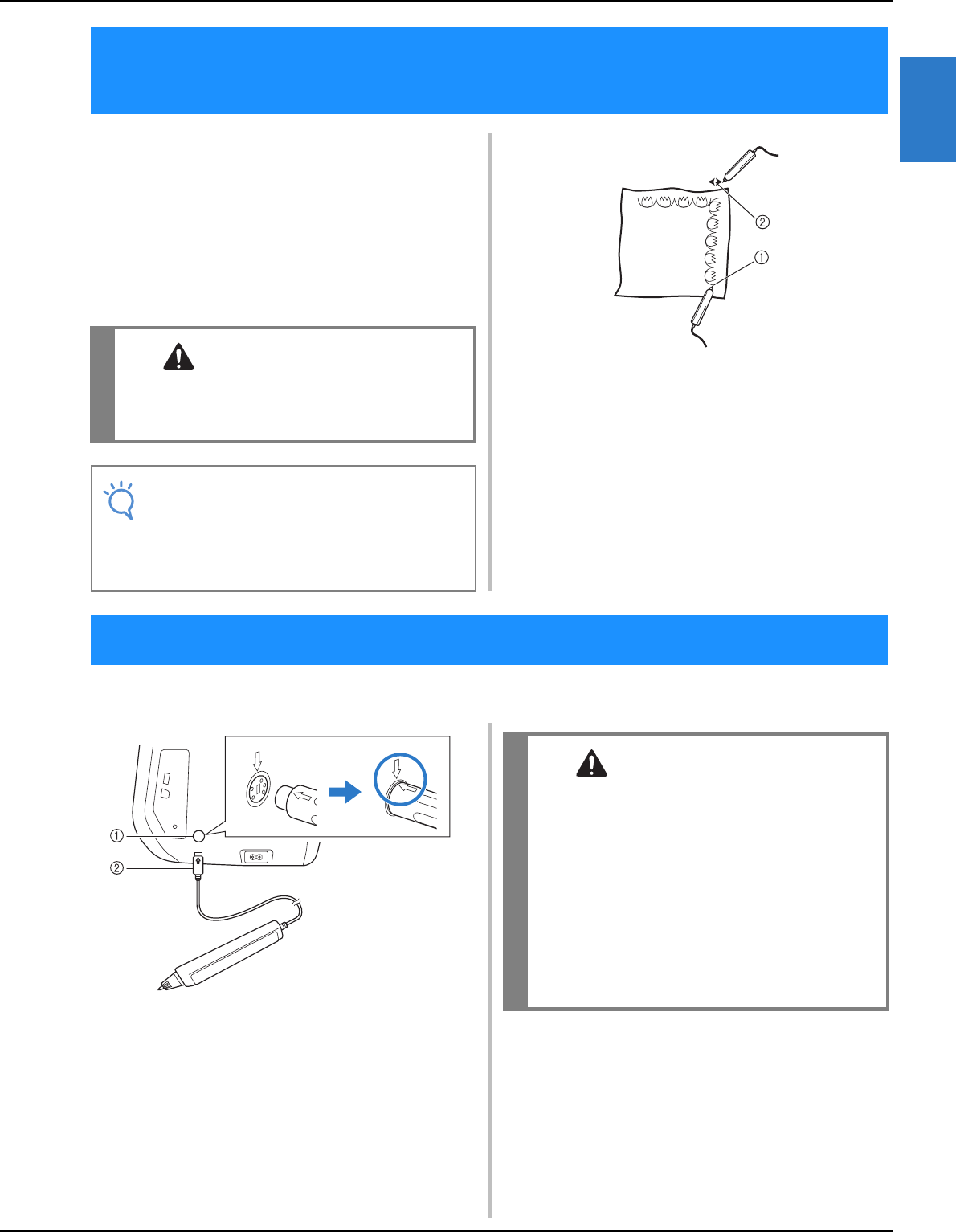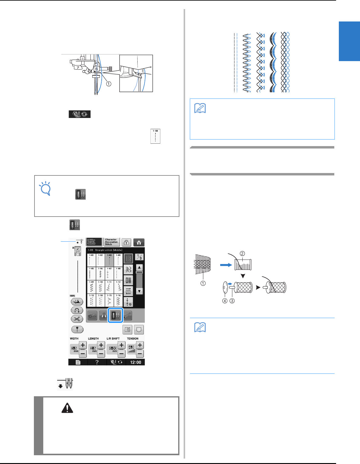 • Switch the sewing machine to the symbol “O” position to turn it off when making any adjustments in the needle