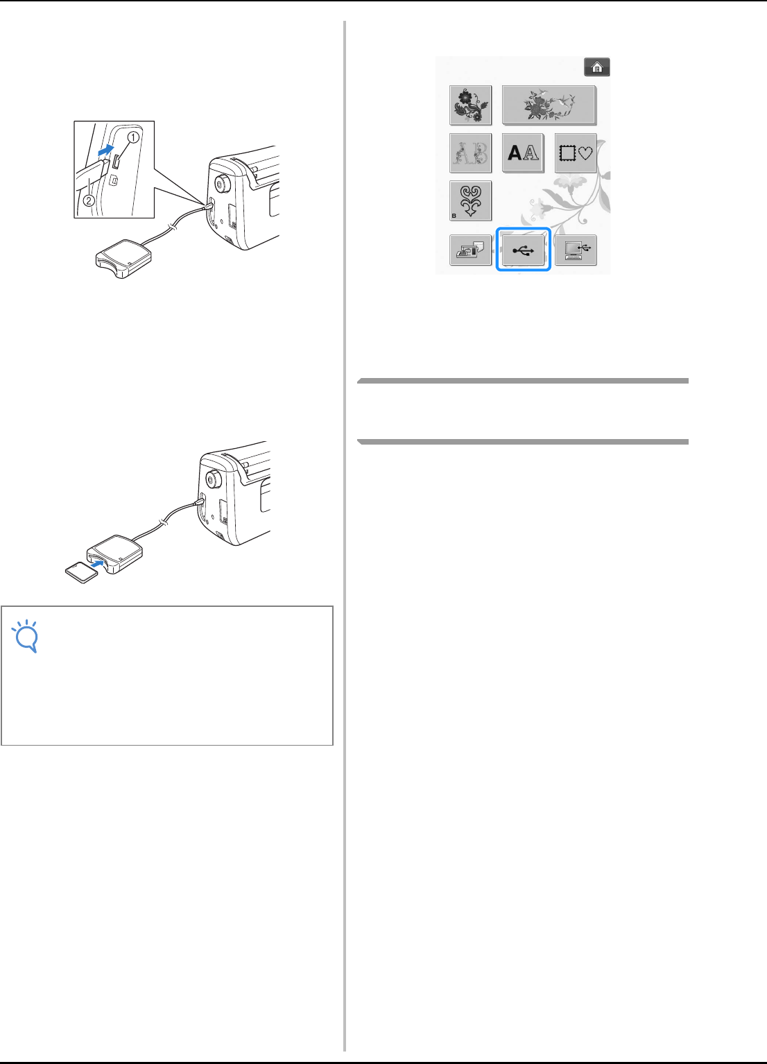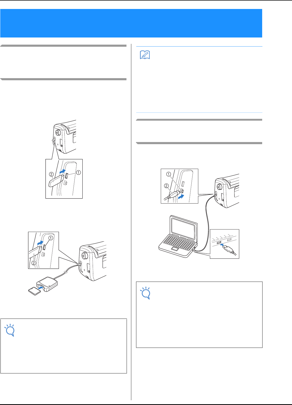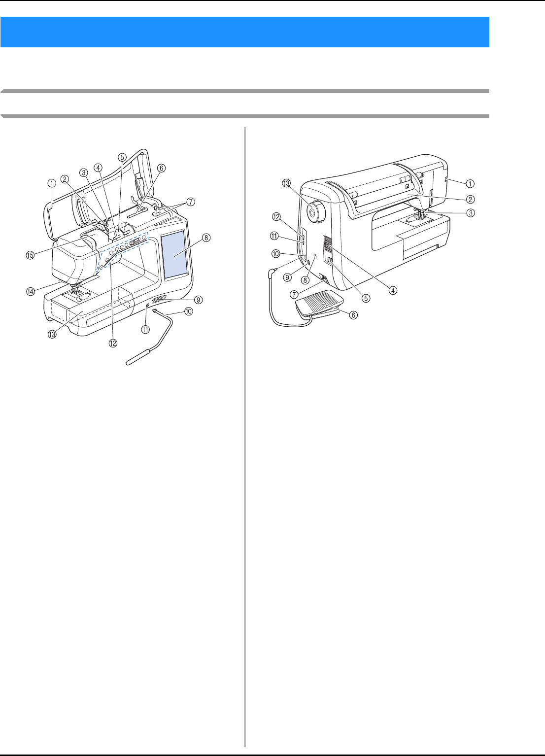 • When transporting the sewing machine, be sure to carry it by its handle. Lifting the sewing machine by any other