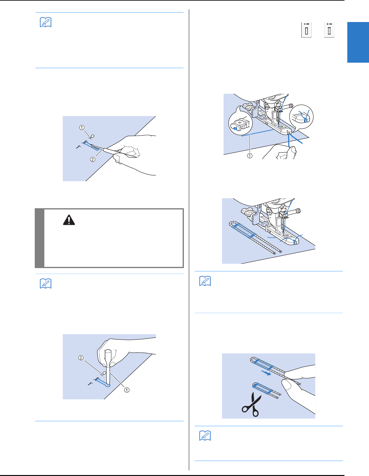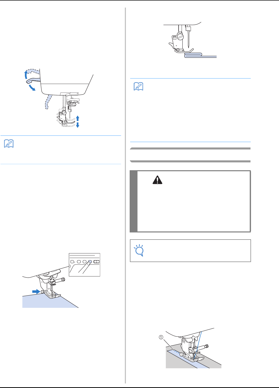 • Always pay close attention to the needle. Do not use bent or damaged needles.