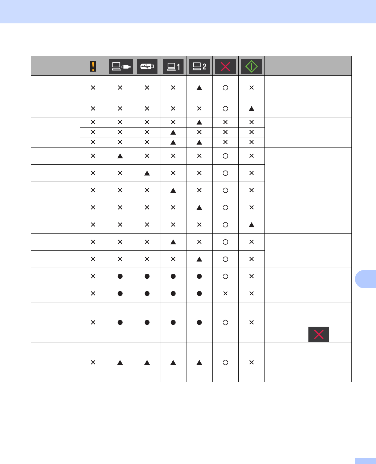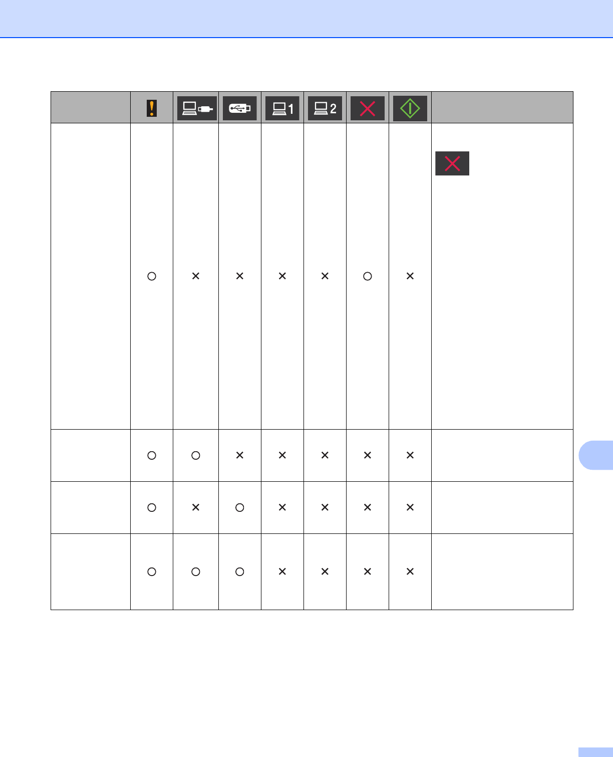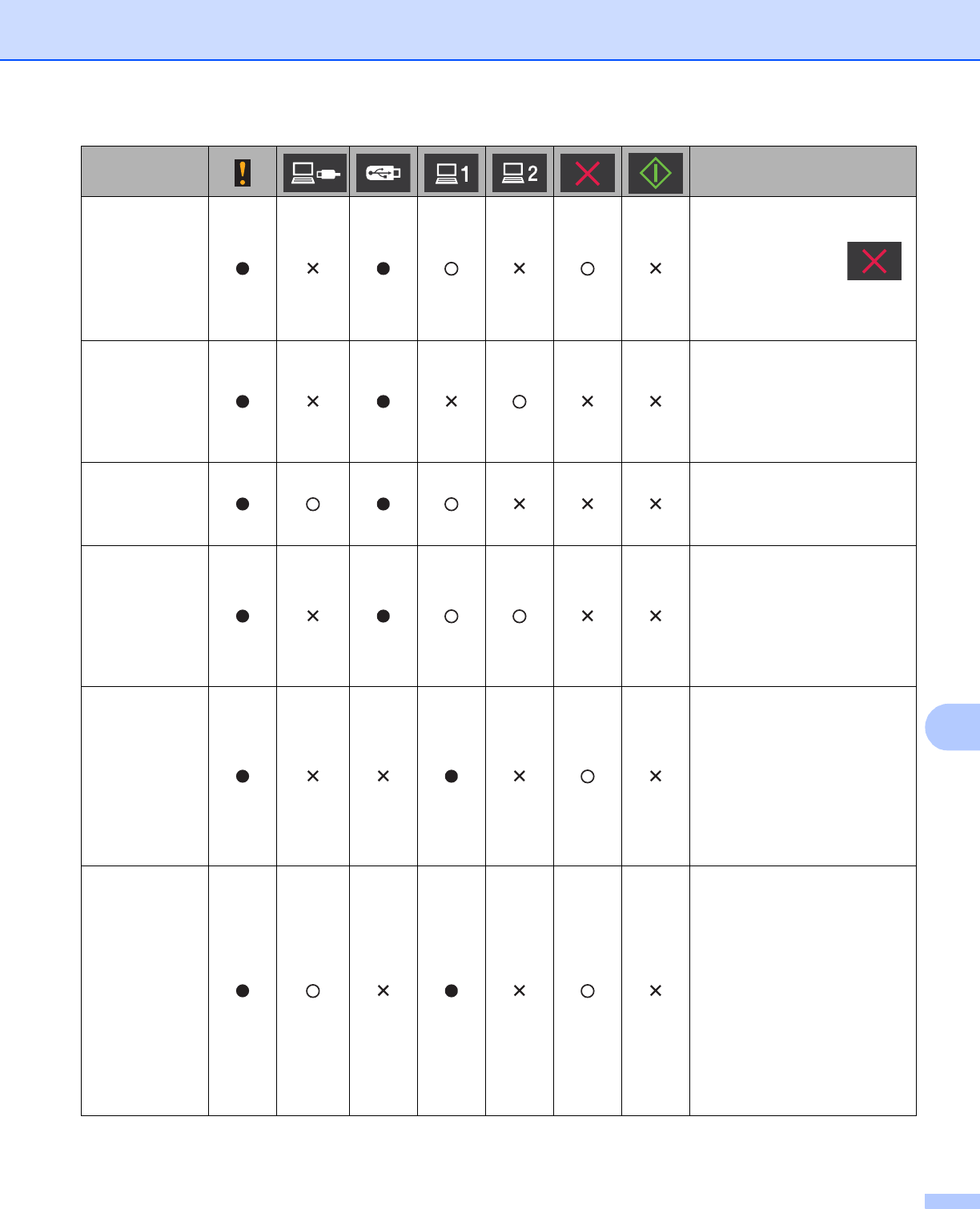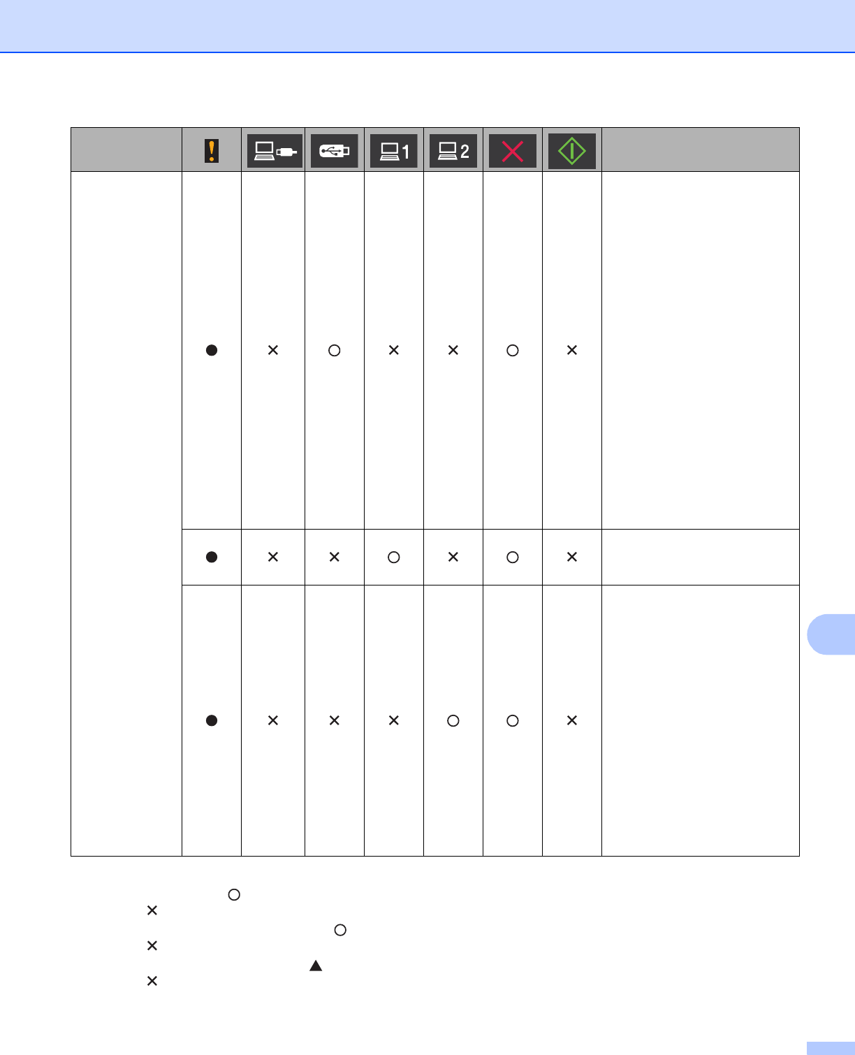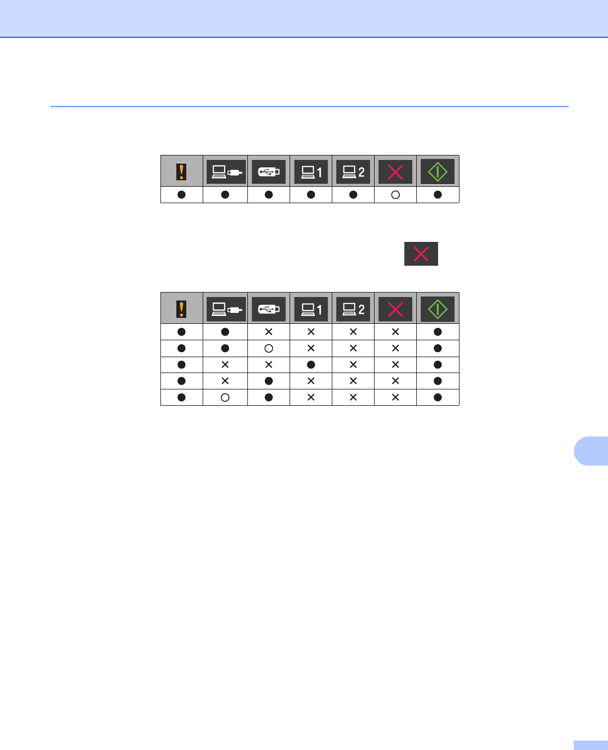 Make a note of the LED indication and then report the indication to your dealer or to Brother Customer