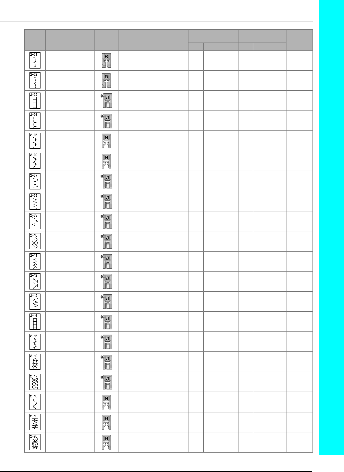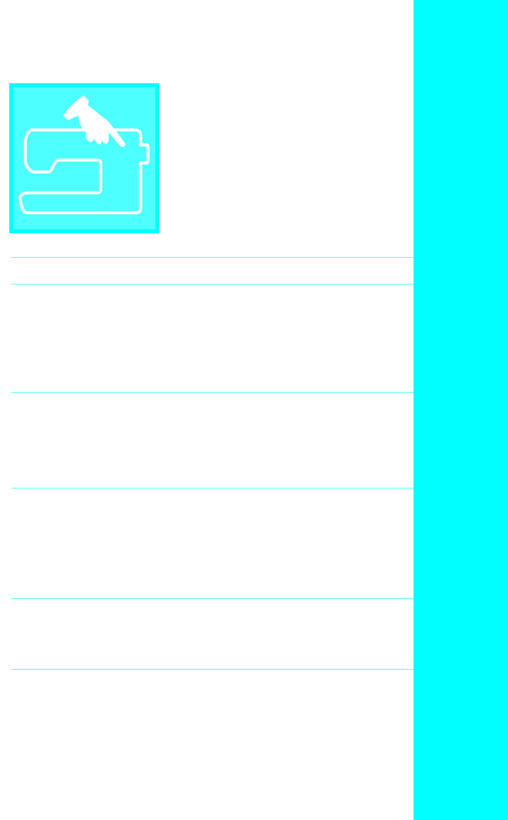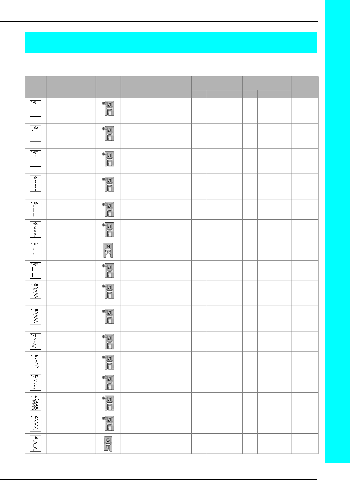 Single/triple stitching key ............................................................ 203