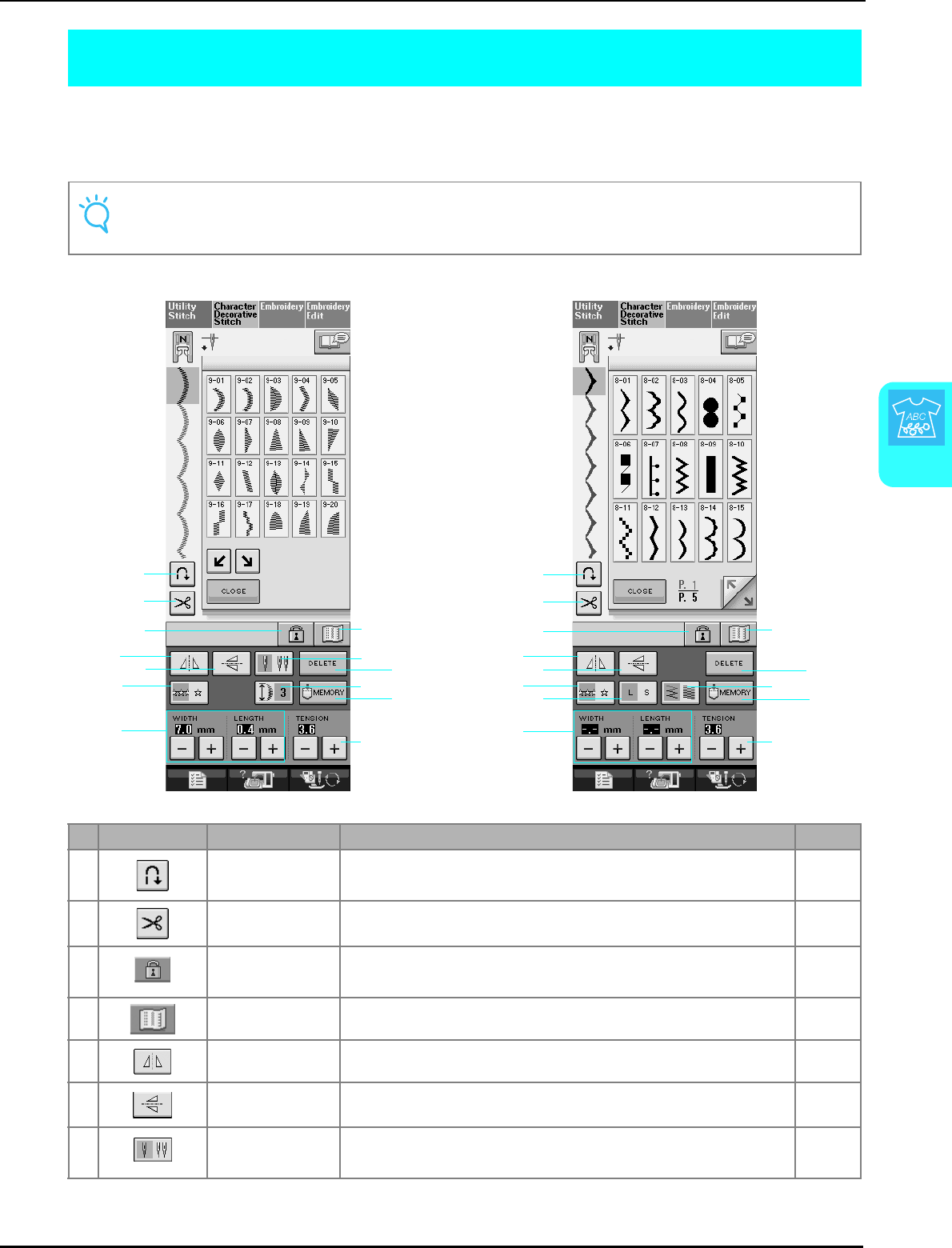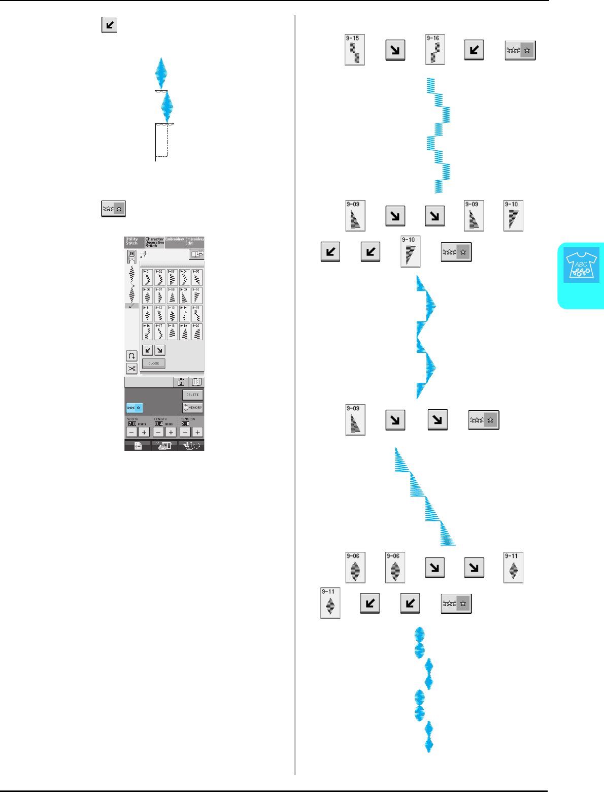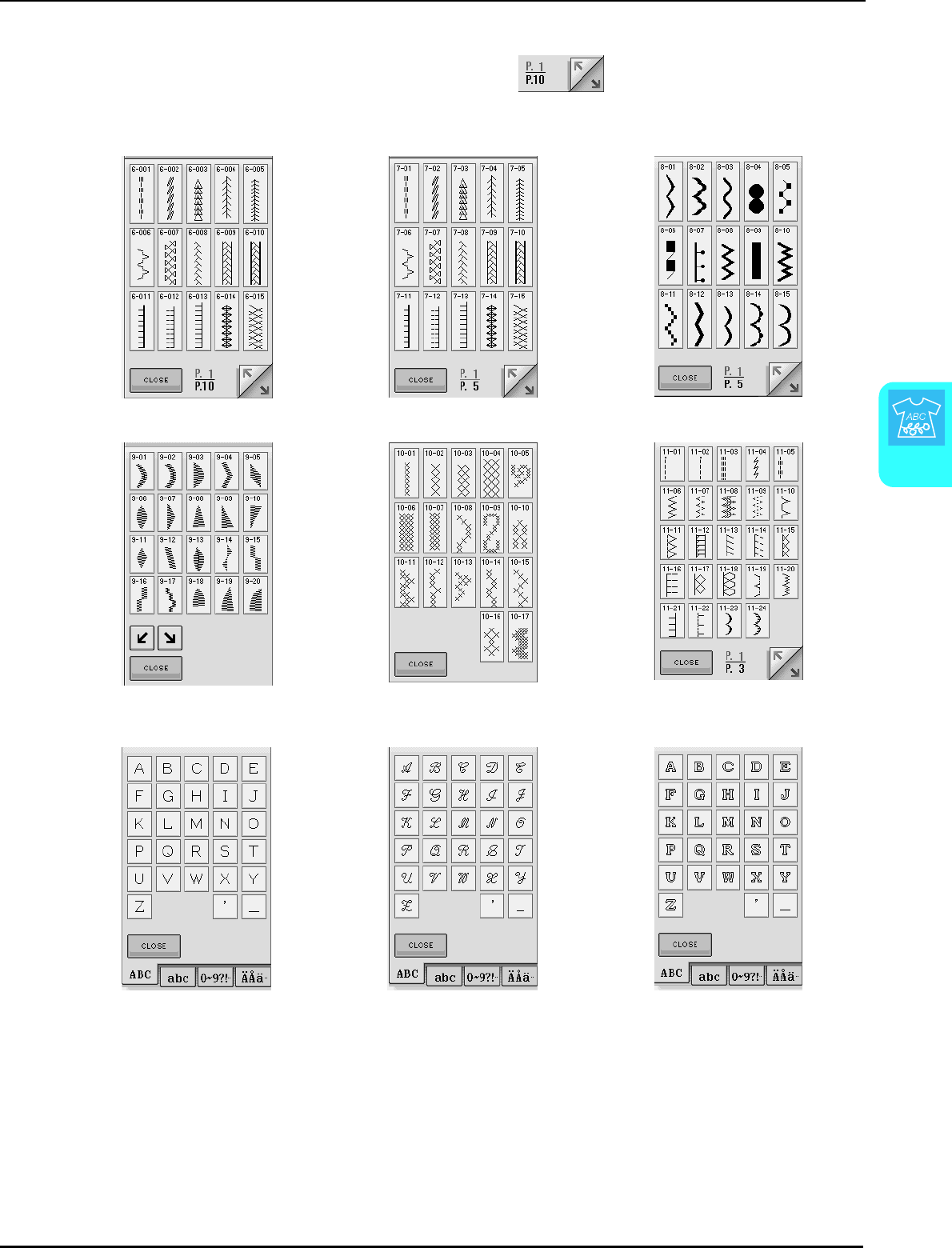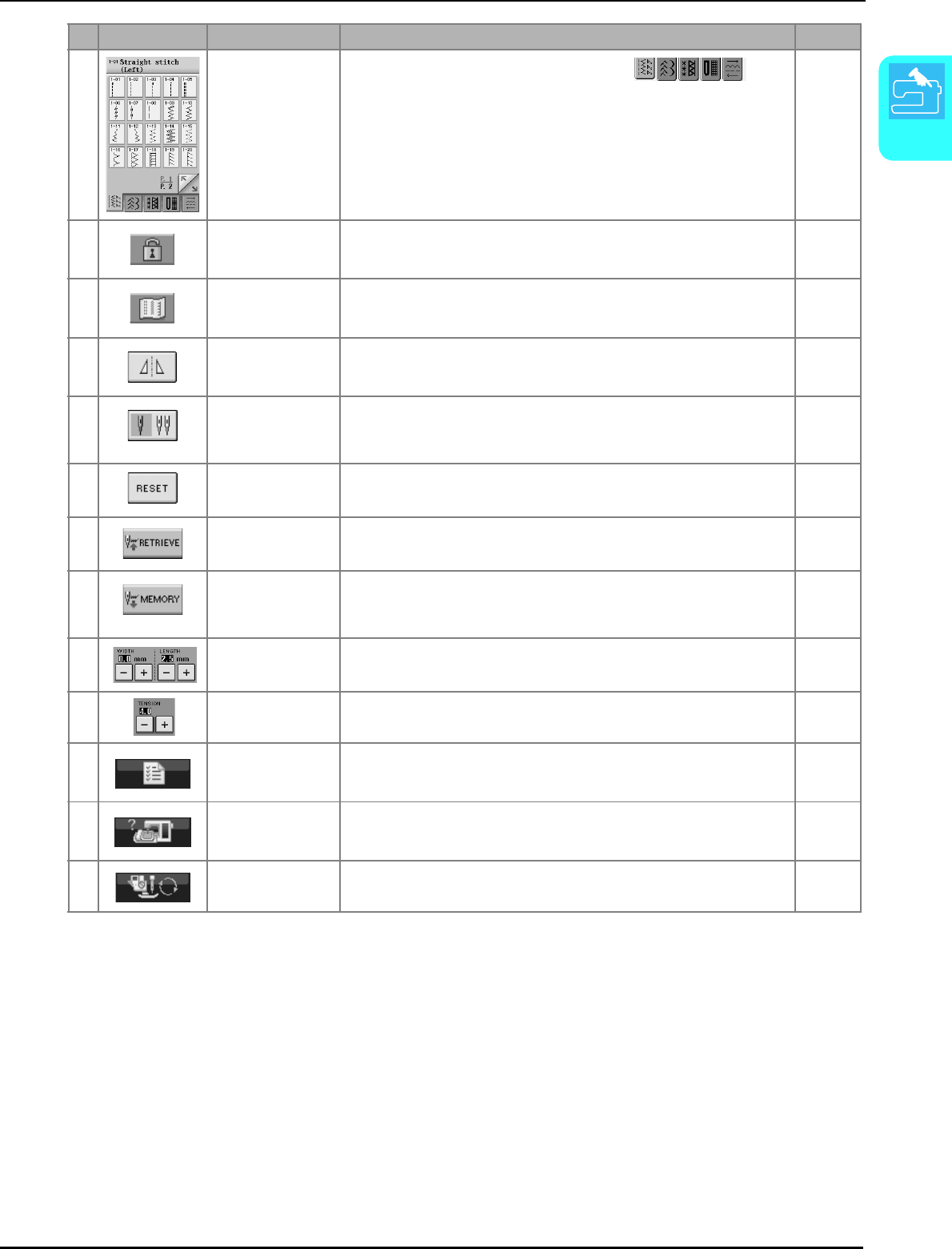 Single/Repeat sewing key ........................................................... 107