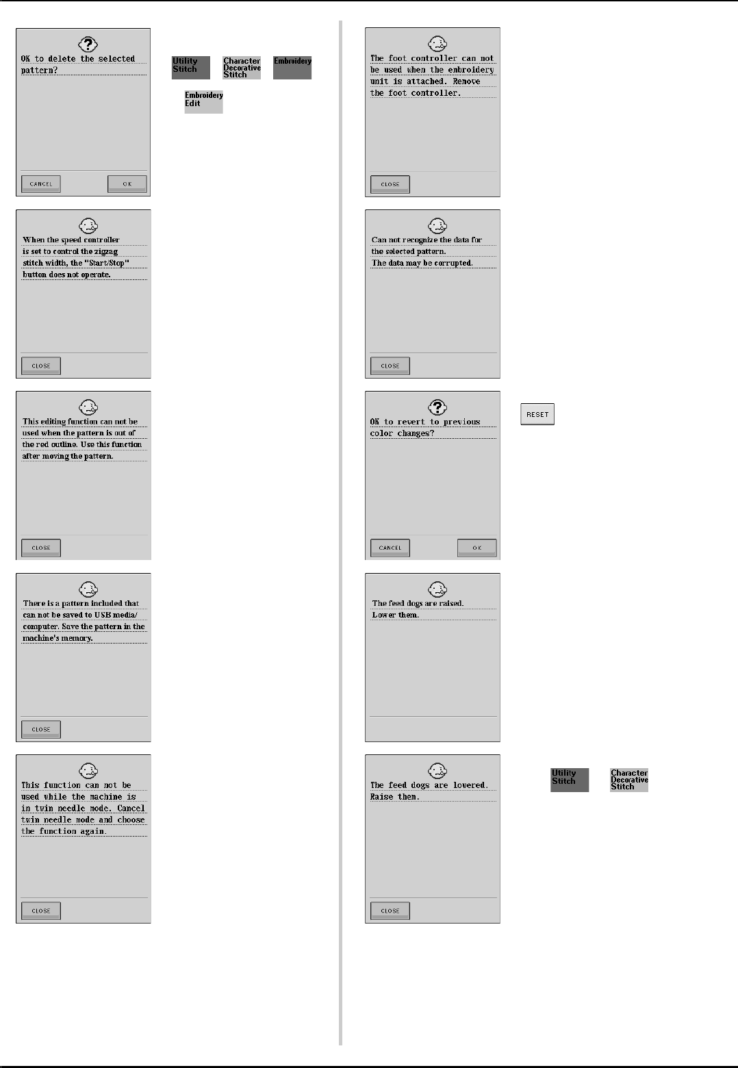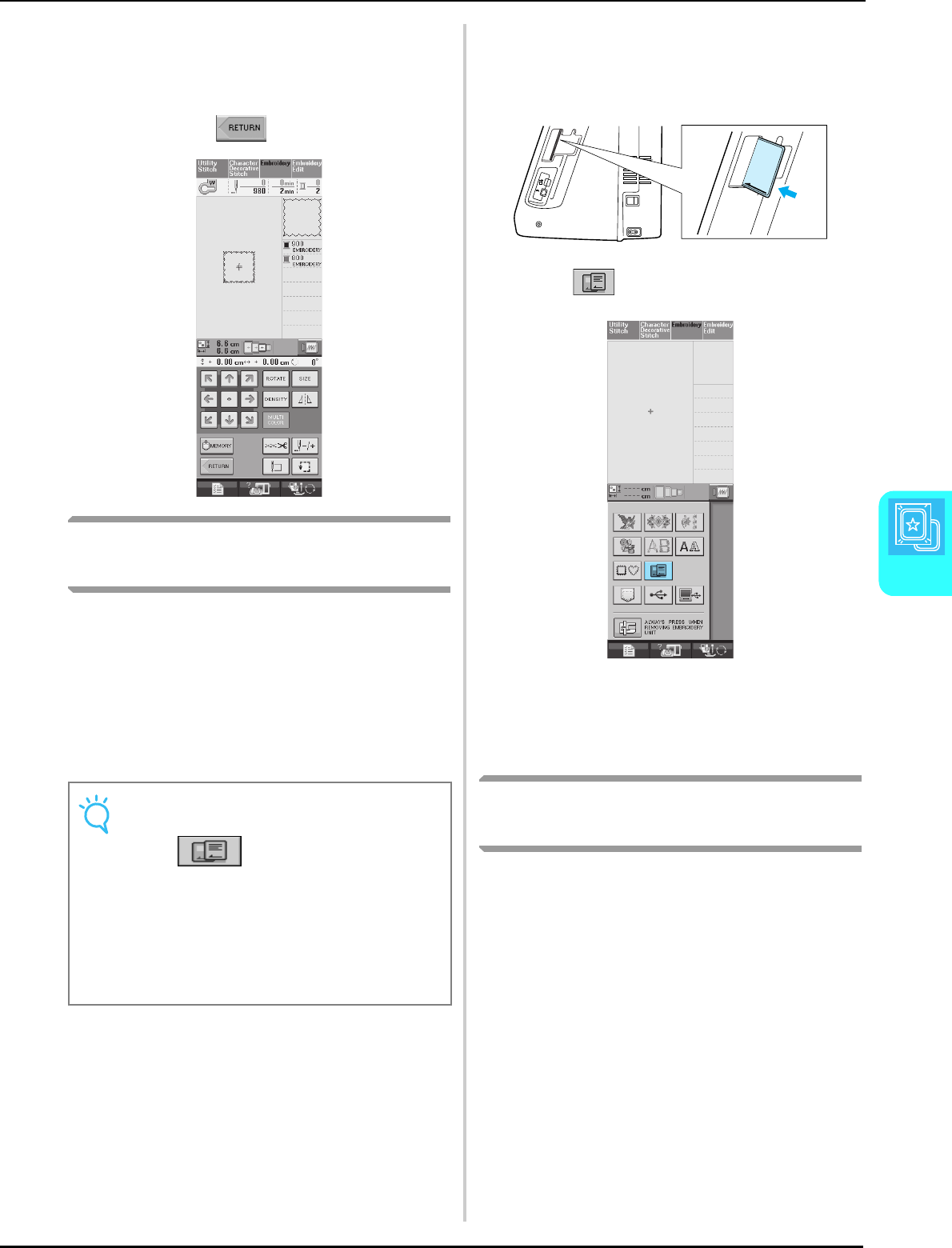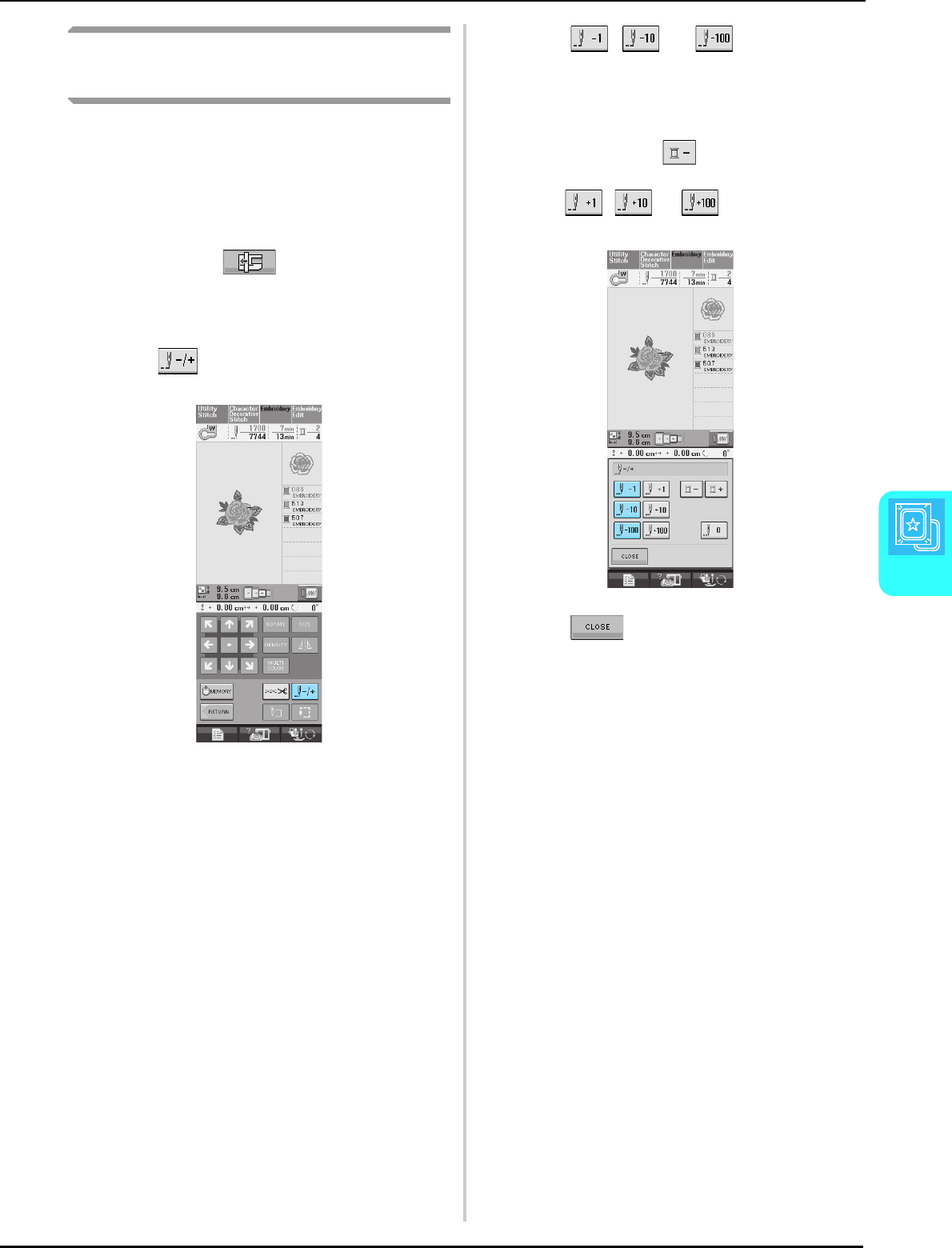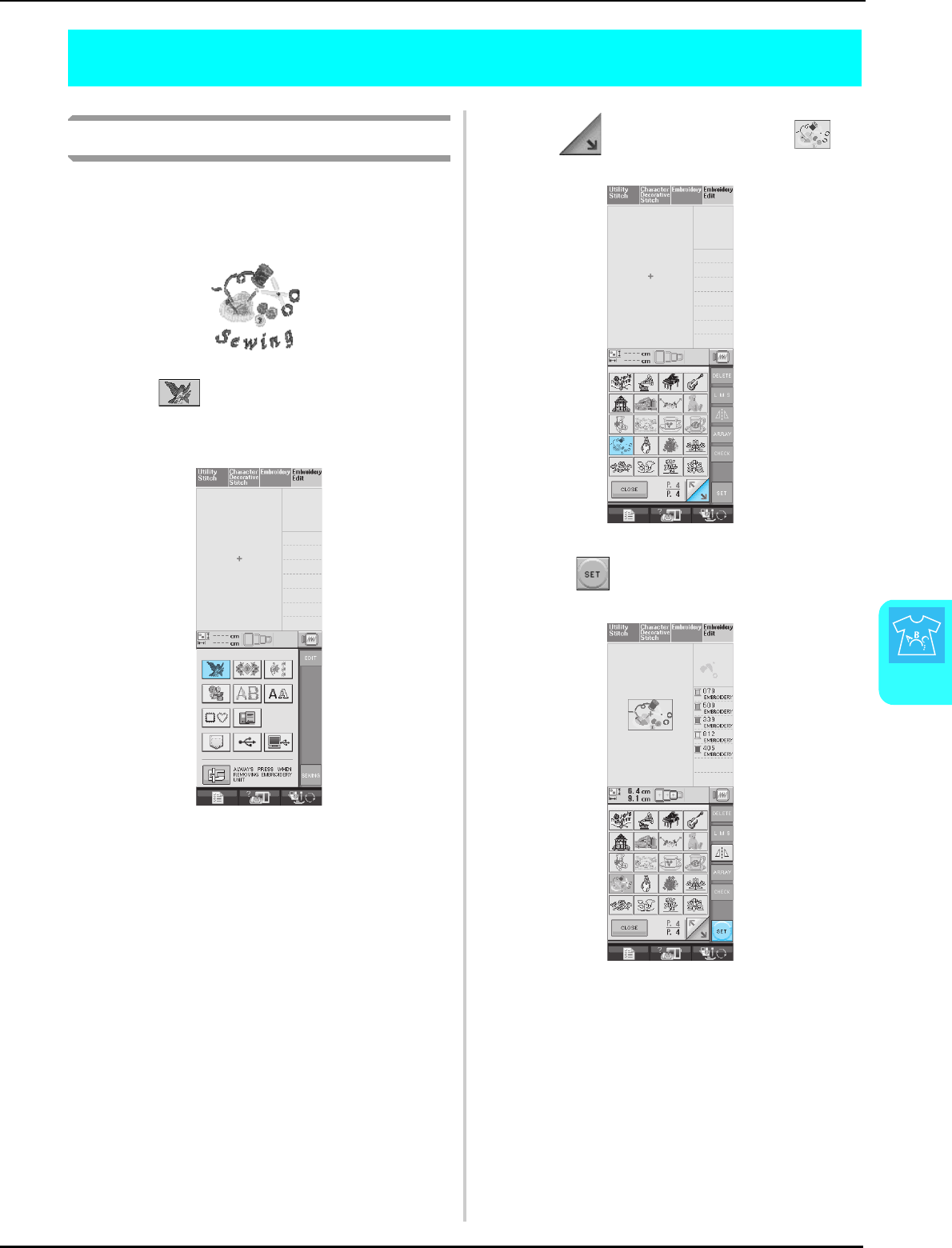 Single/Repeat sewing key ........................................................... 107