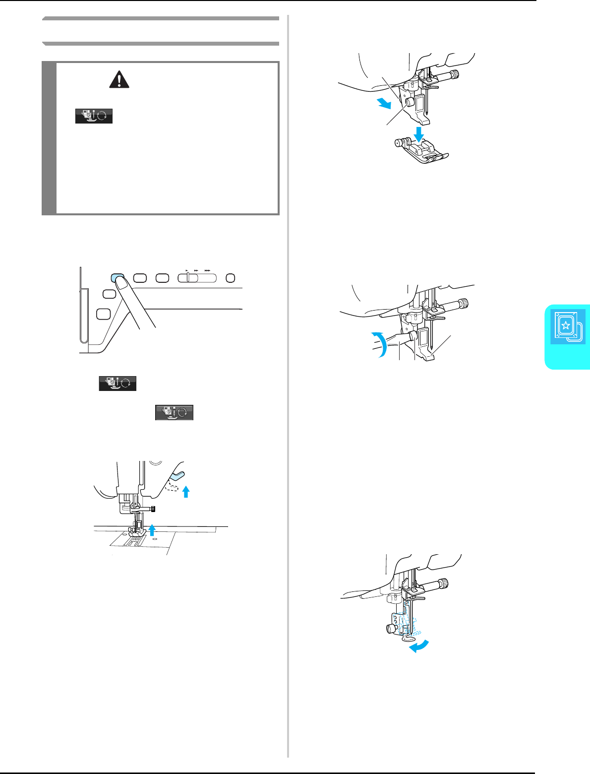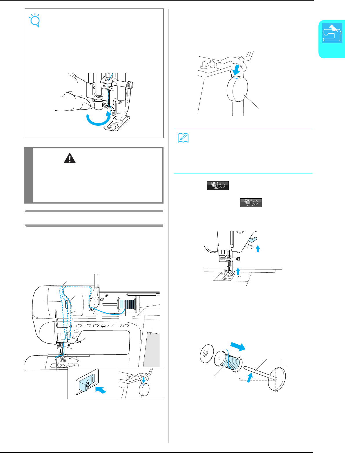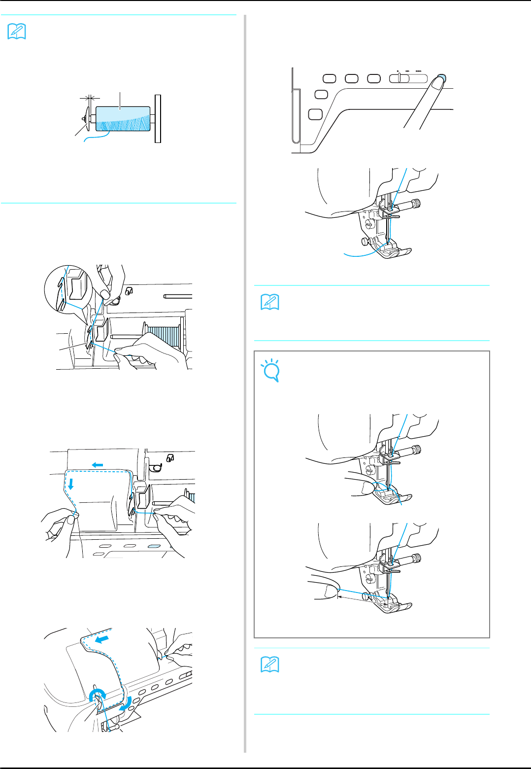 threading needle, changing needle, threading bobbin, or changing presser foot, and the like.