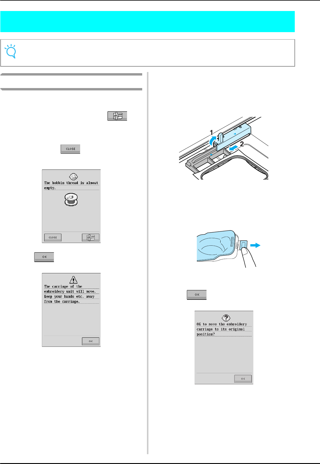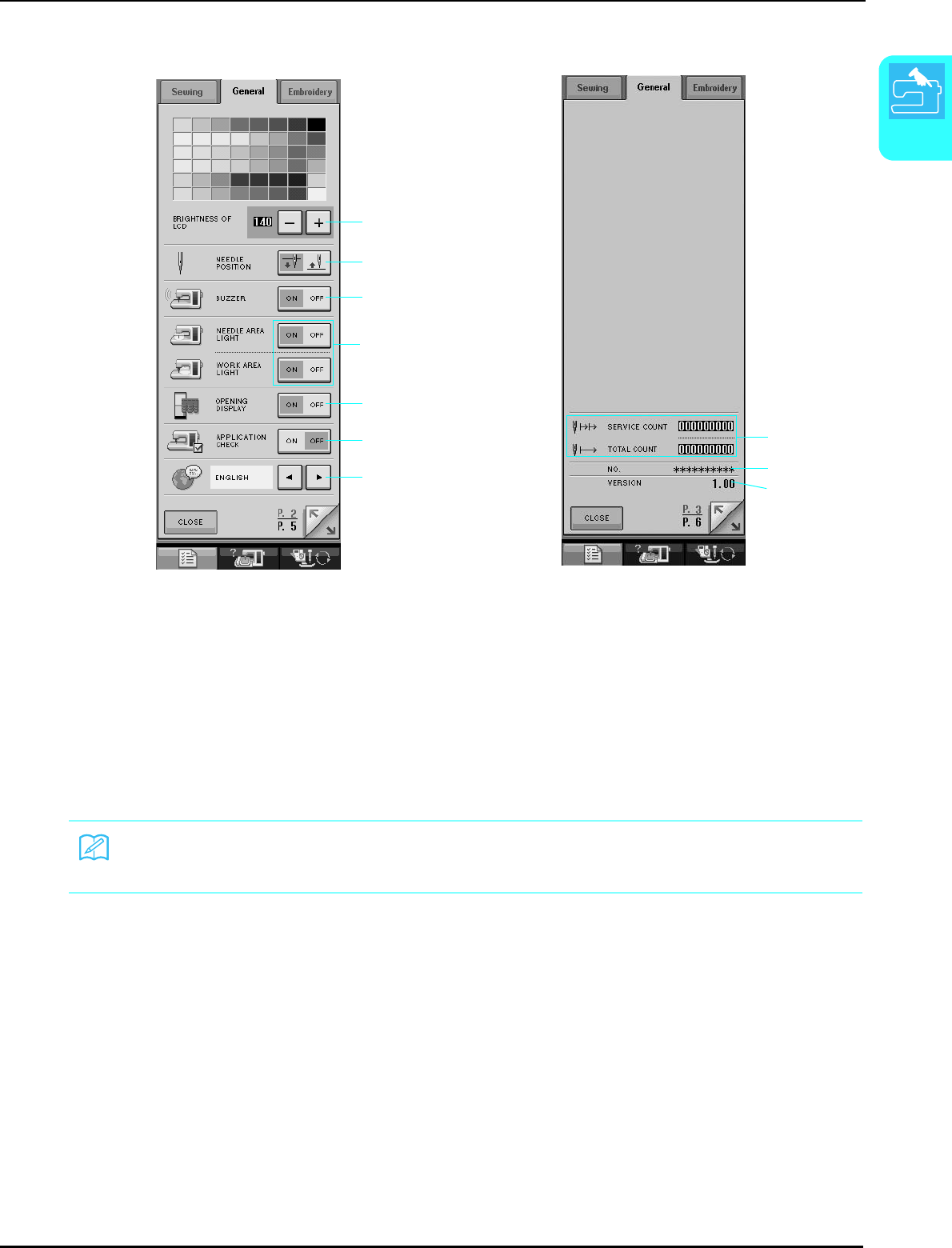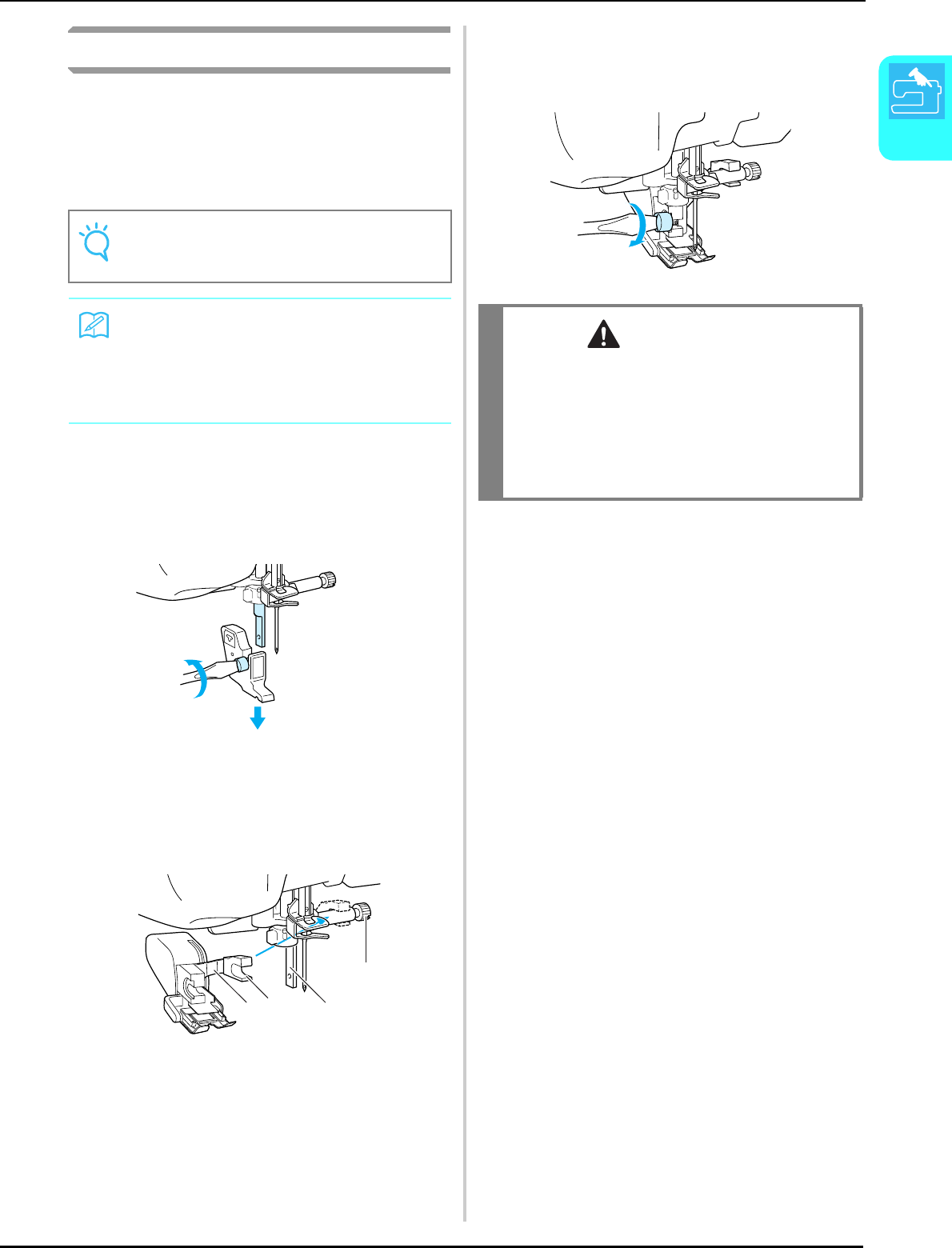 threading needle, changing needle, threading bobbin, or changing presser foot, and the like.