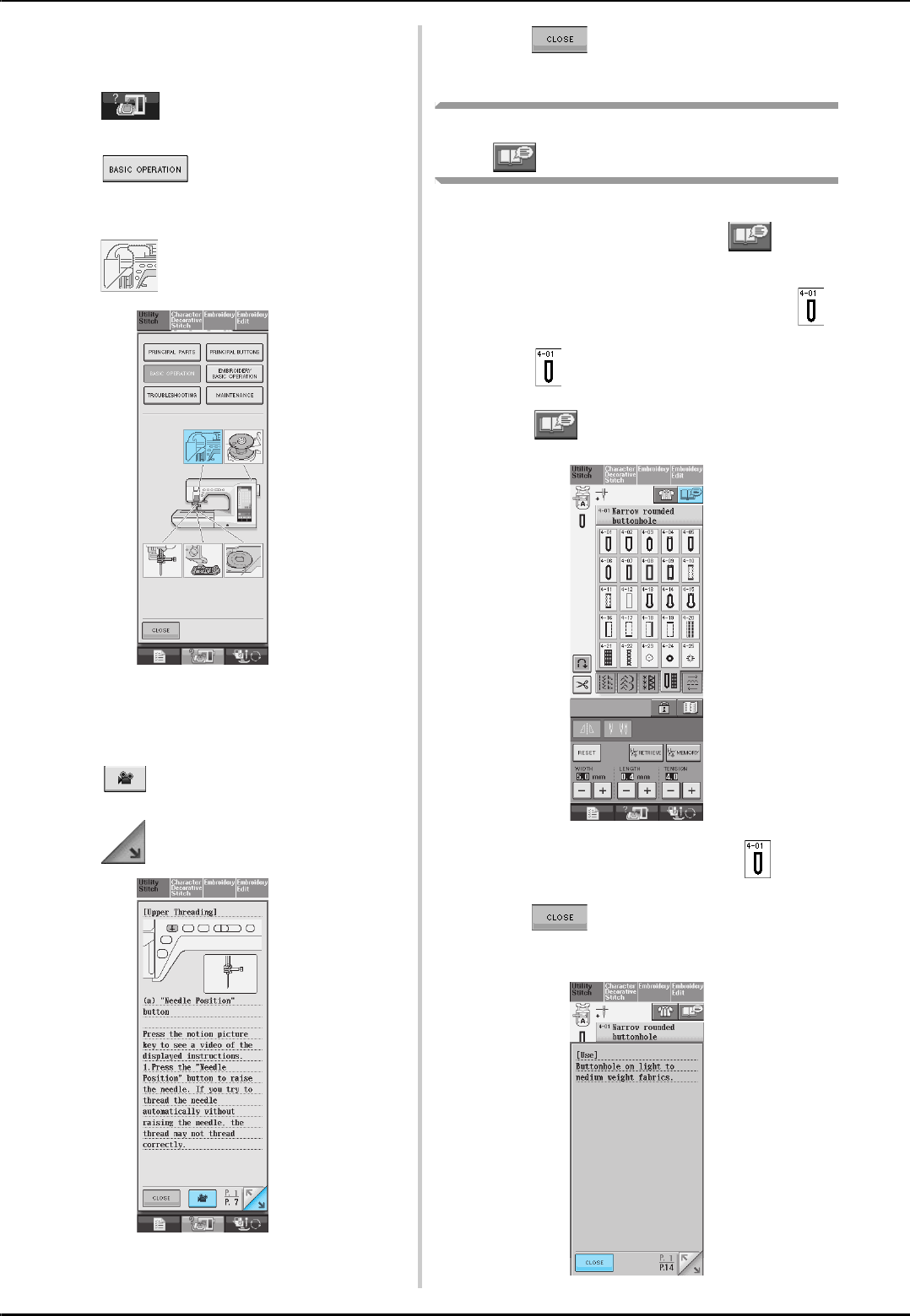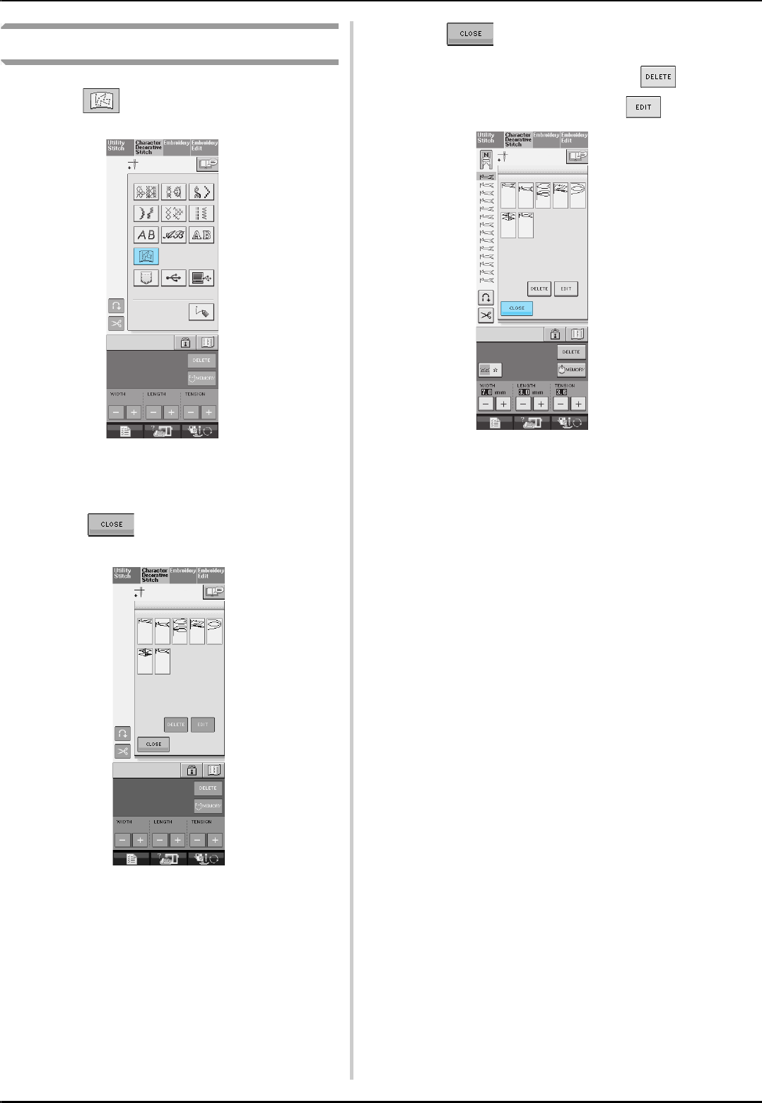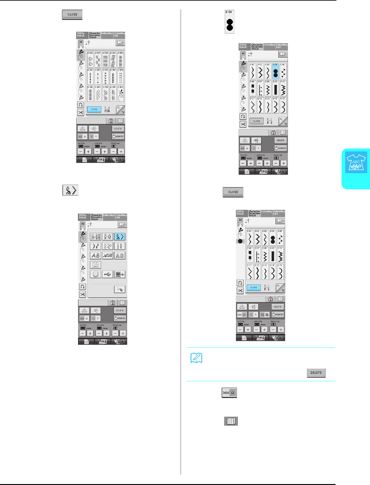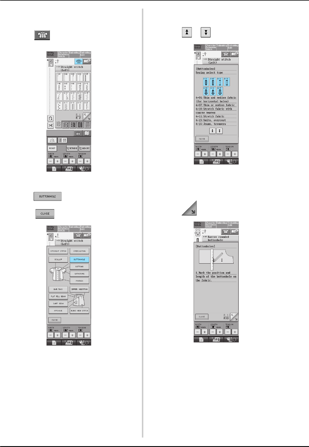 stitch selection screens ..............................................................48