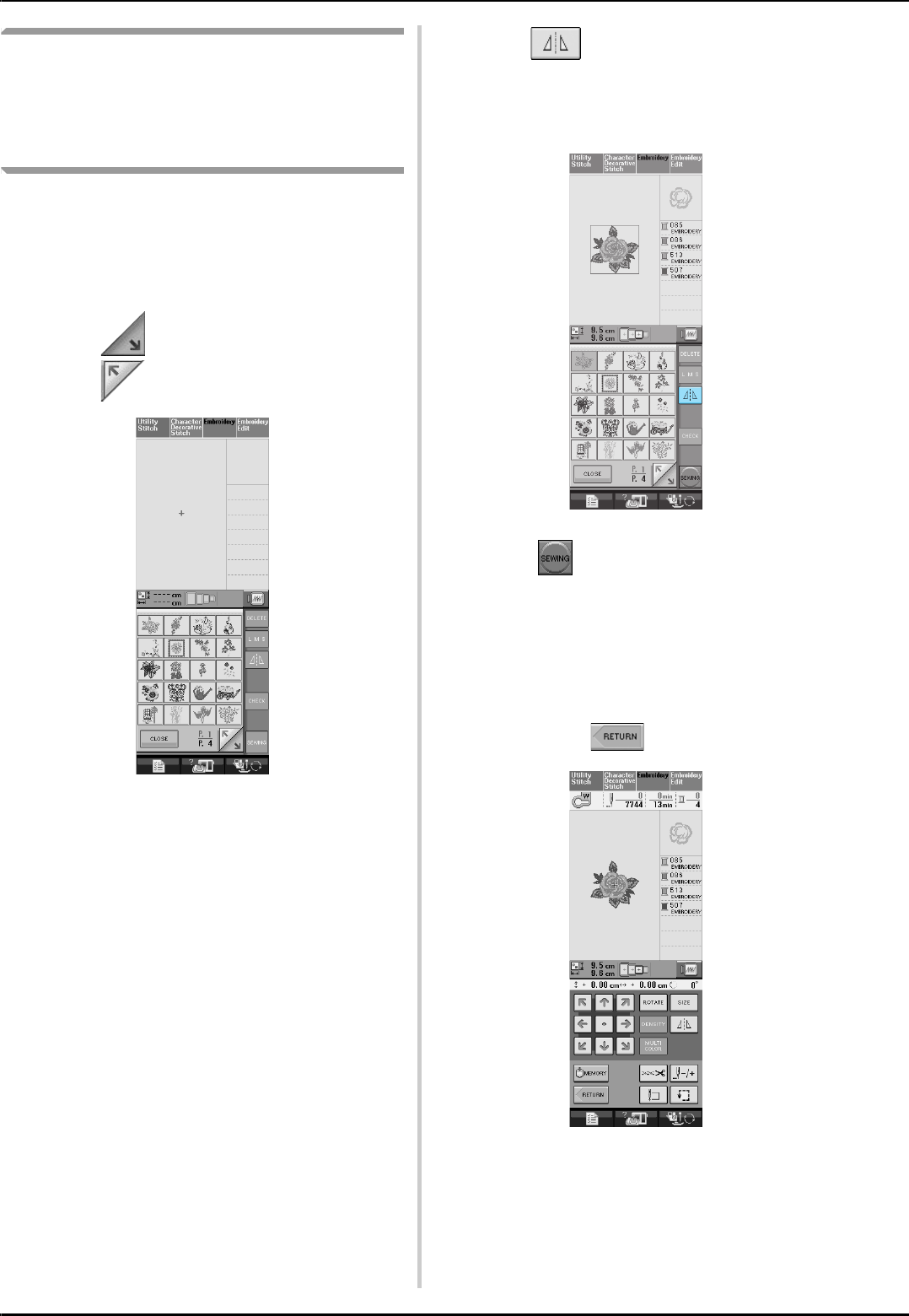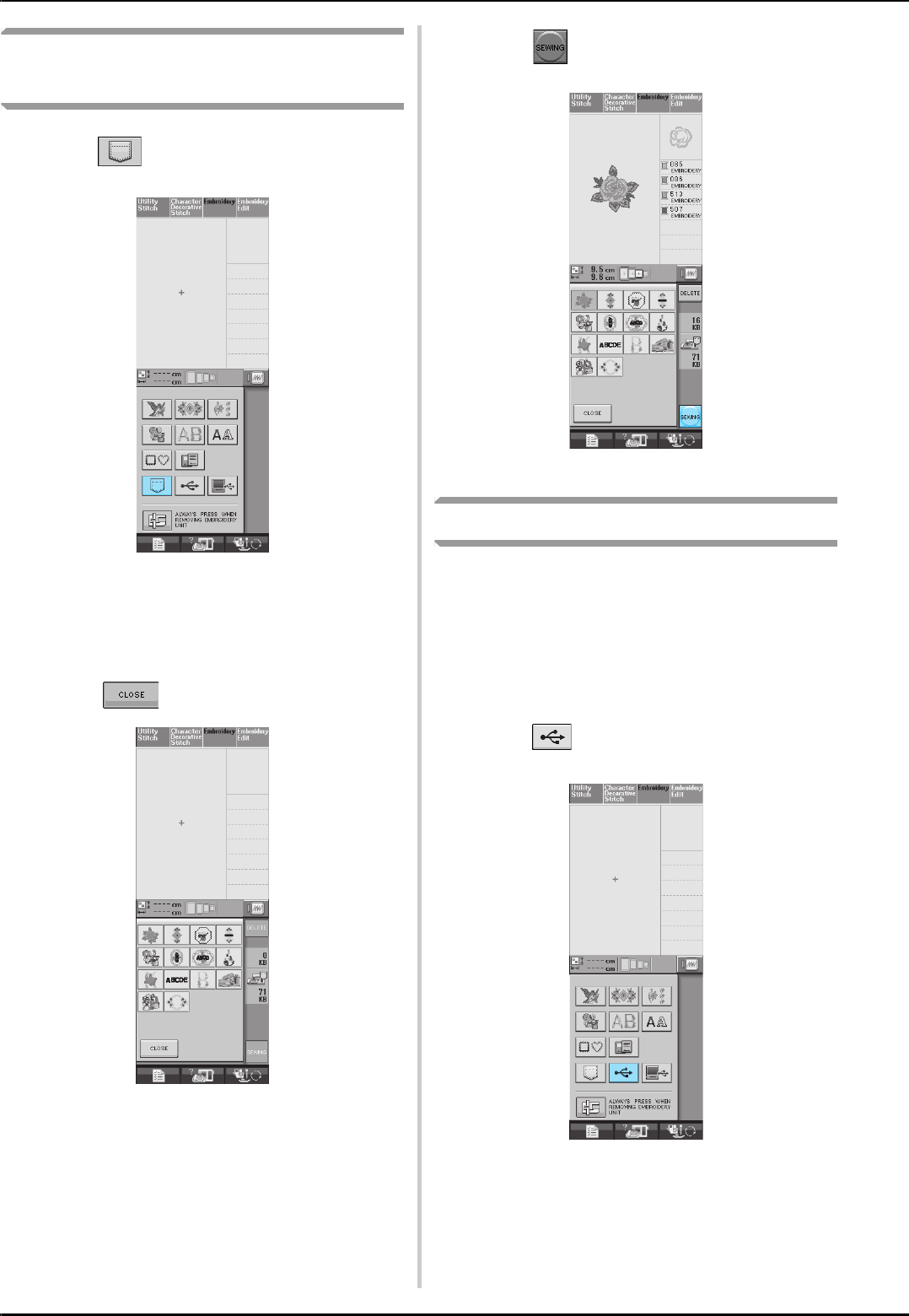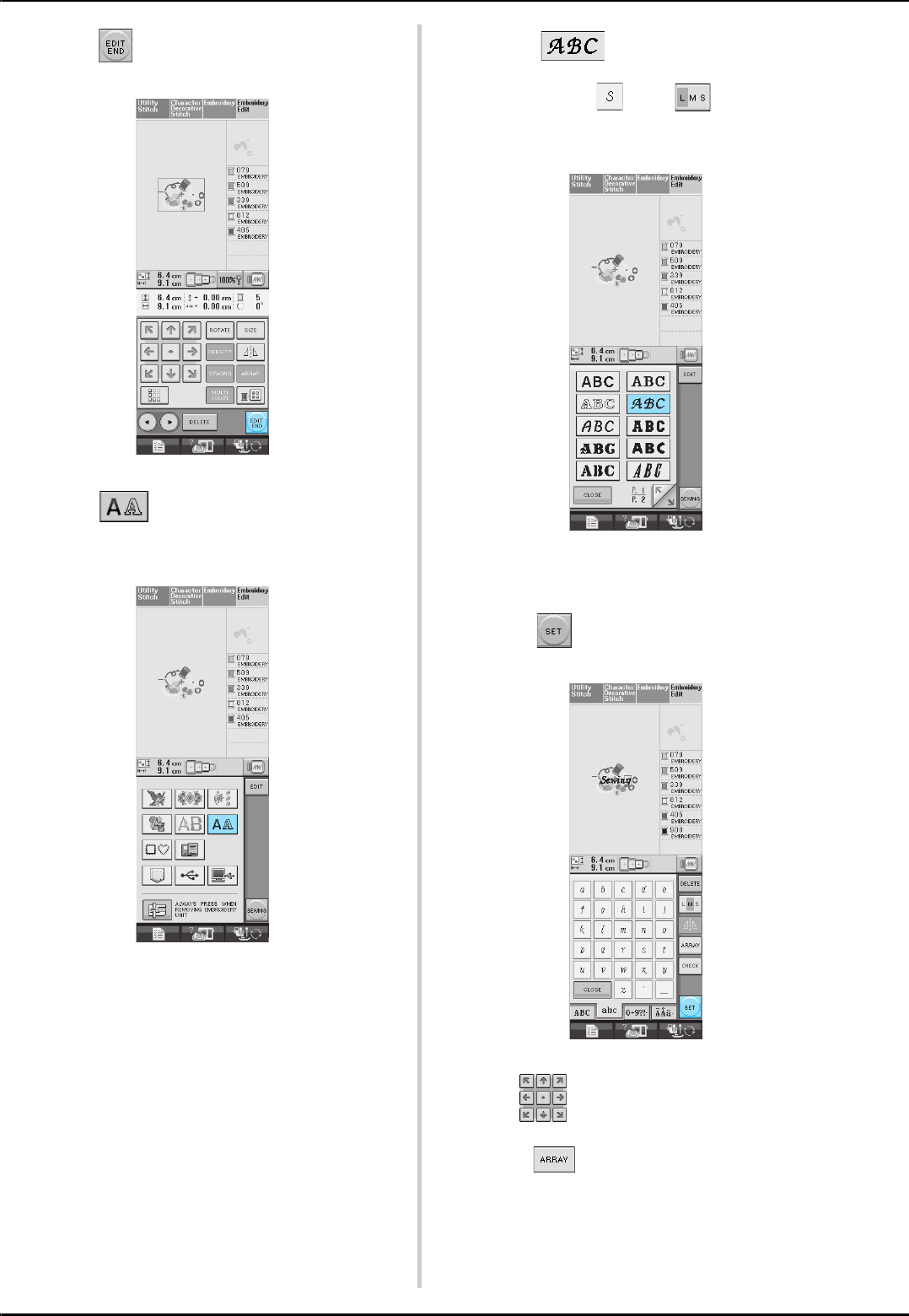 stitch selection screens ..............................................................48