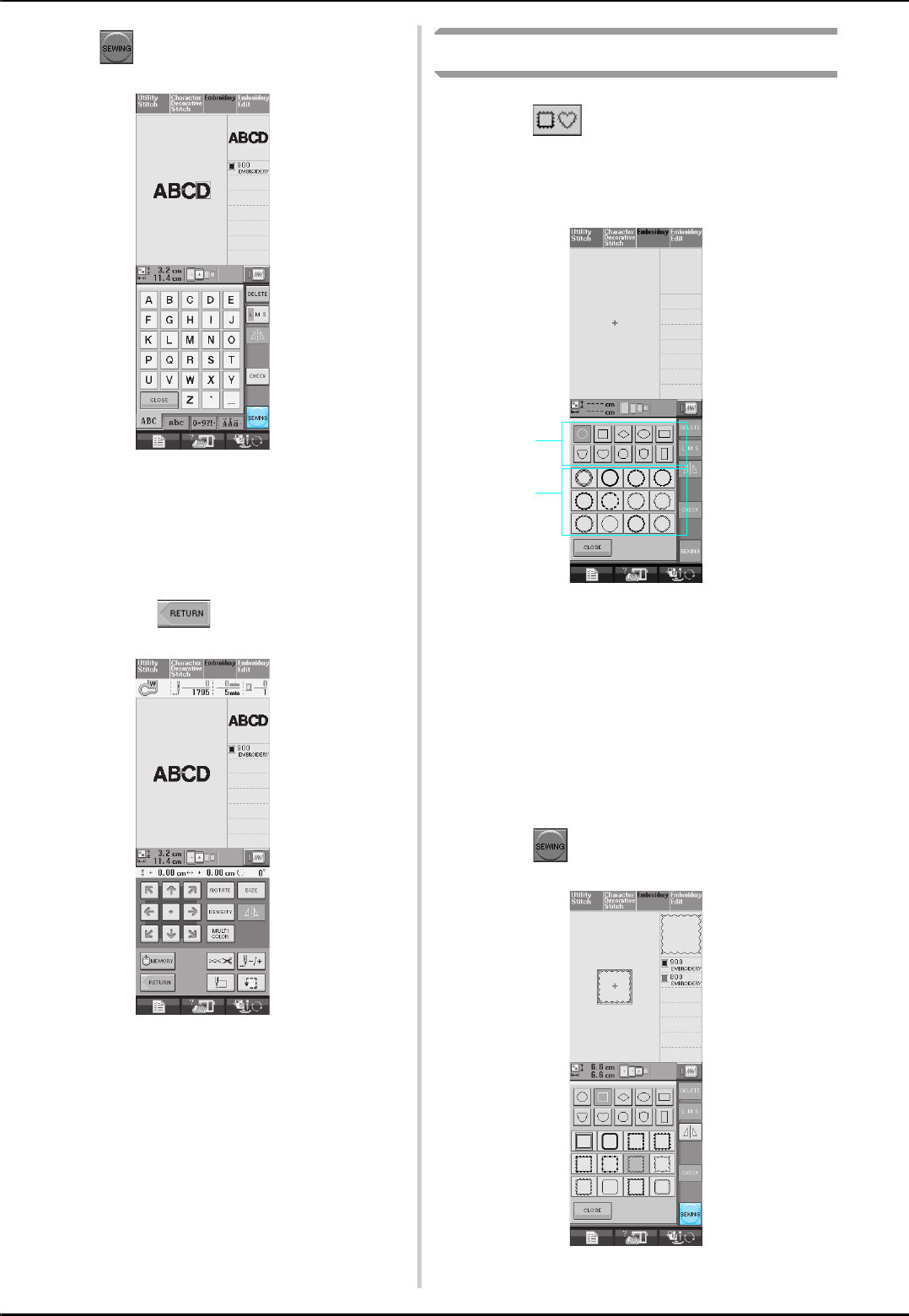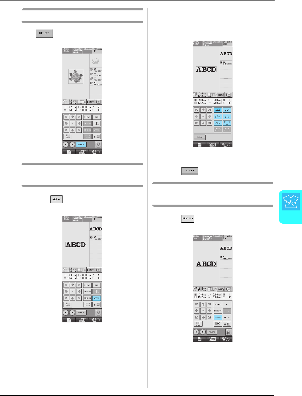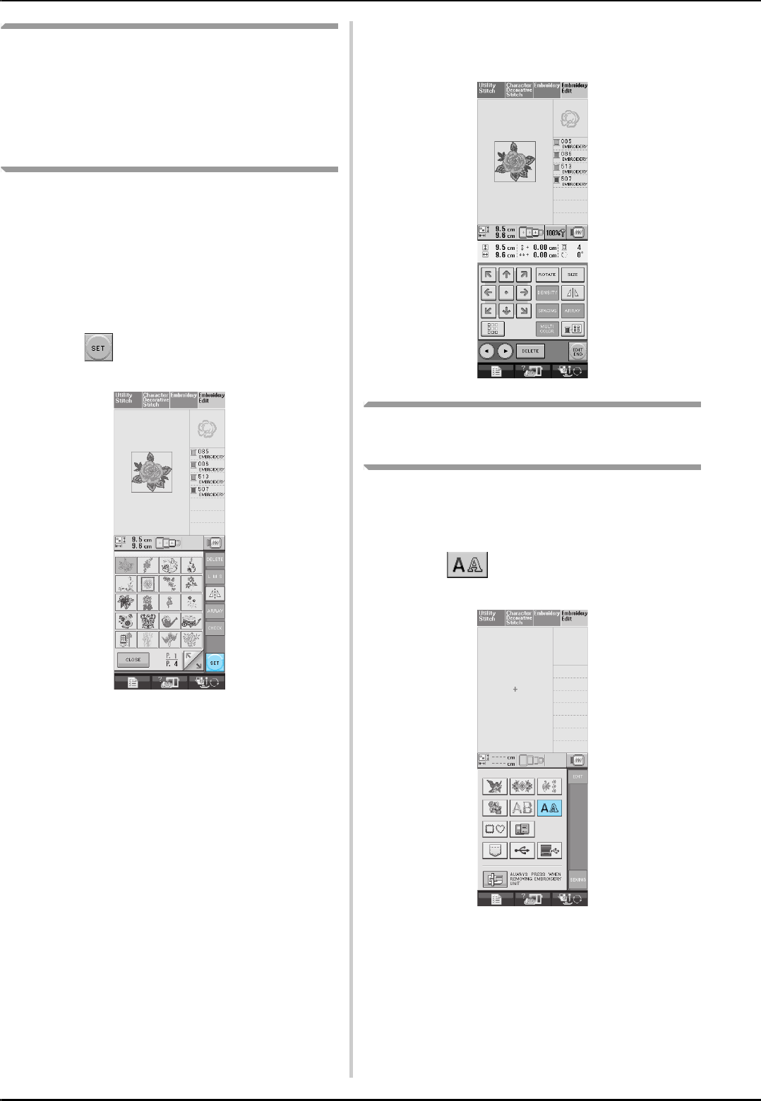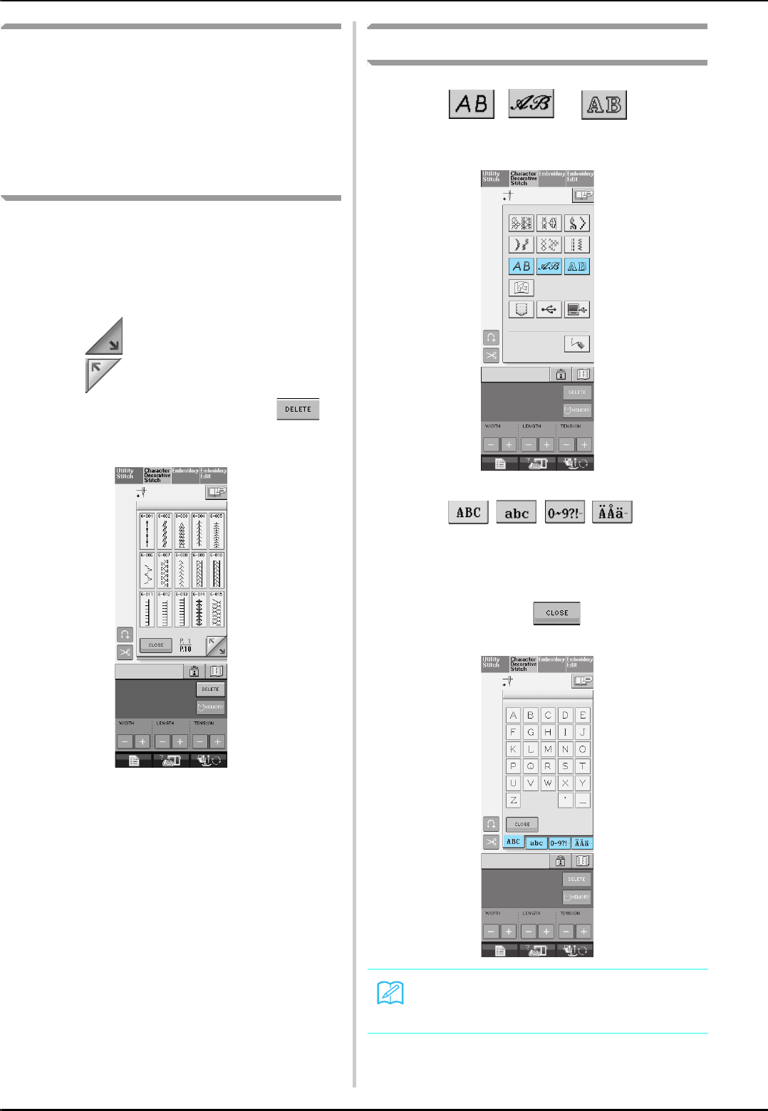 stitch selection screens ..............................................................48