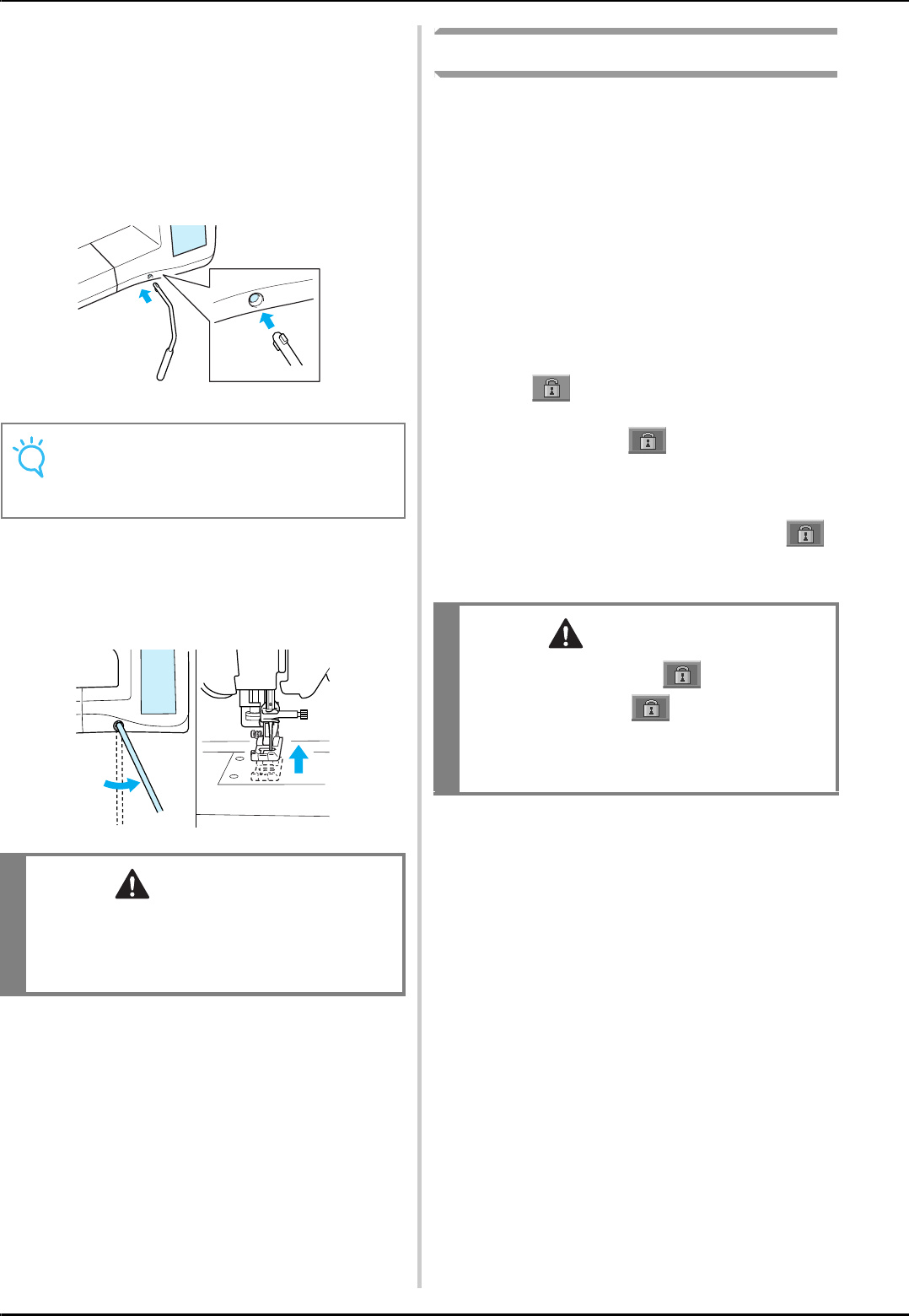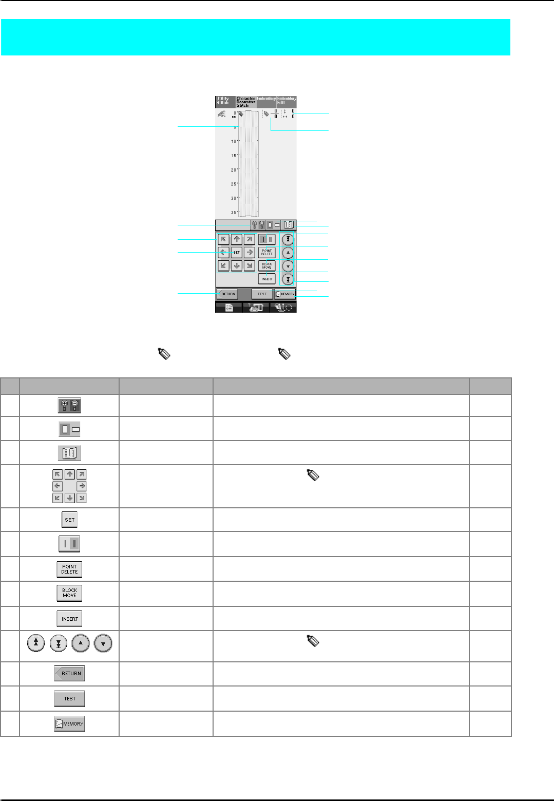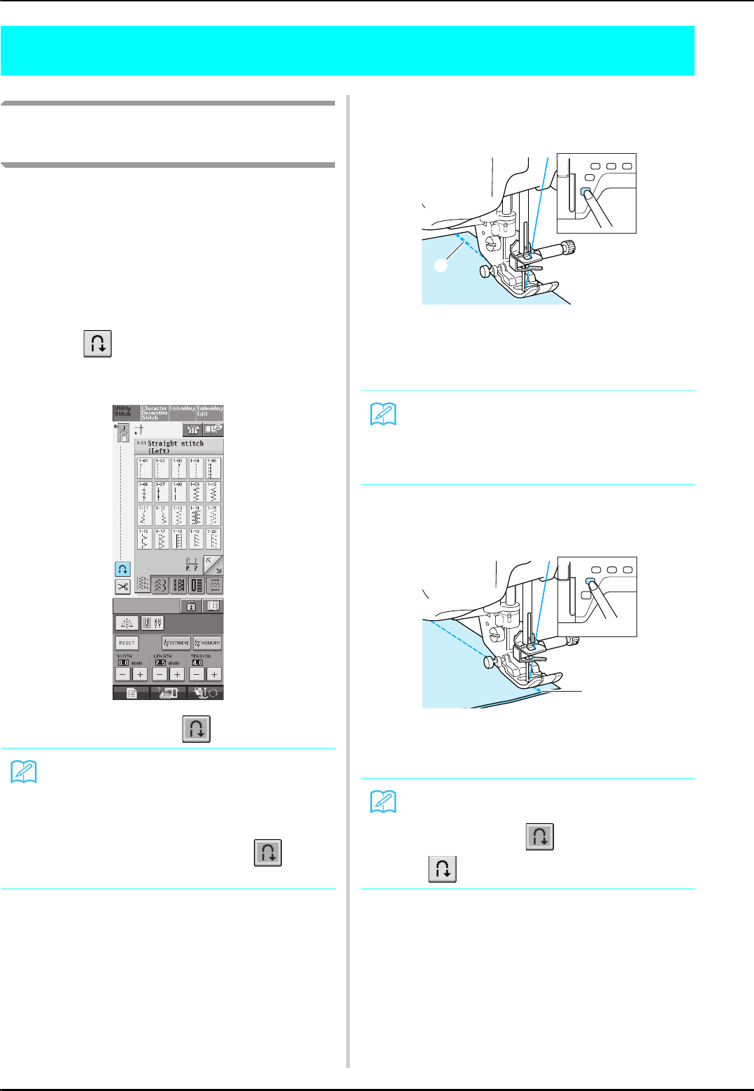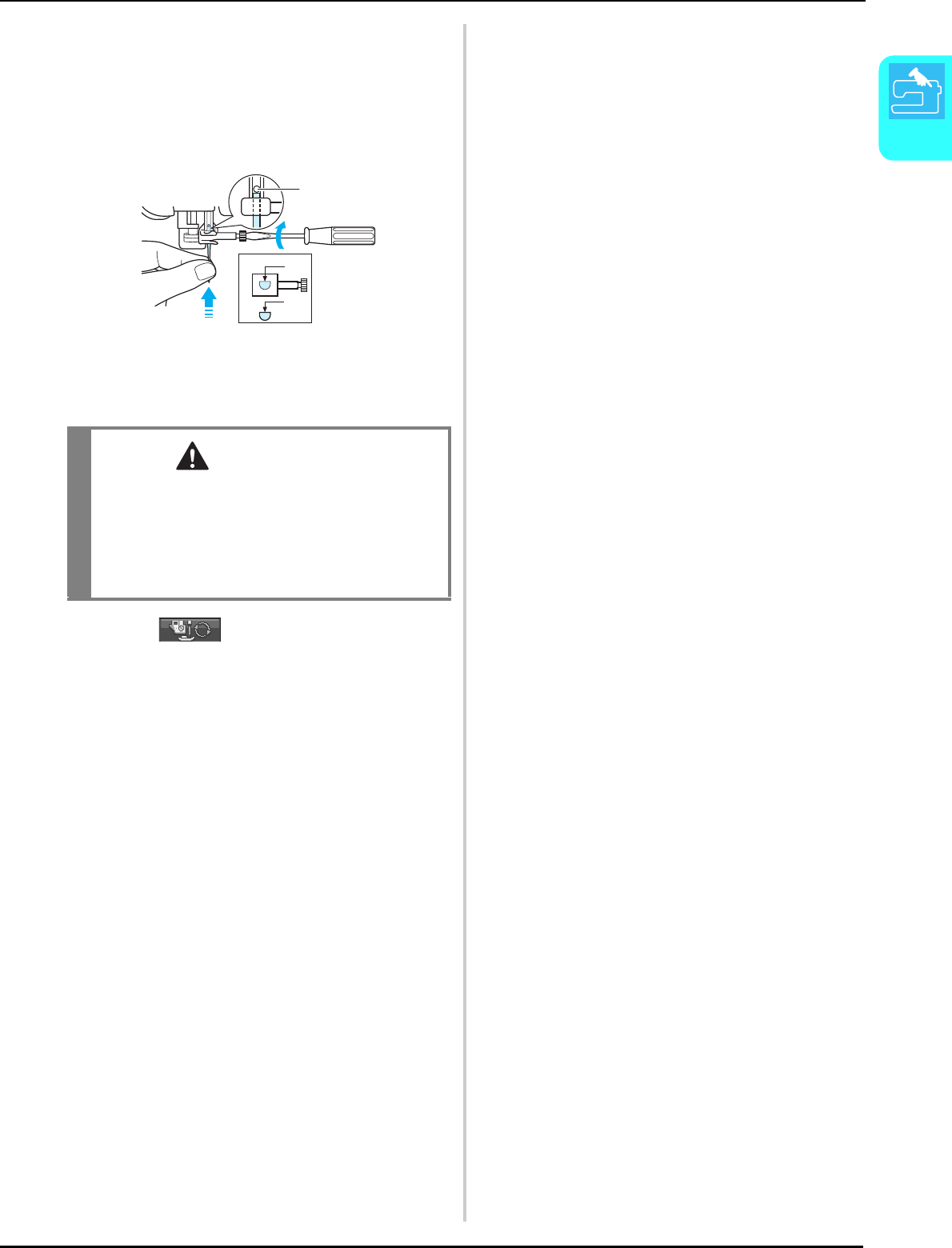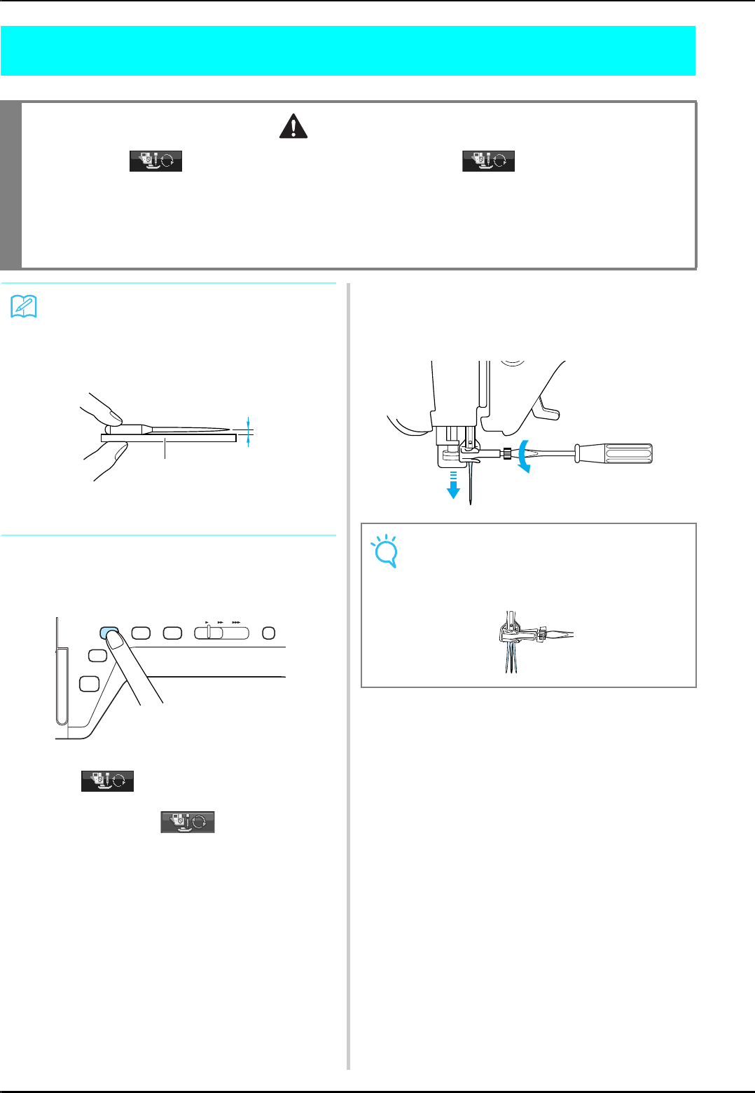 14. Switch the machine to the symbol “ ” position when making any adjustments in the needle area, such as