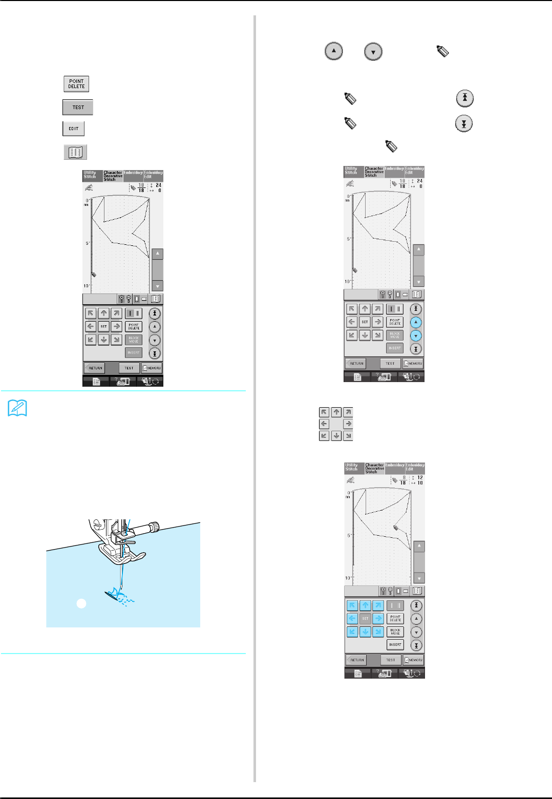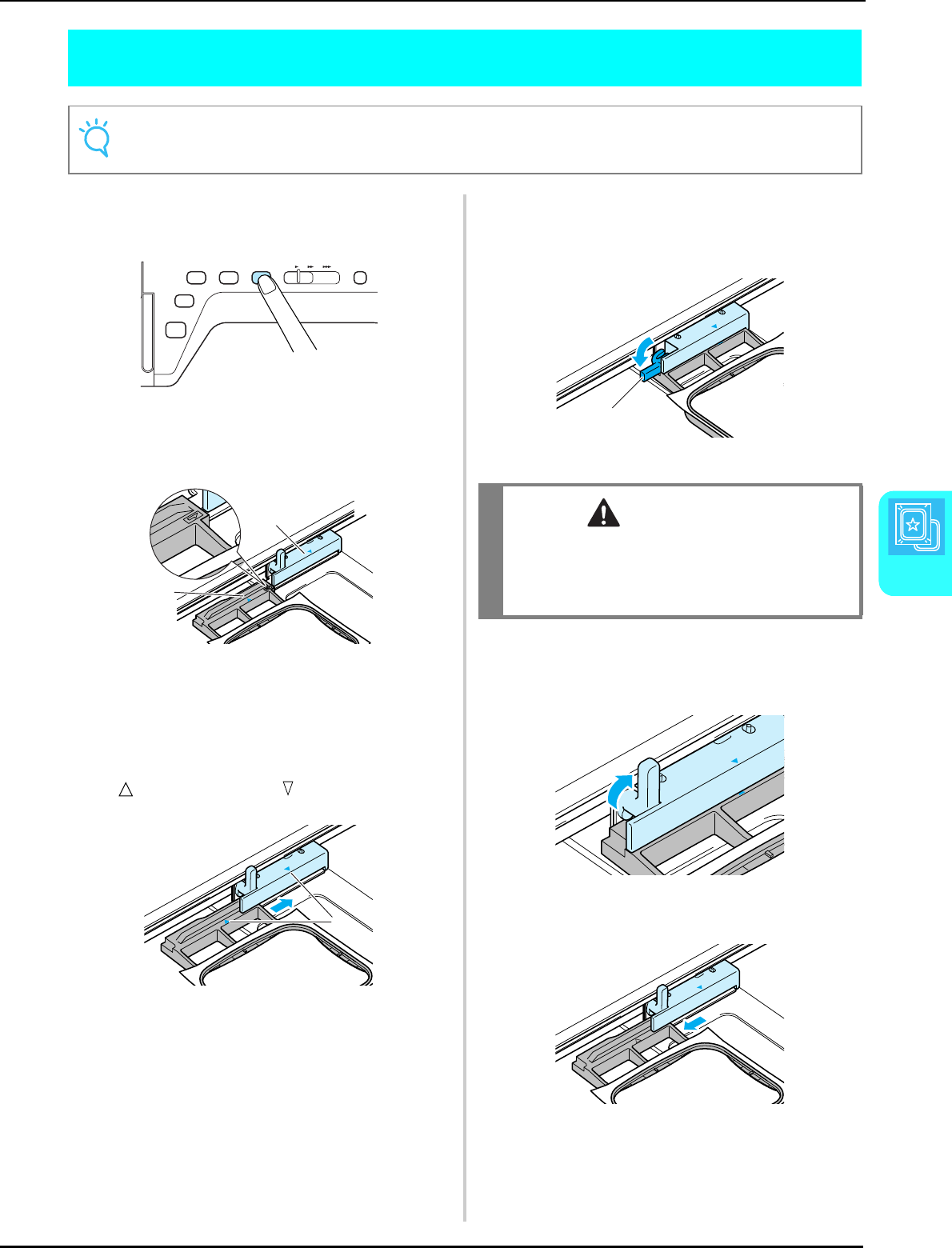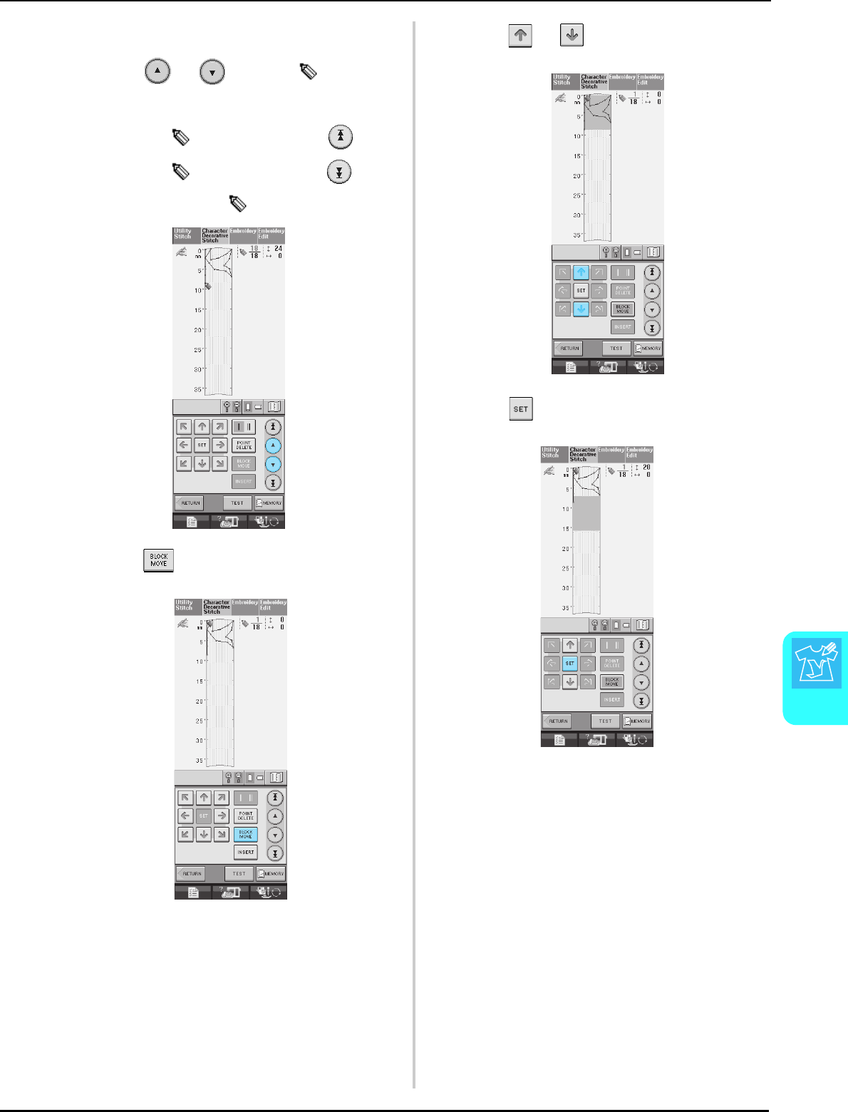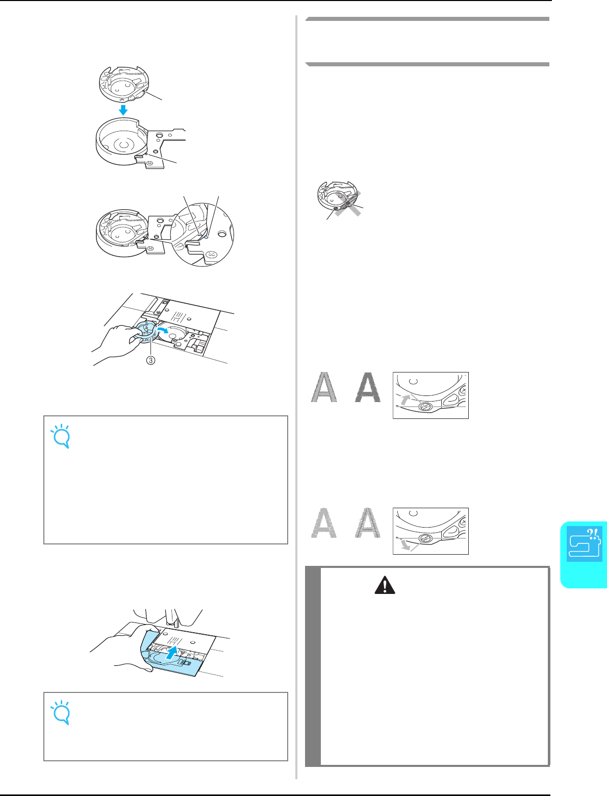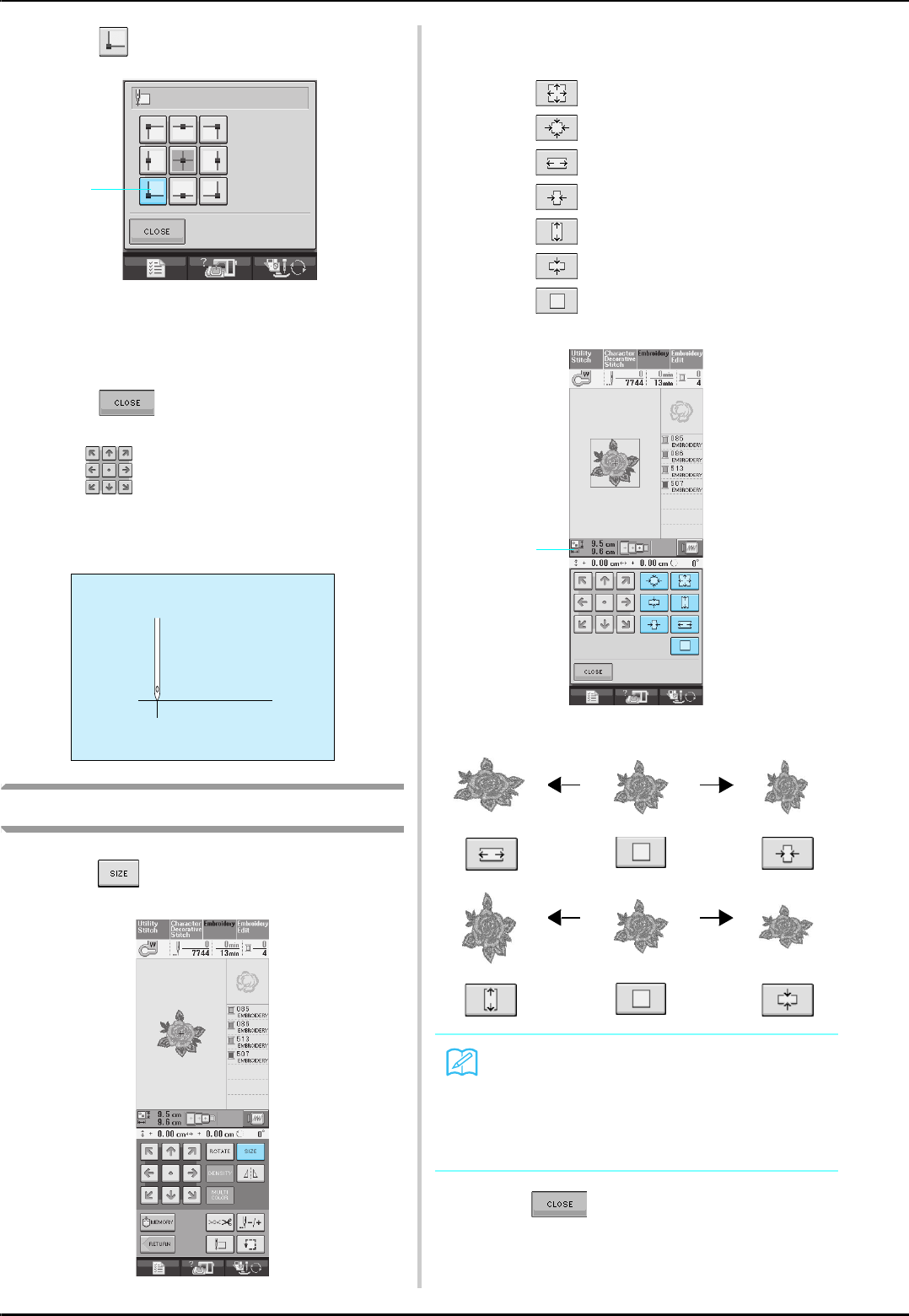 14. Switch the machine to the symbol “ ” position when making any adjustments in the needle area, such as