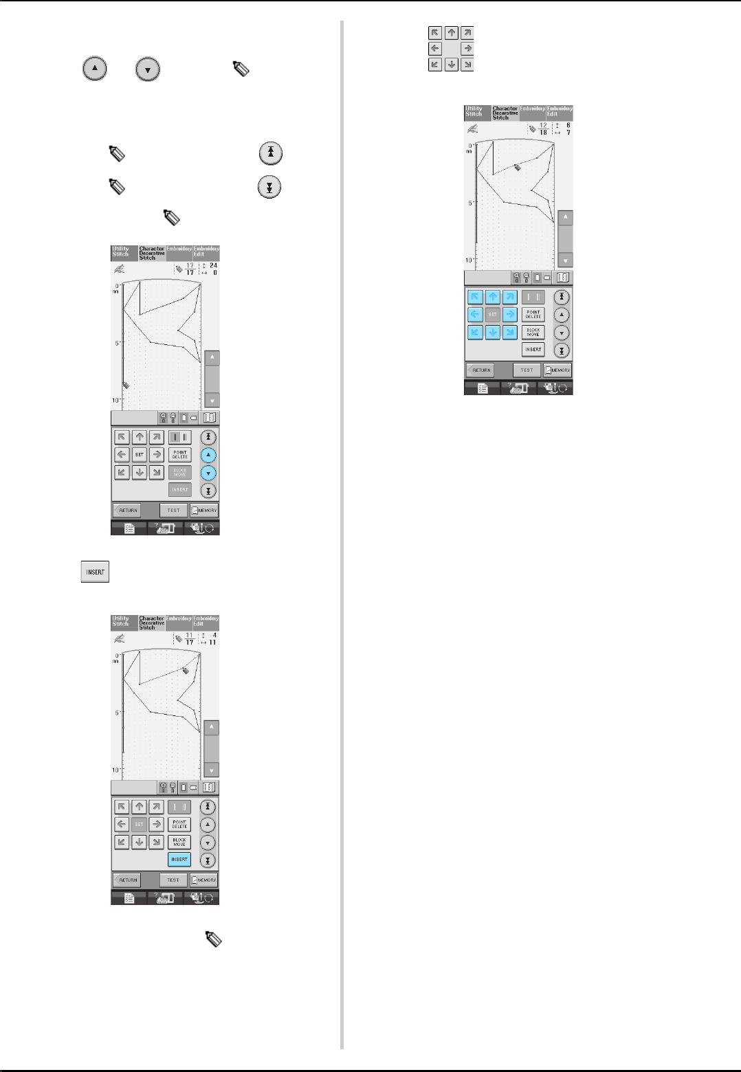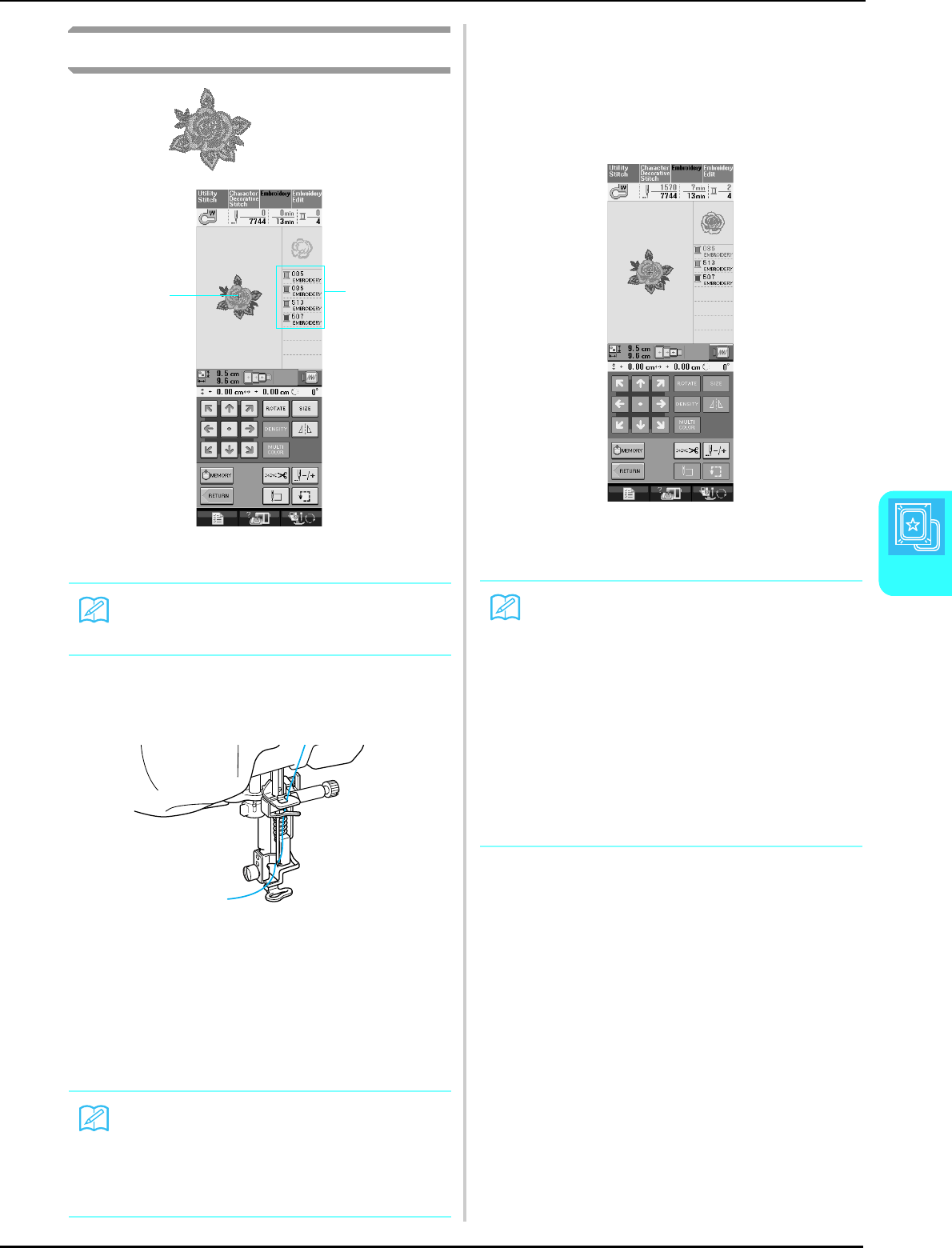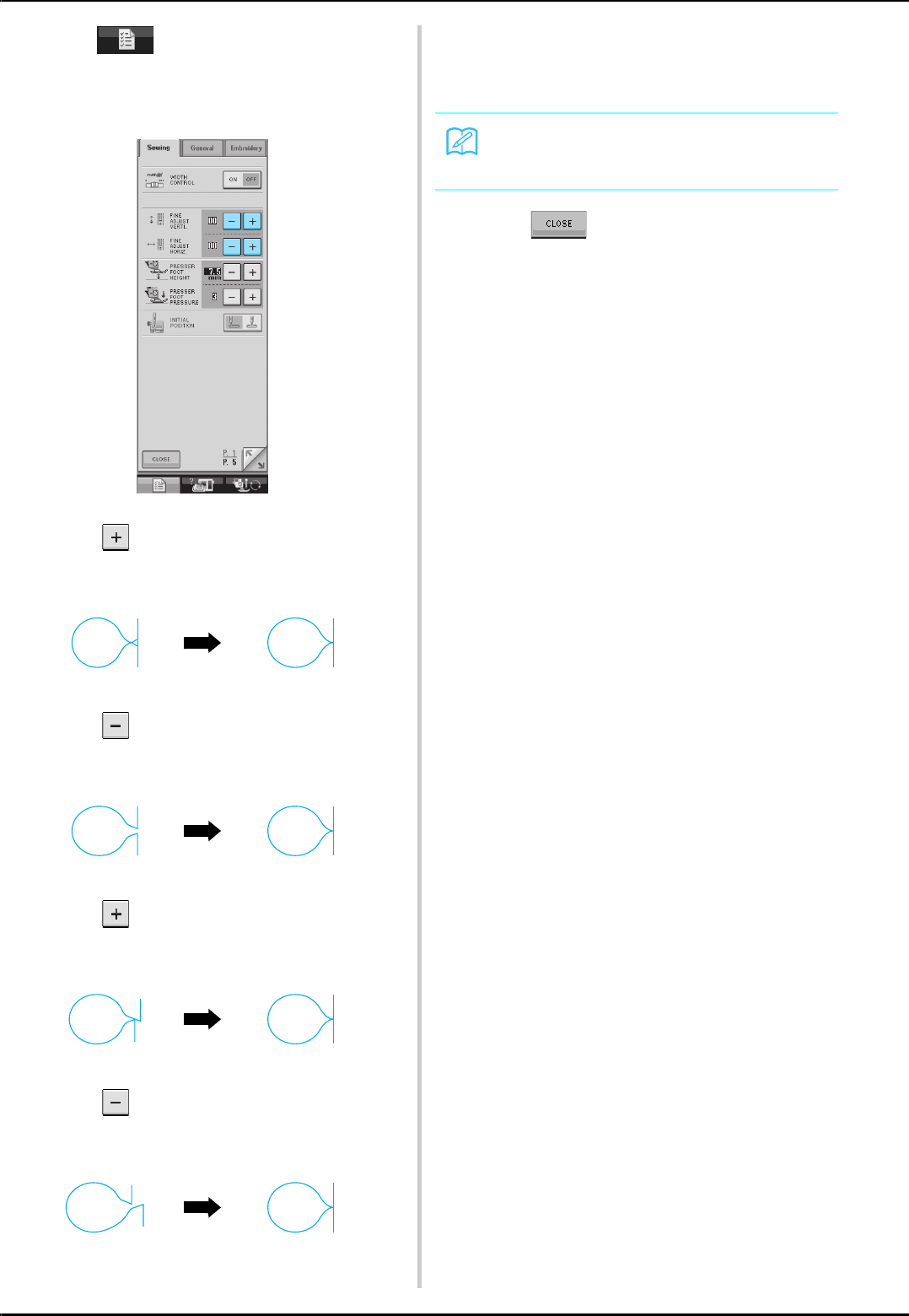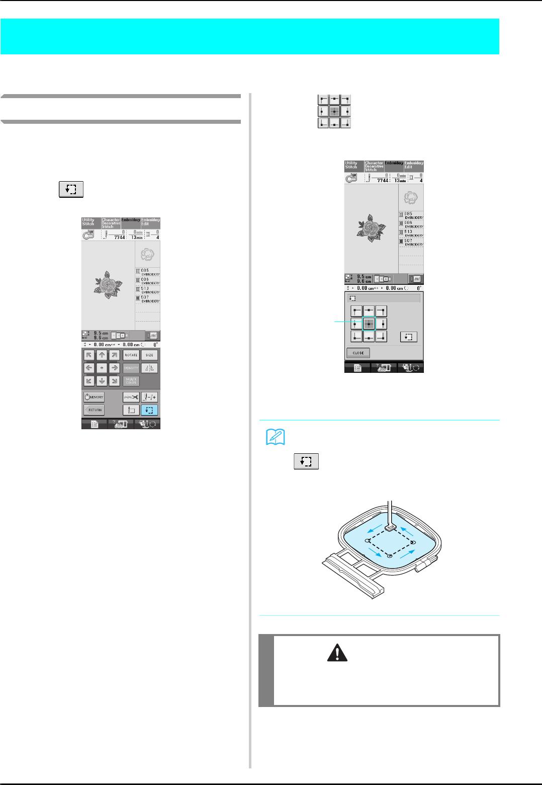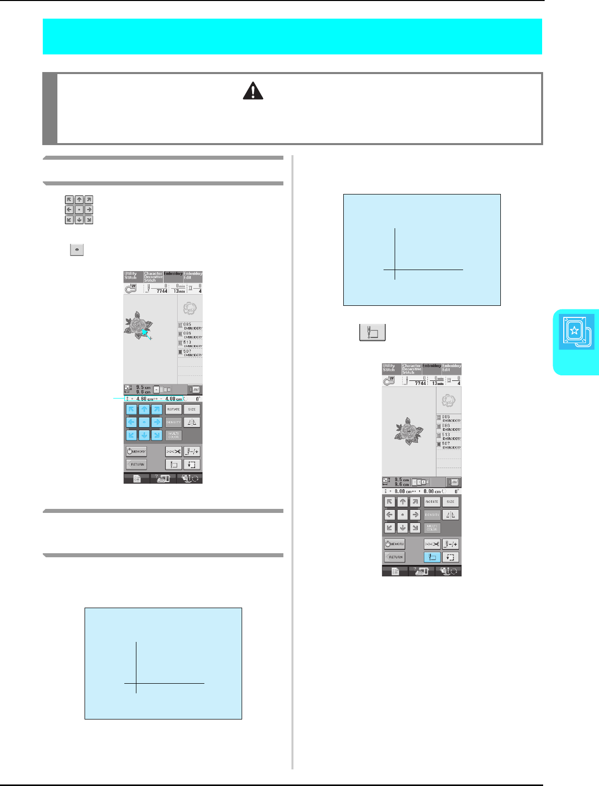 14. Switch the machine to the symbol “ ” position when making any adjustments in the needle area, such as