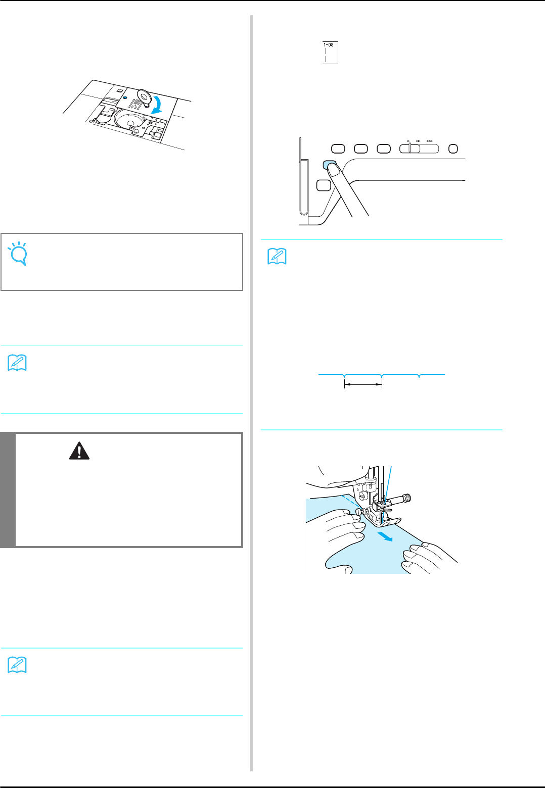 13. Do not pull or push fabric while stitching. It may deflect the needle causing it to break.
