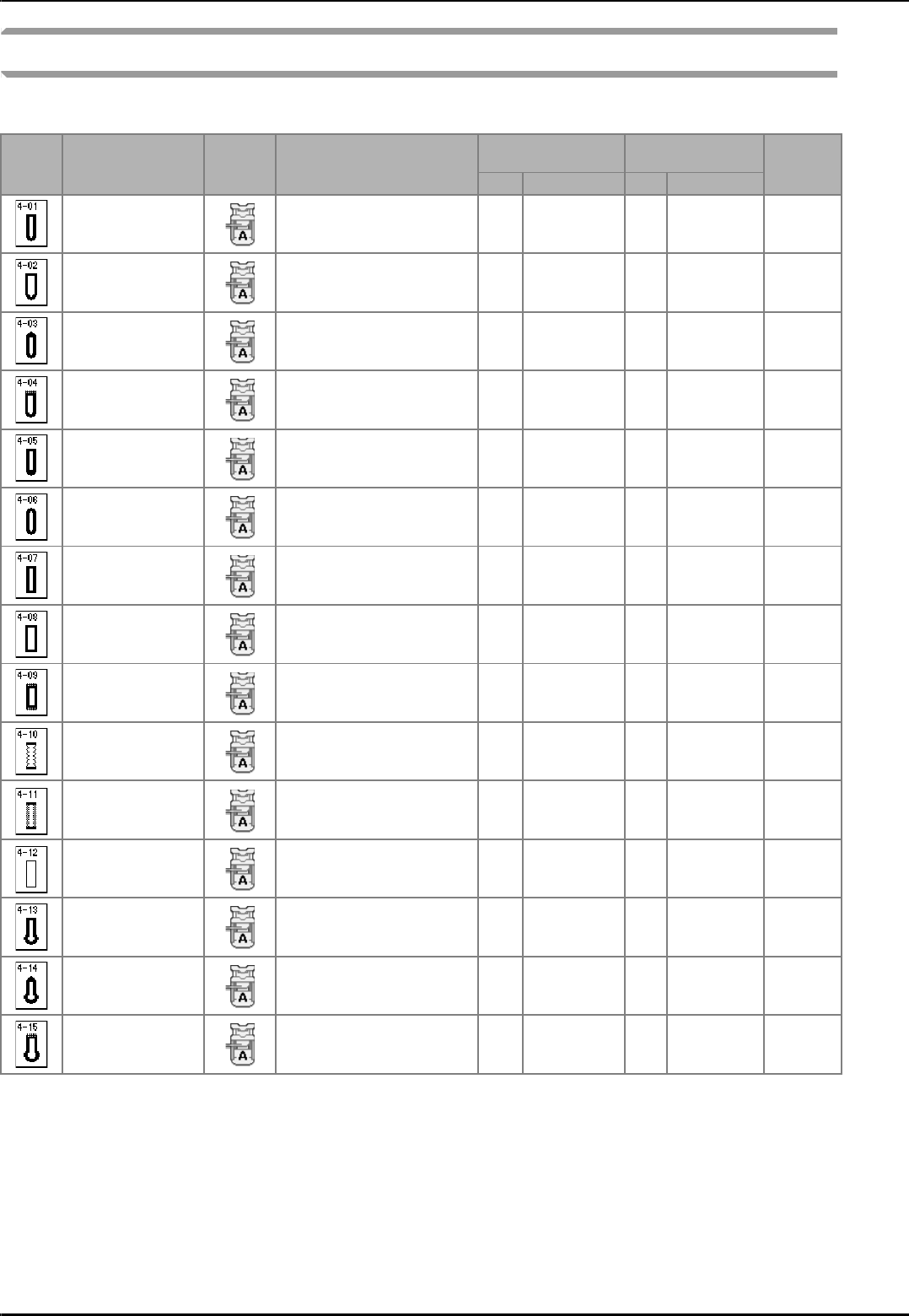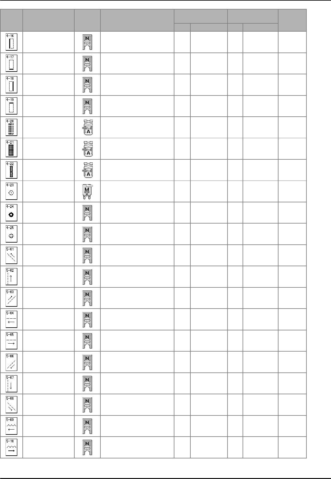 Sewing type selection key ............................................................. 51