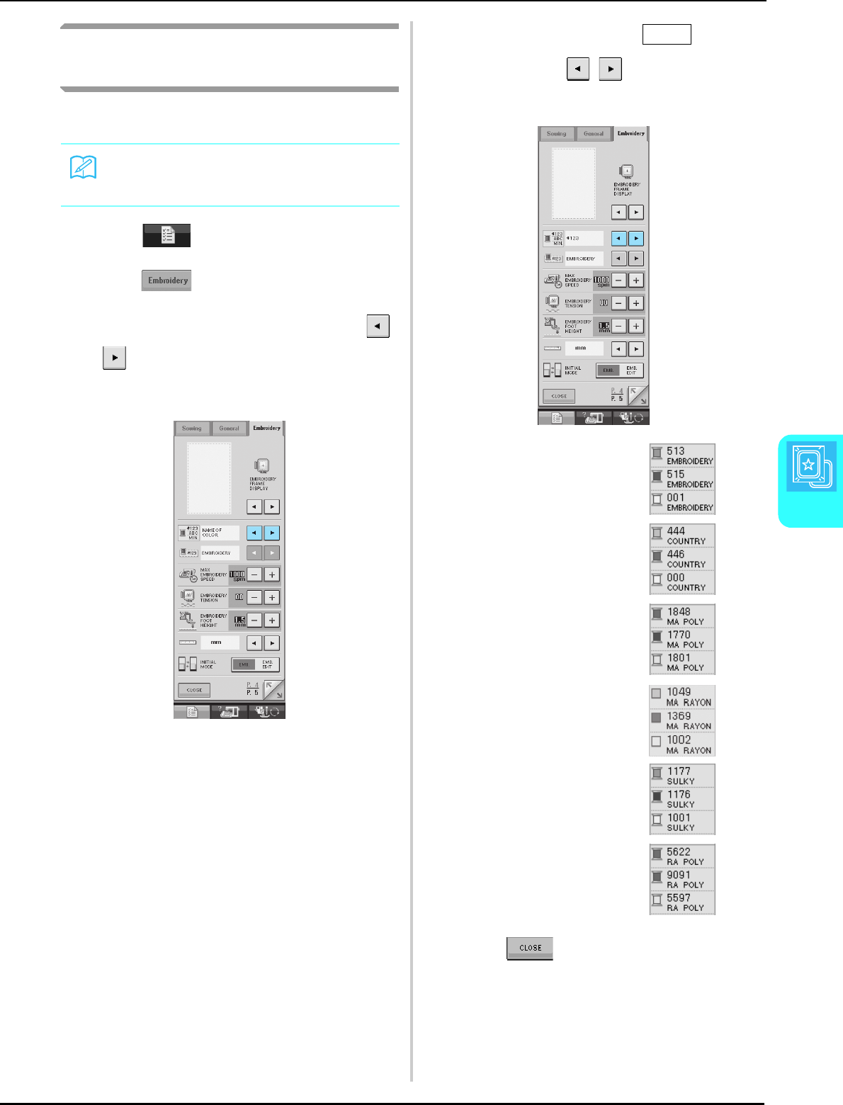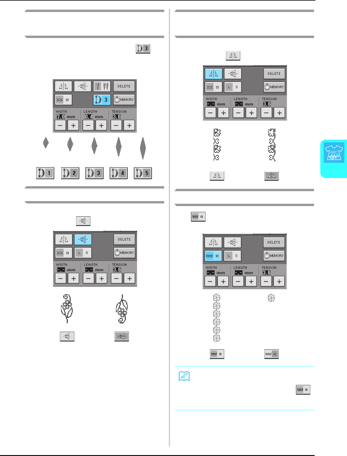 embroidery settings ................................................................... 14