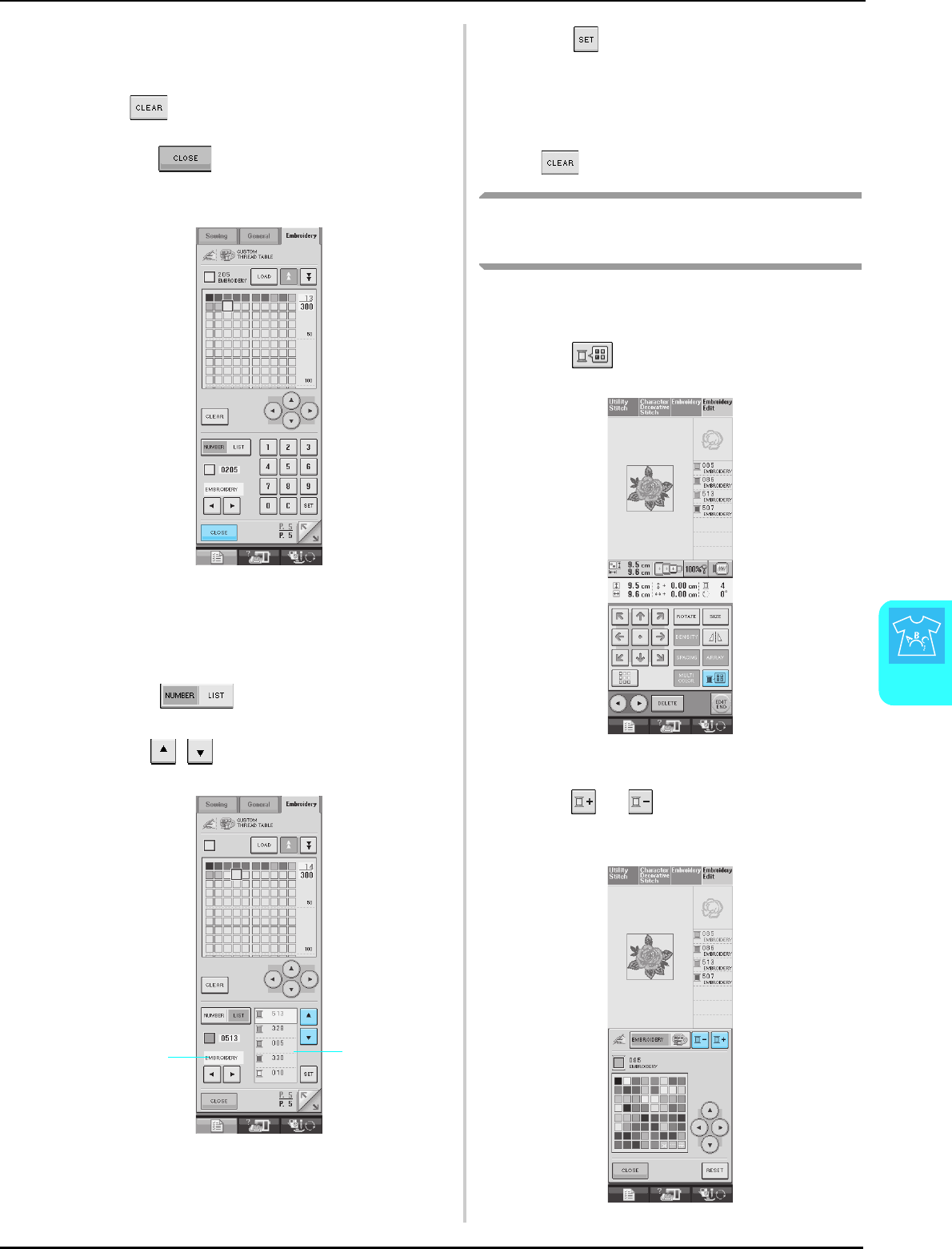Thread color display ................................................................... 157