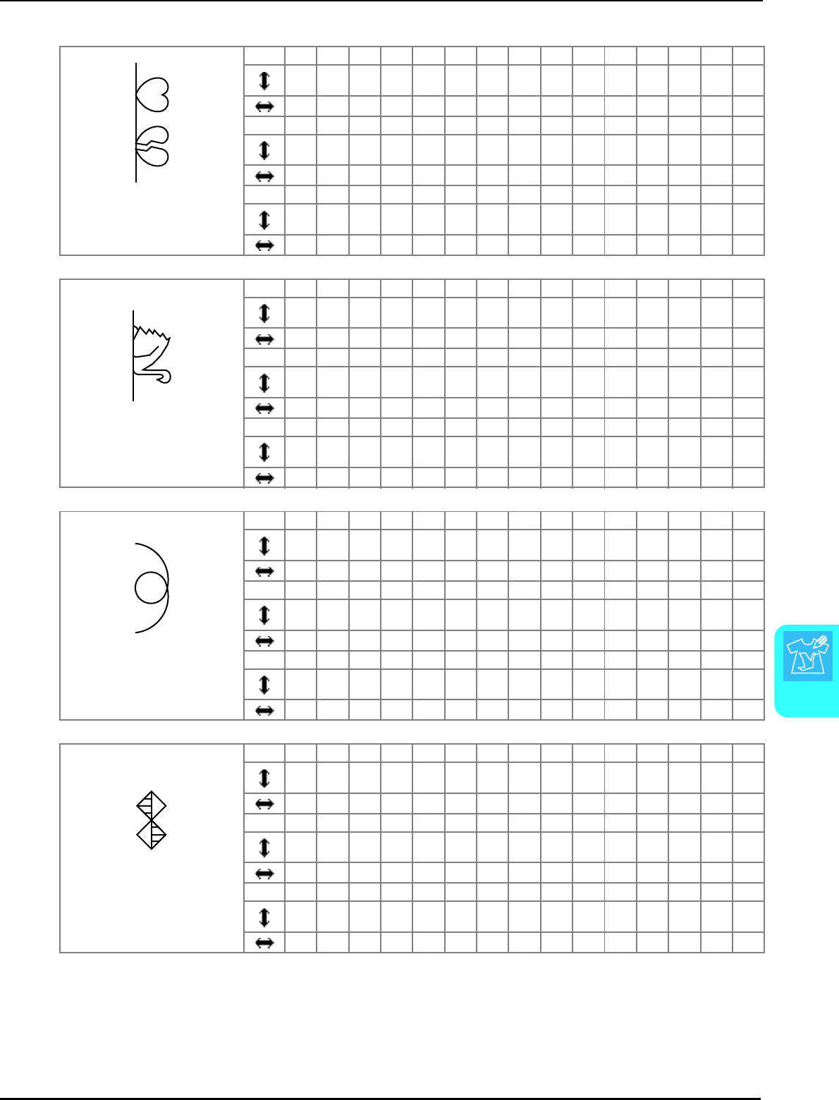 Stitch setting chart ...................................................................... 227