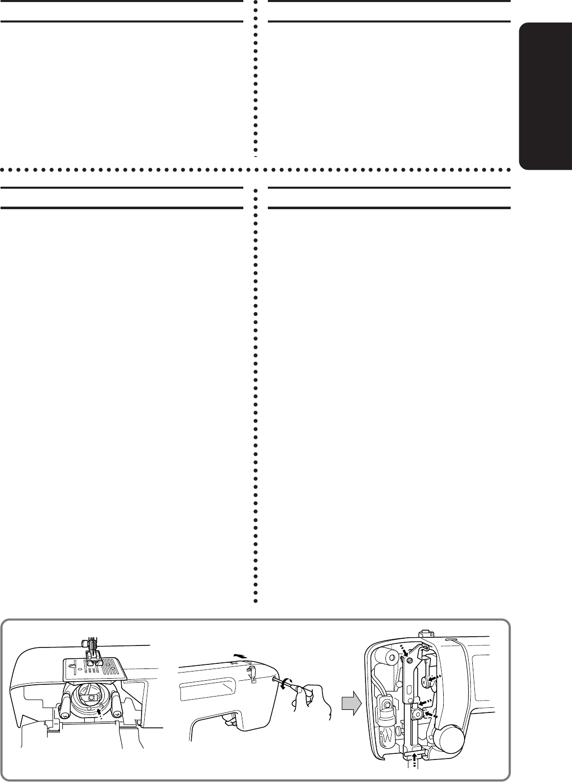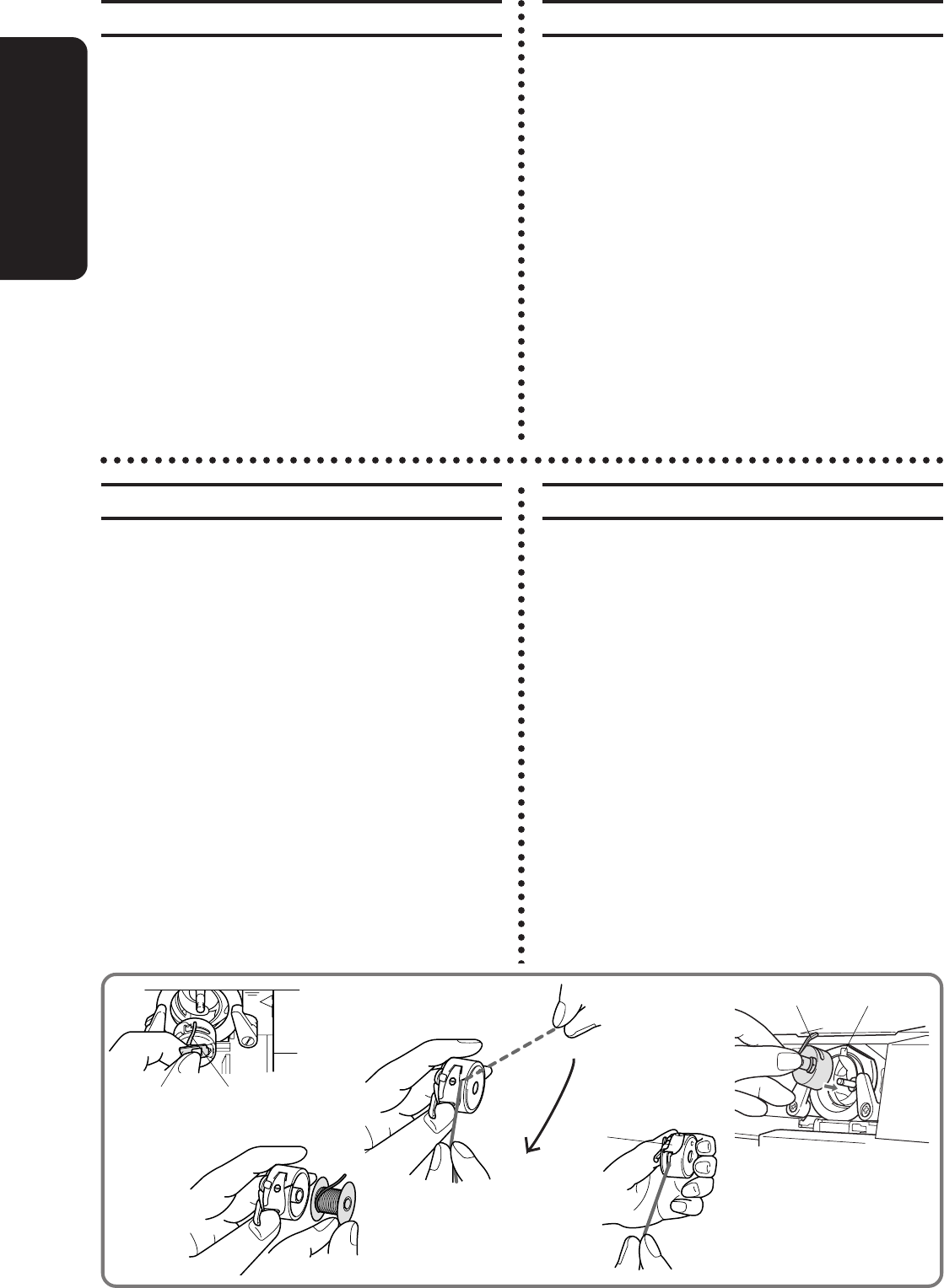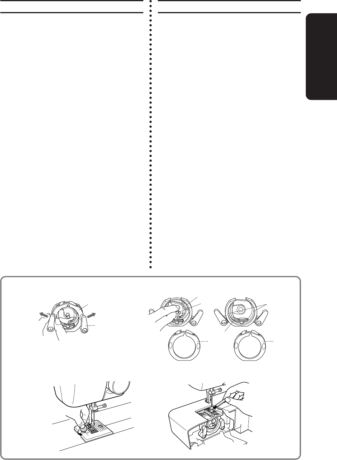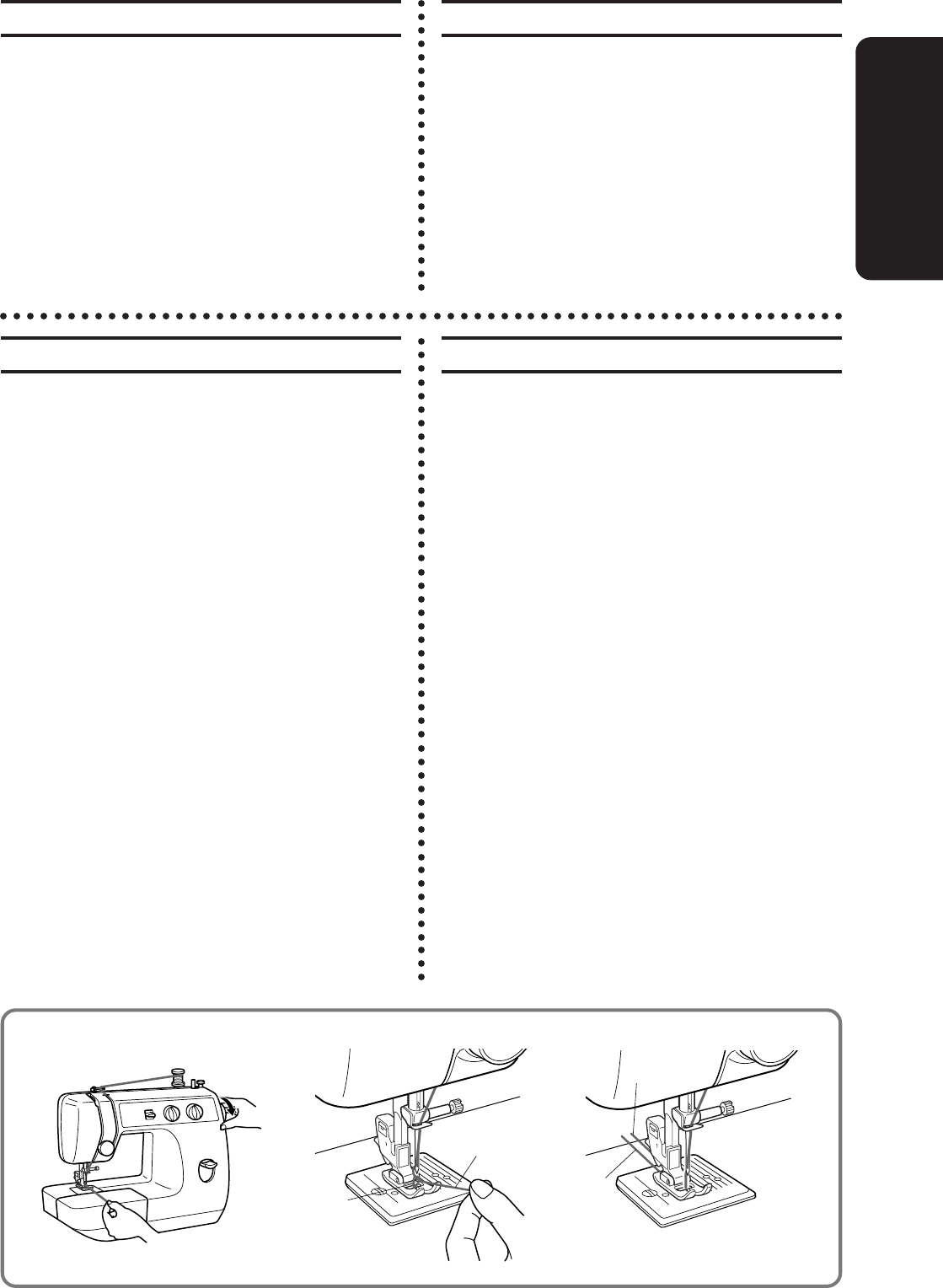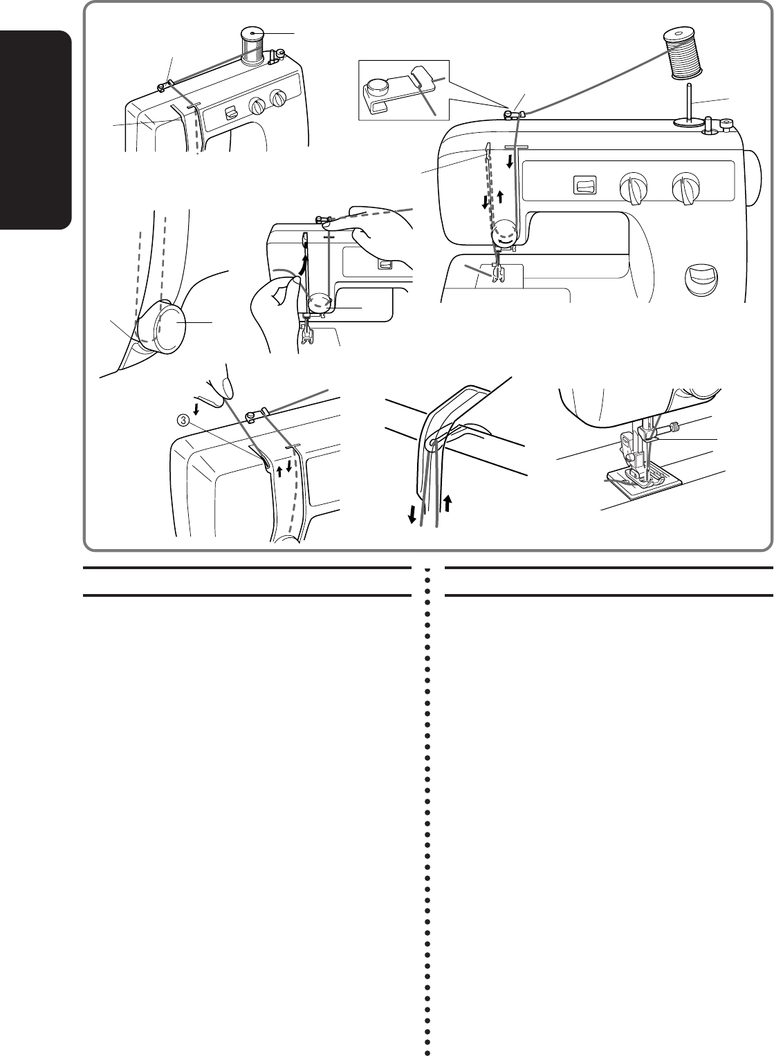 needle, changing the needle, threading the bobbin, or changing the presser foot.