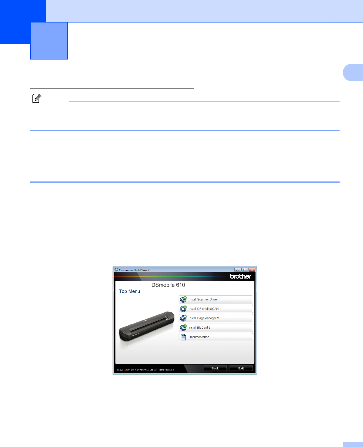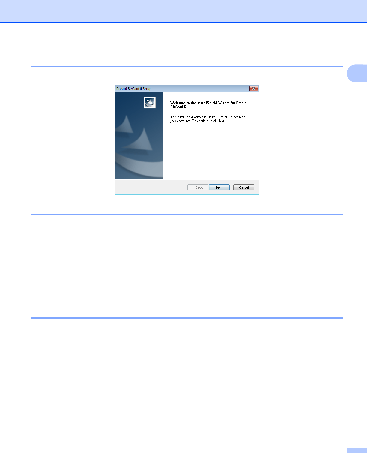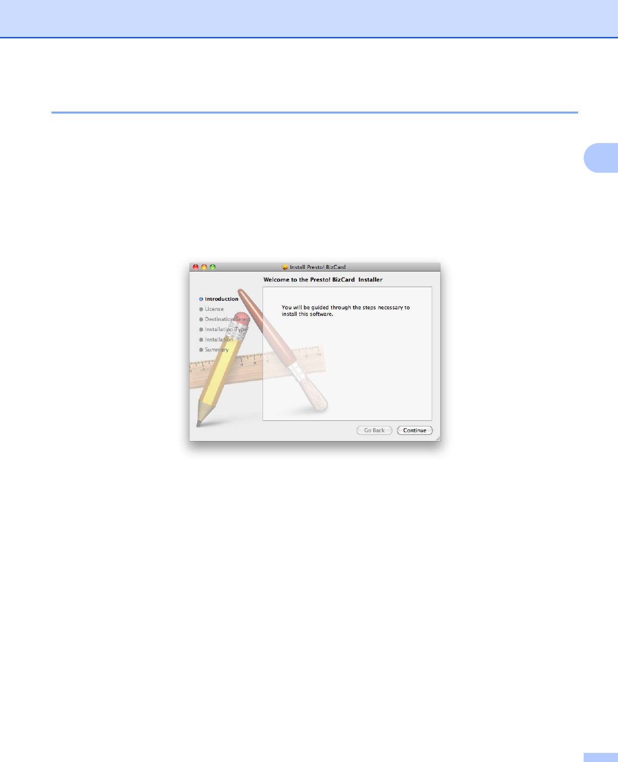 To install BizCard® 5, See BizCard® 5 Installation (For Mac OS® X v10.4, v10.5, v10.6 and v10.7) uu page 20.