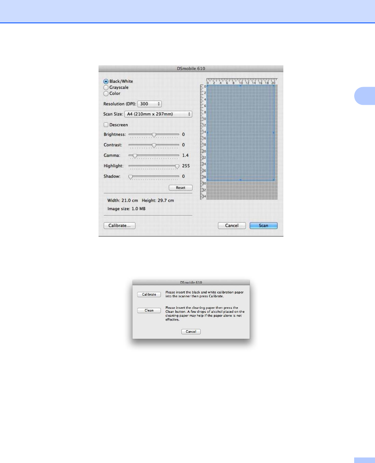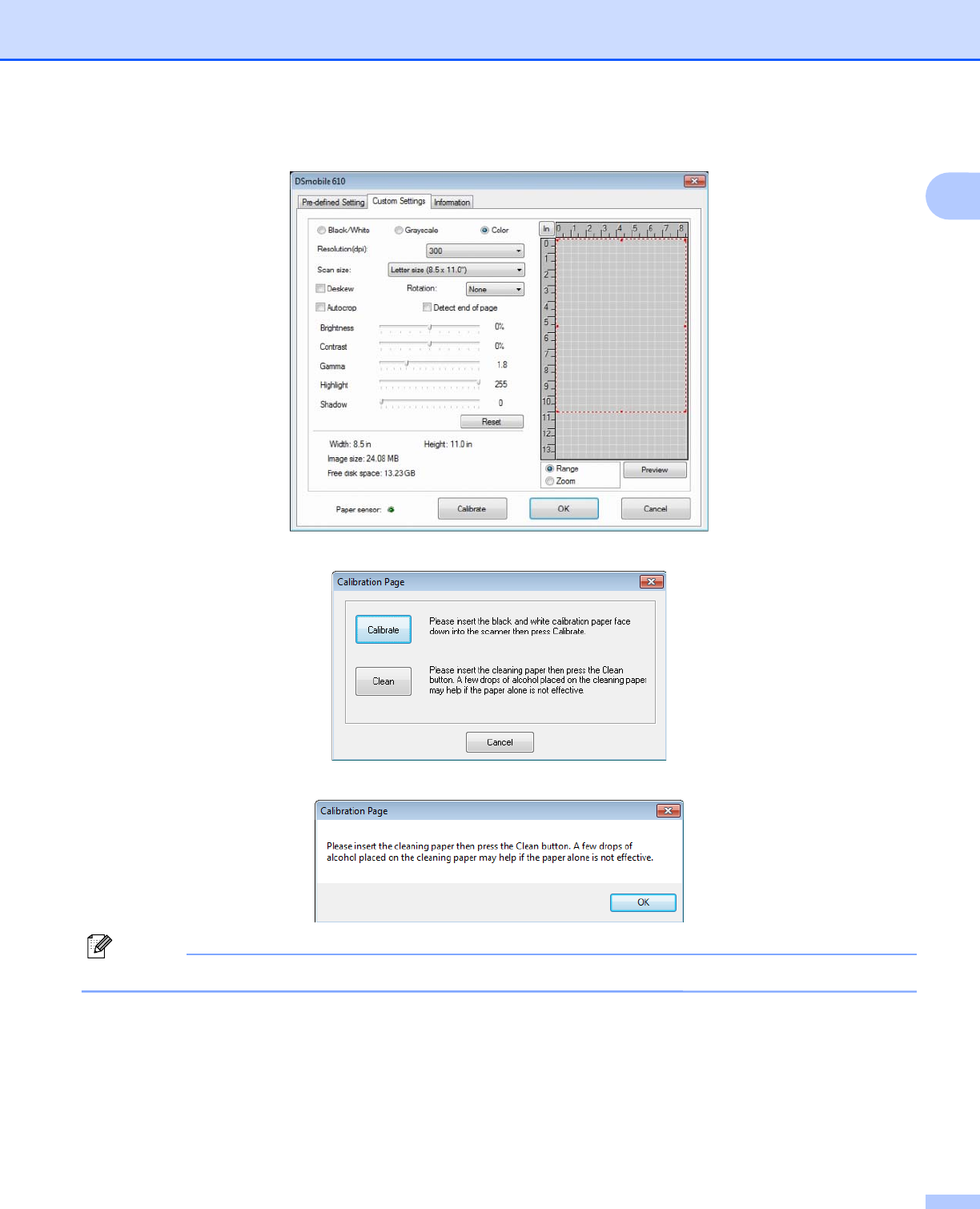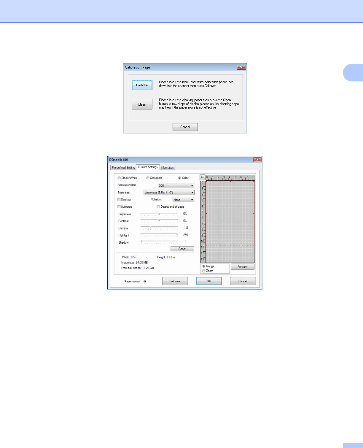 Calibrate DSmobile 610 scanner the first time you use it to insure that you get the best image quality.