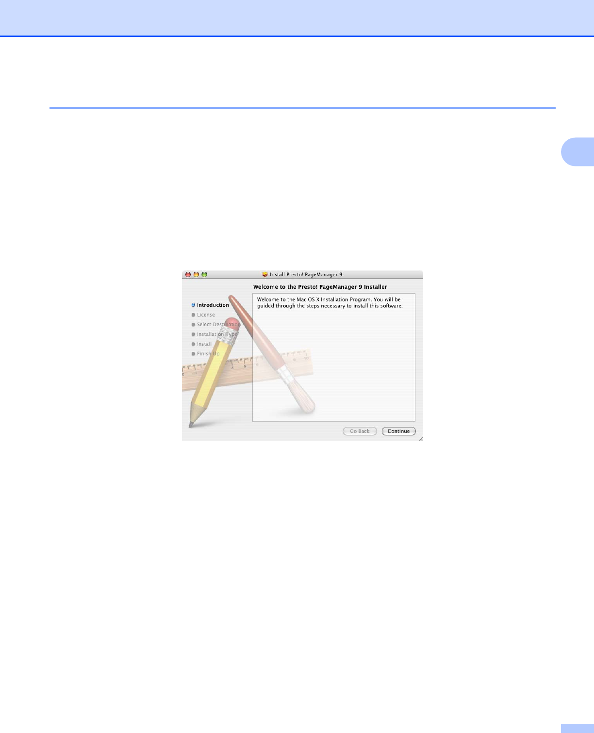 To install PageManager®, see PageManager® 9 Installation (For Mac OS® X v10.4, v10.5, v10.6 and v10.7)