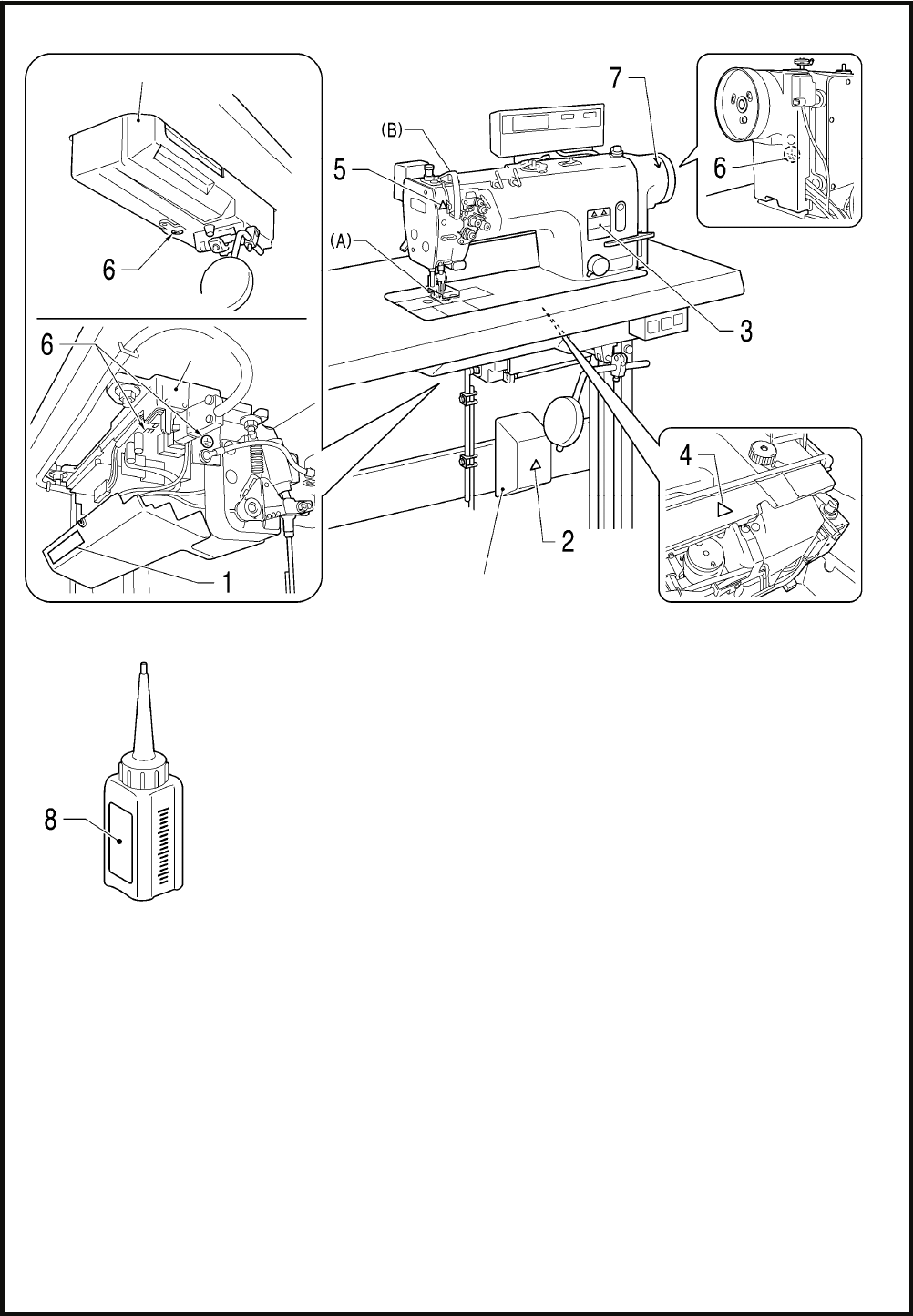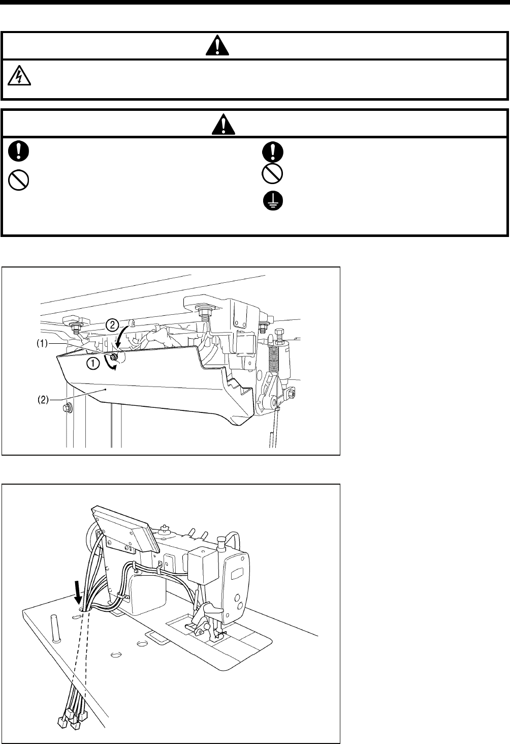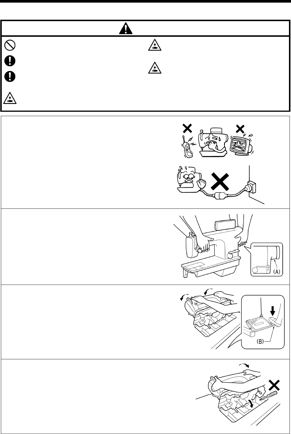 Attach all safety devices before using the sewing machine. If the machine is used without these devices attached,