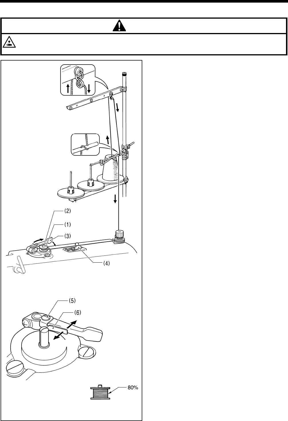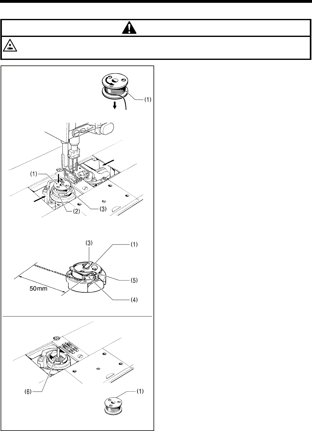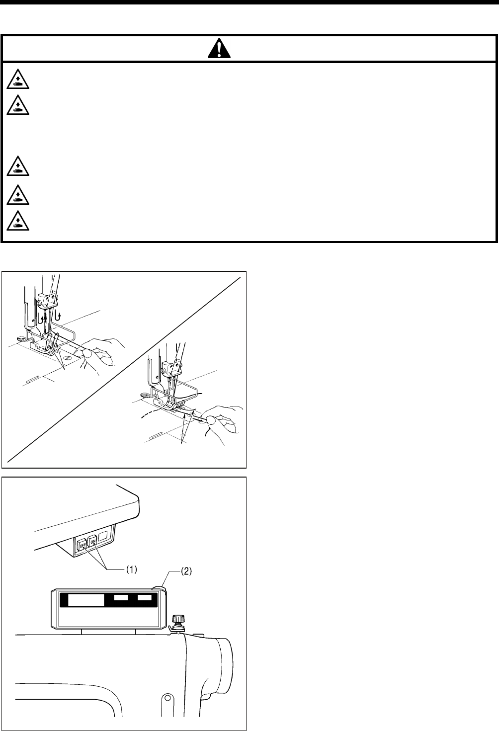 moving parts such as the needle and thread take-up, and consequently there is always a danger of