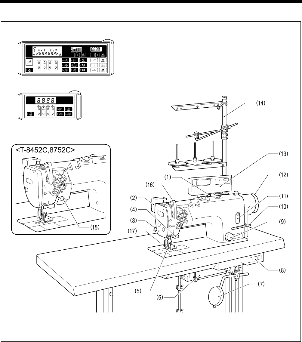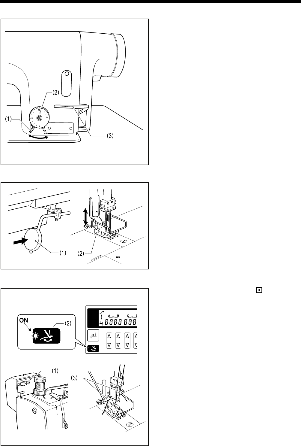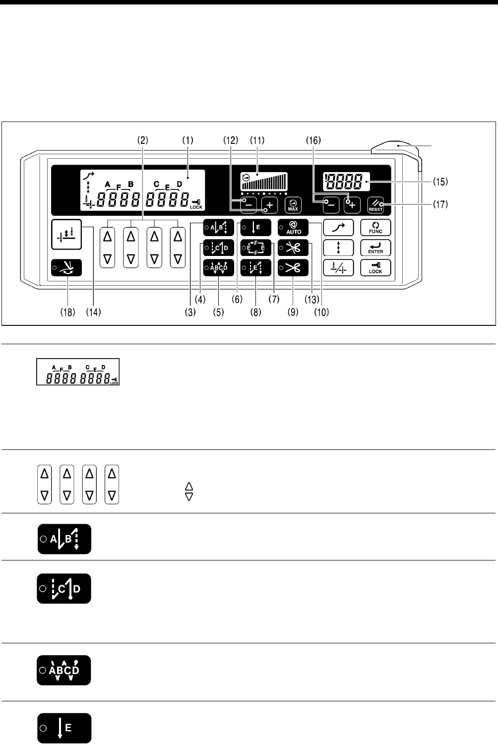 • When the indicator of the thread trimming lock key (13) is illuminated, the thread wiper
