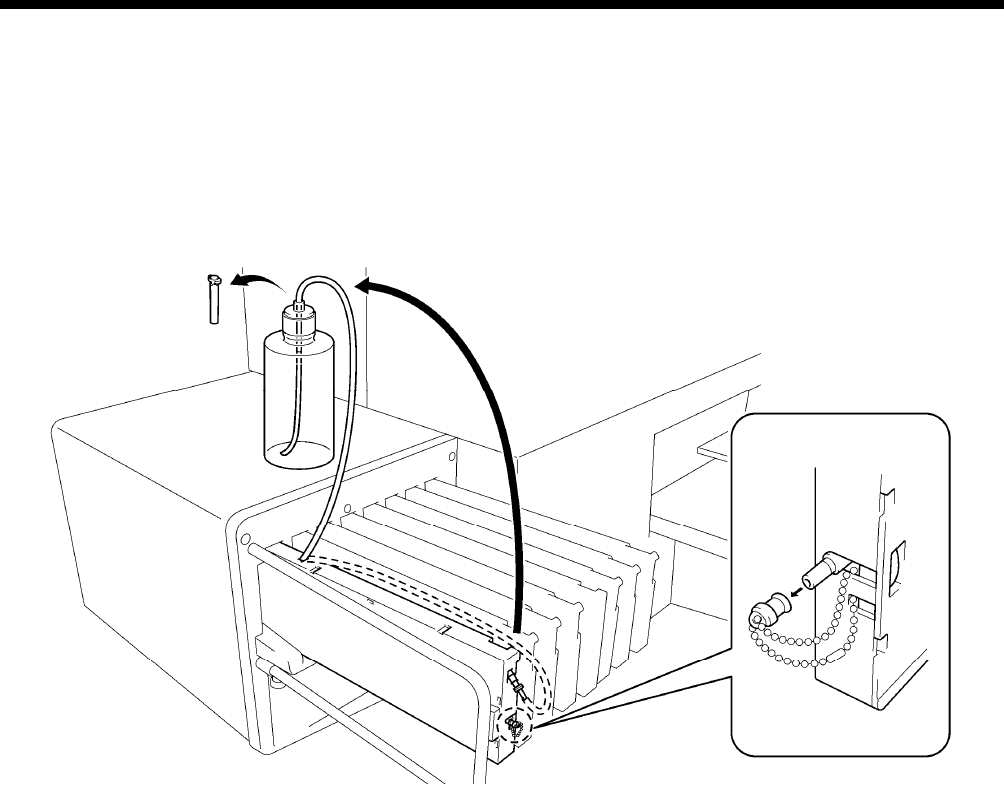 (1) Fill the bottle with Maintenance Solution. Confirm that at least more than 250 ml per one Print Head is in the bottle.