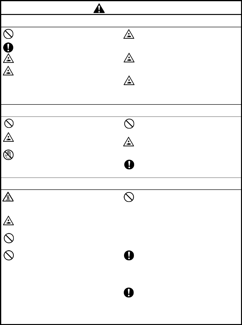 · · · · · This symbol ( ) indicates something that you should be careful of. The picture inside the triangle