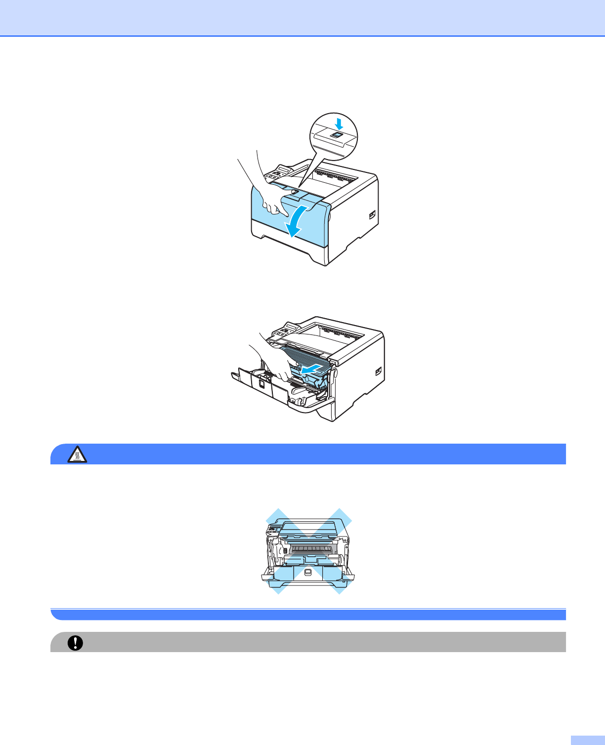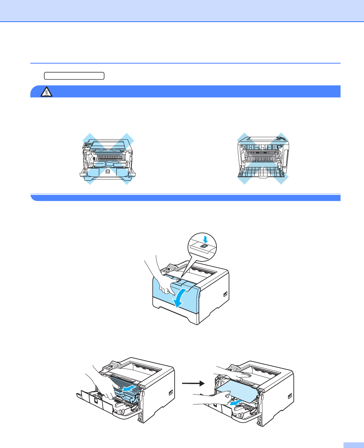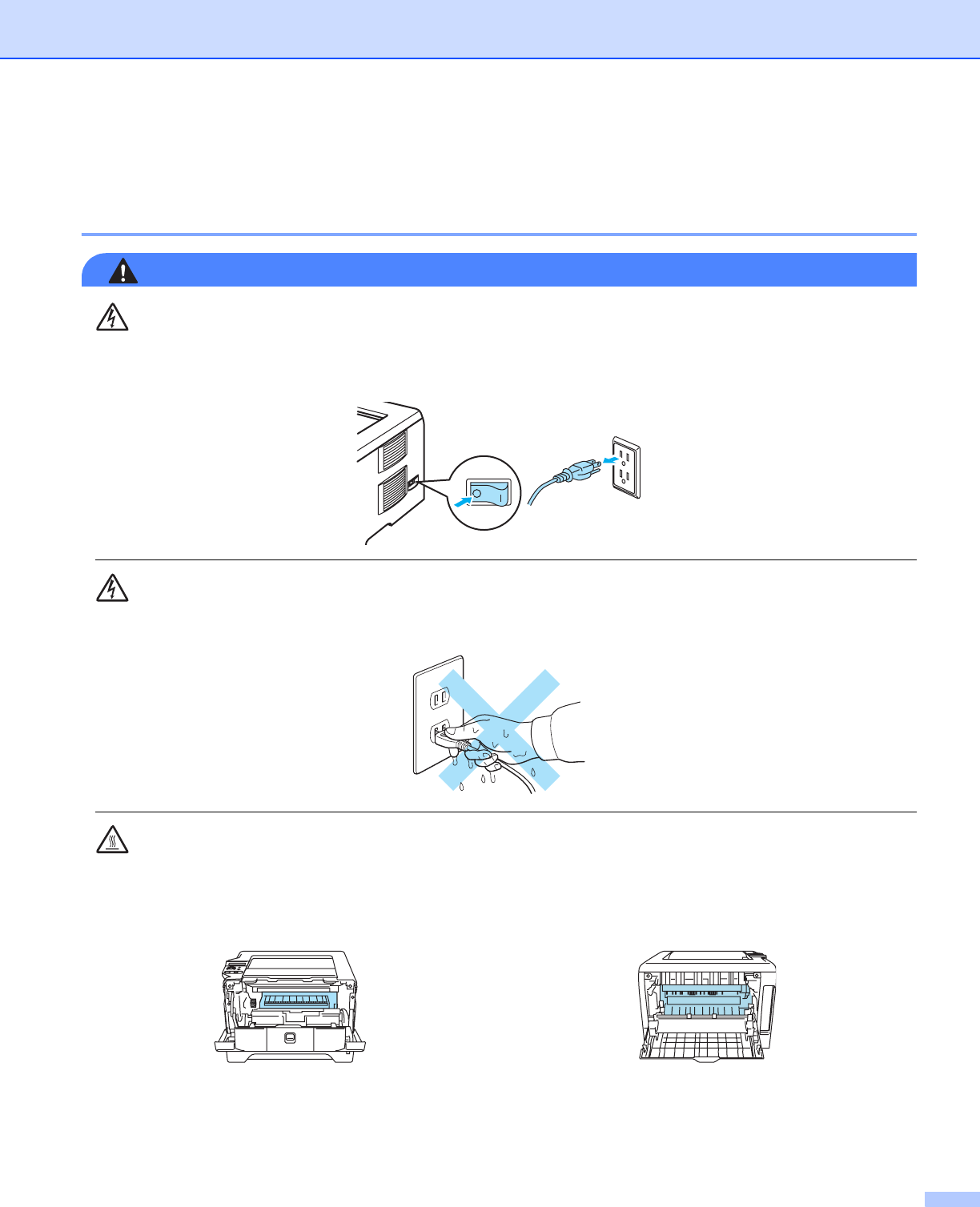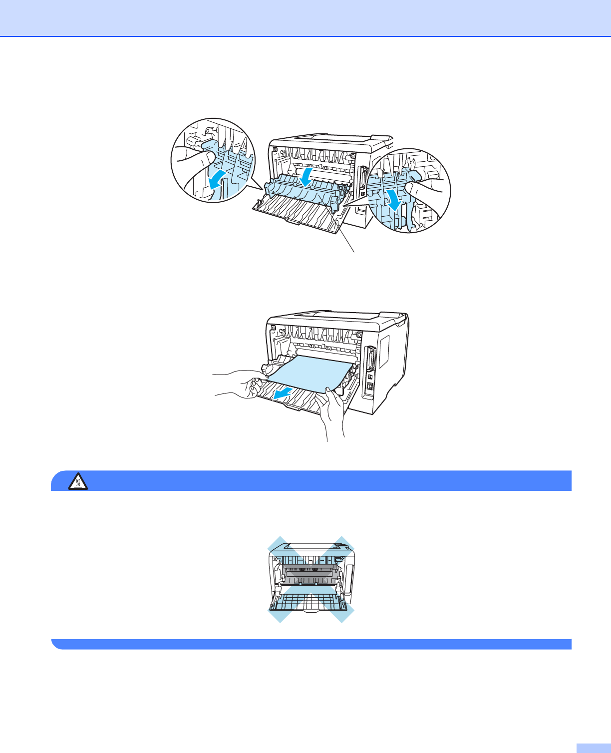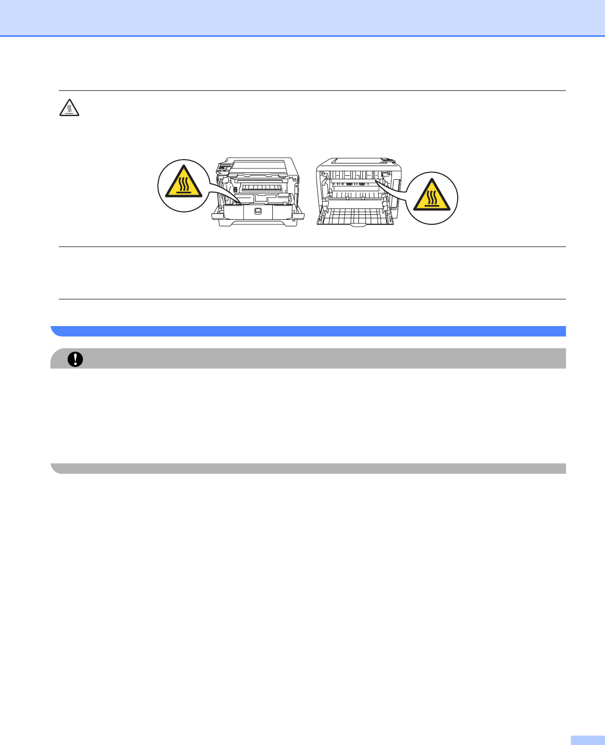 After you have just used the printer, some internal parts of the printer will be extremely hot. When you open