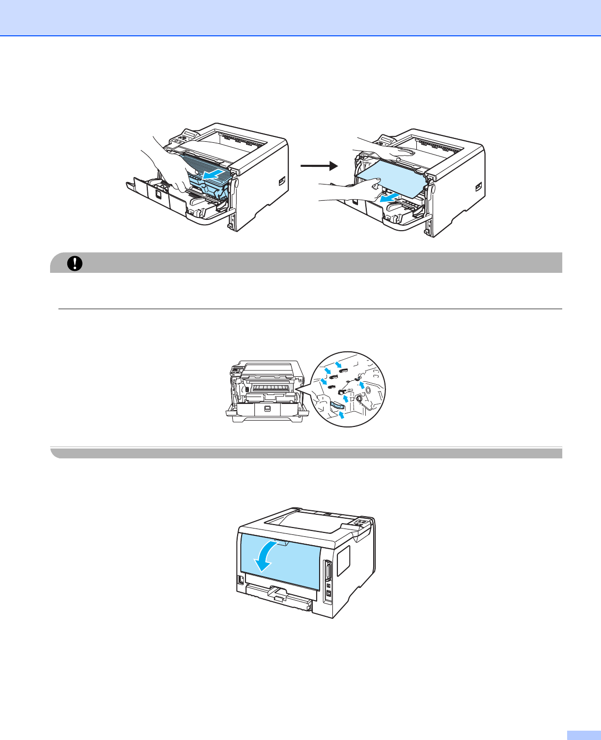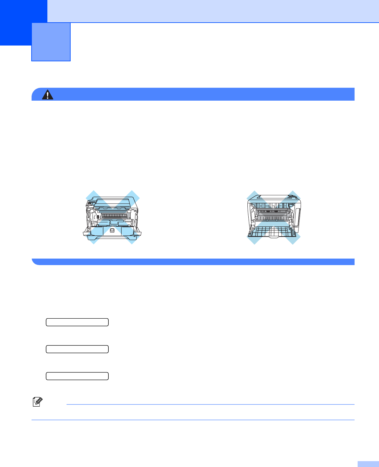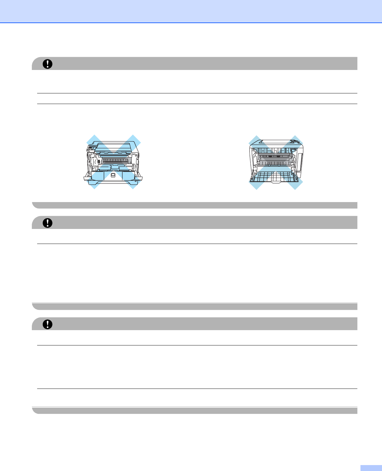 the front or back cover of the printer, DO NOT touch the shaded parts shown in the illustration.