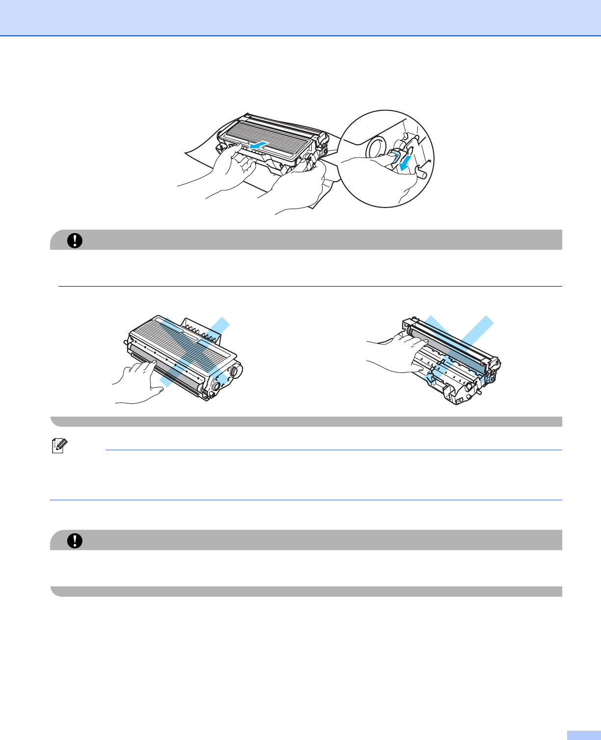 inside the vacuum cleaner, potentially starting a fire. Carefully clean the toner dust with a dry, lint-free cloth