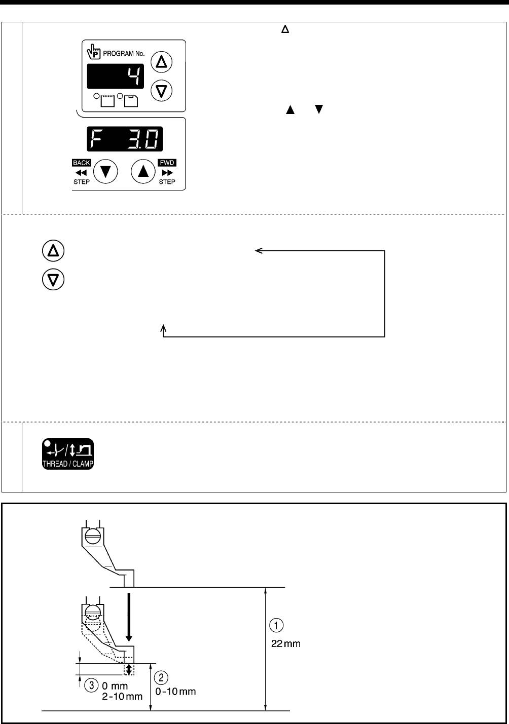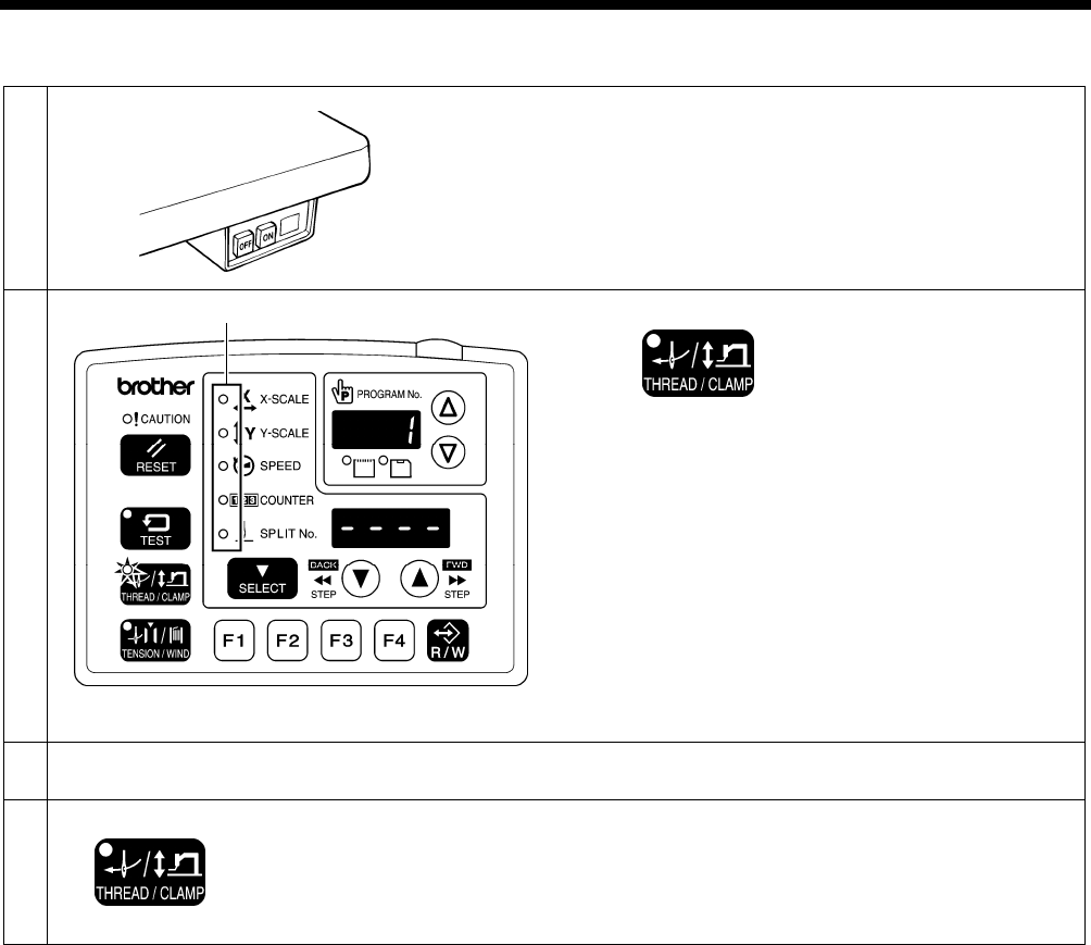 • The thread will be trimmed, and then the CAUTION indicator will switch