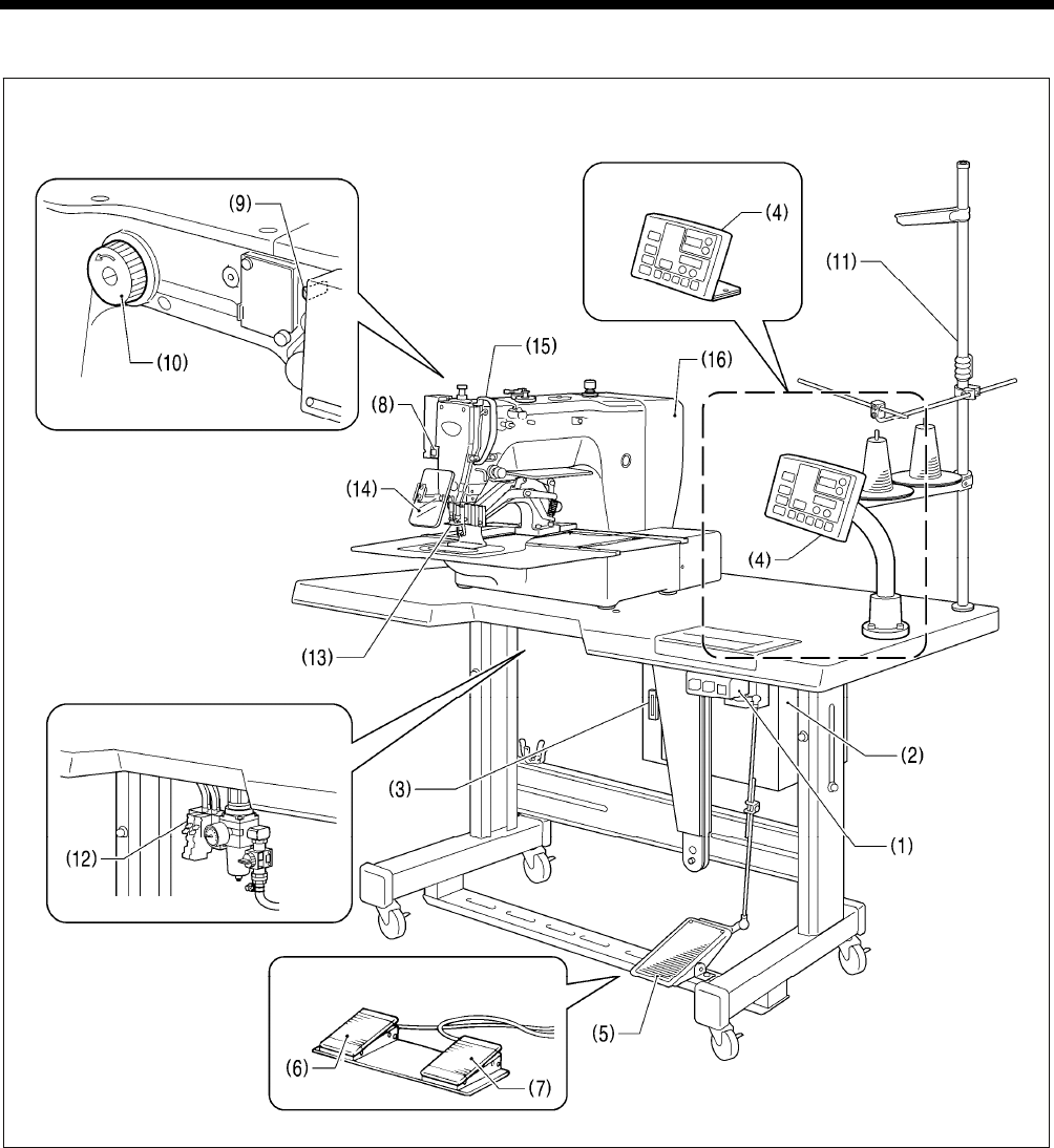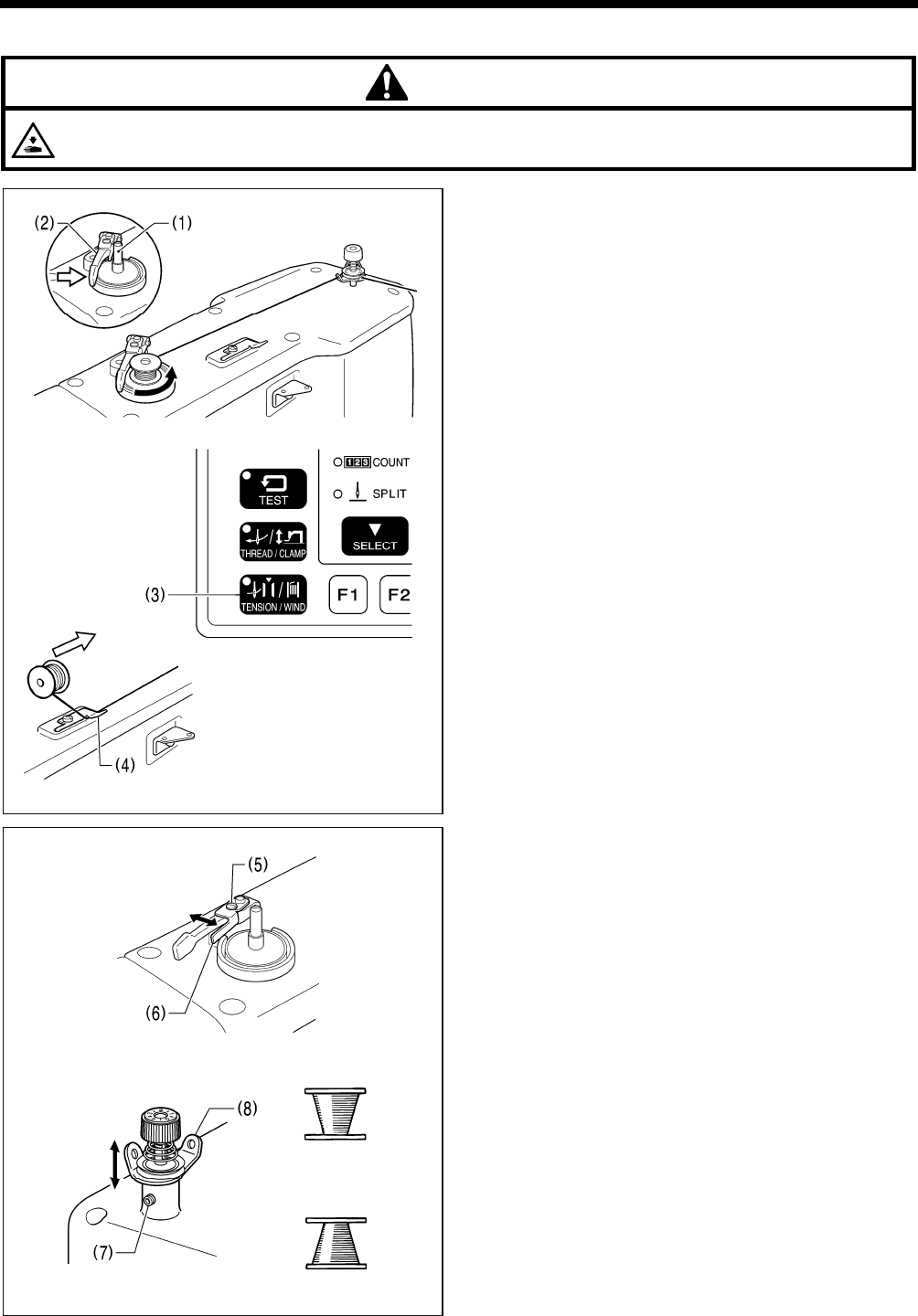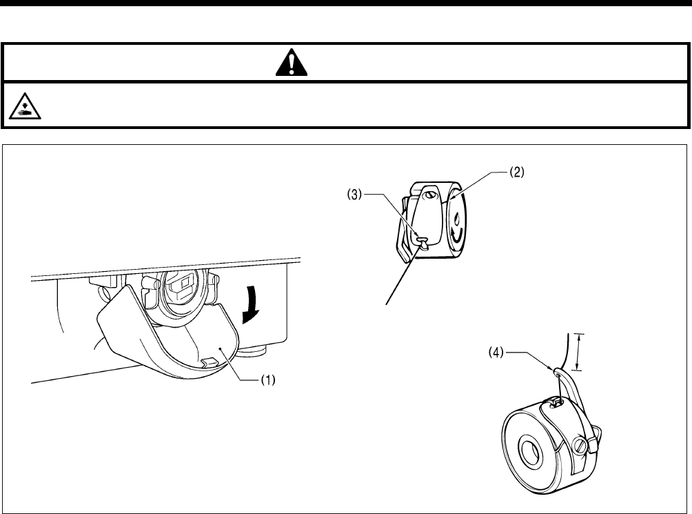 If you have pressed the STOP switch (1) at times such as if the thread breaks while sewing or the lower thread runs out, you