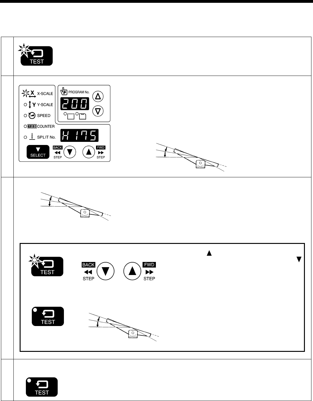 If you press the STOP switch (1) while sewing or test feeding is in progress, the CAUTION indicator (2) will illuminate and