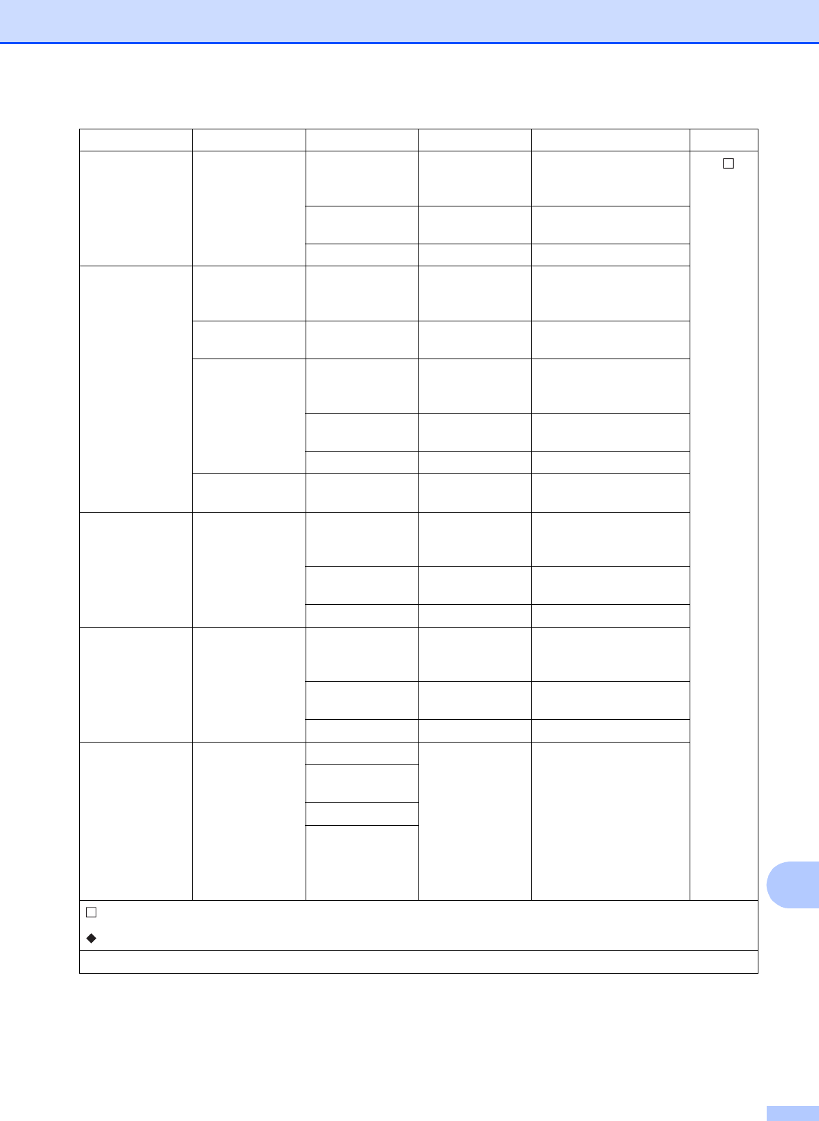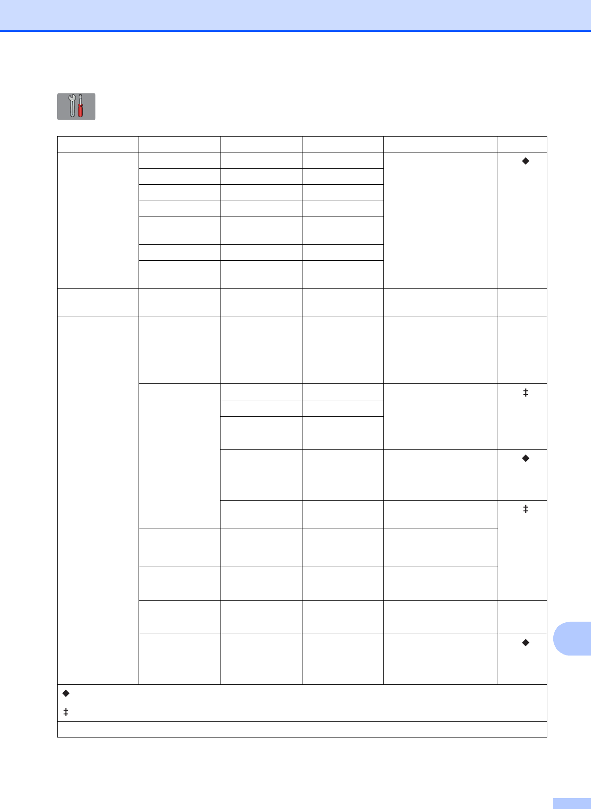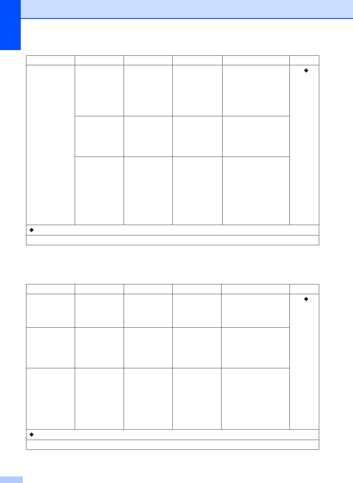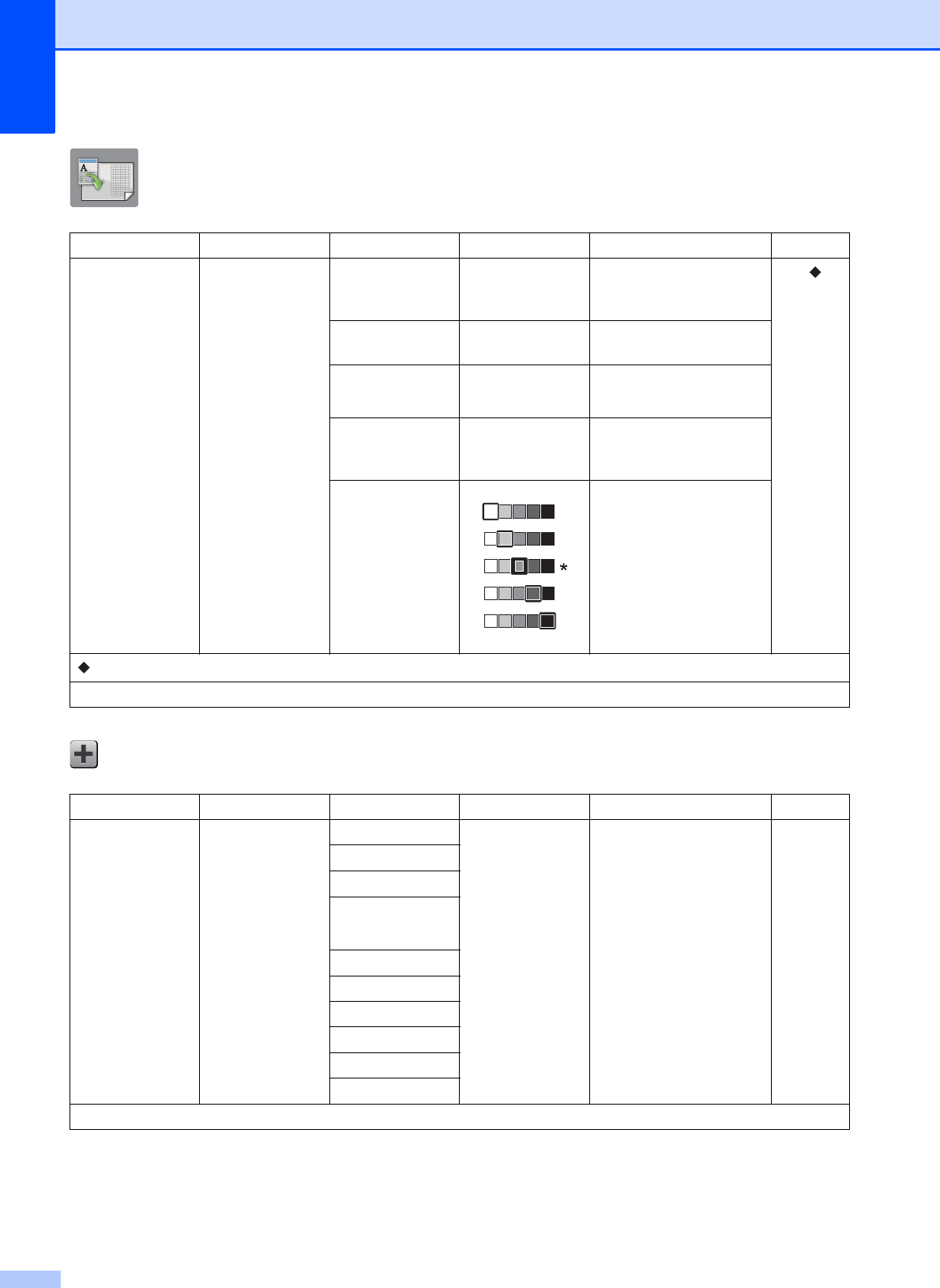 Step-by-step Settings Tables ................ 137