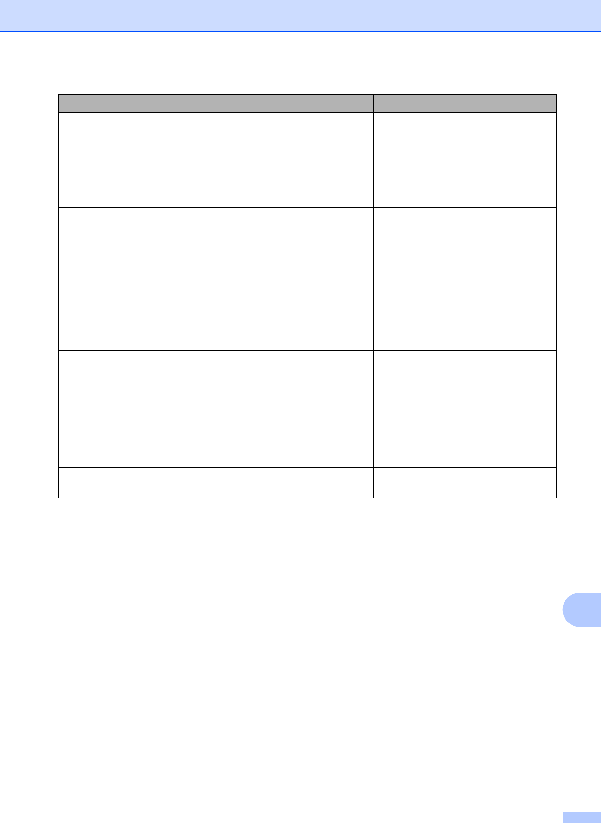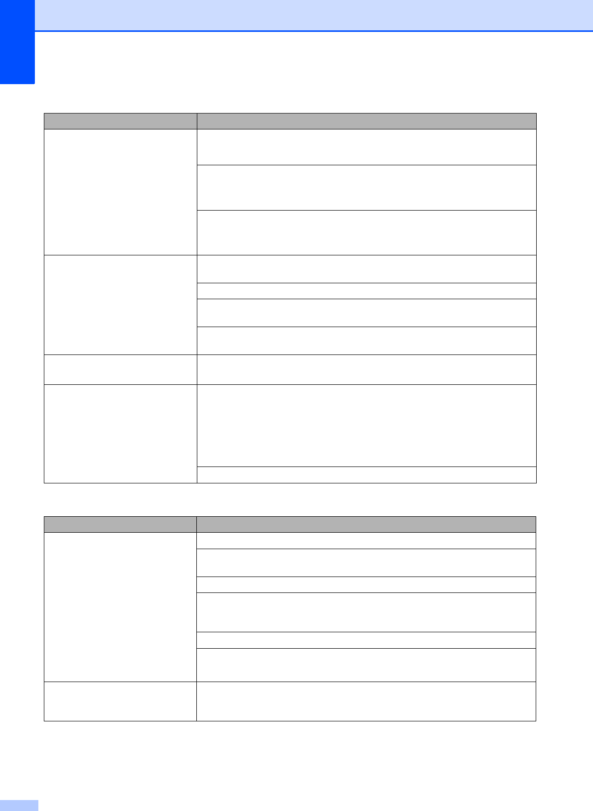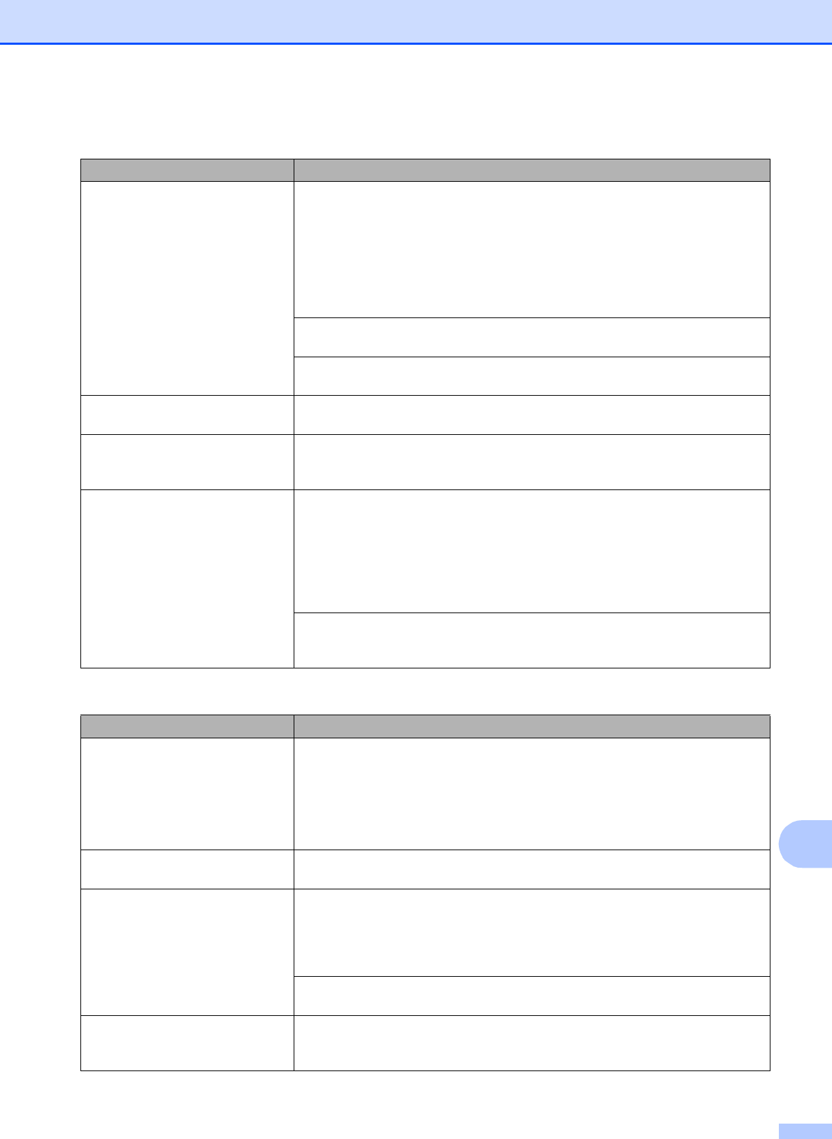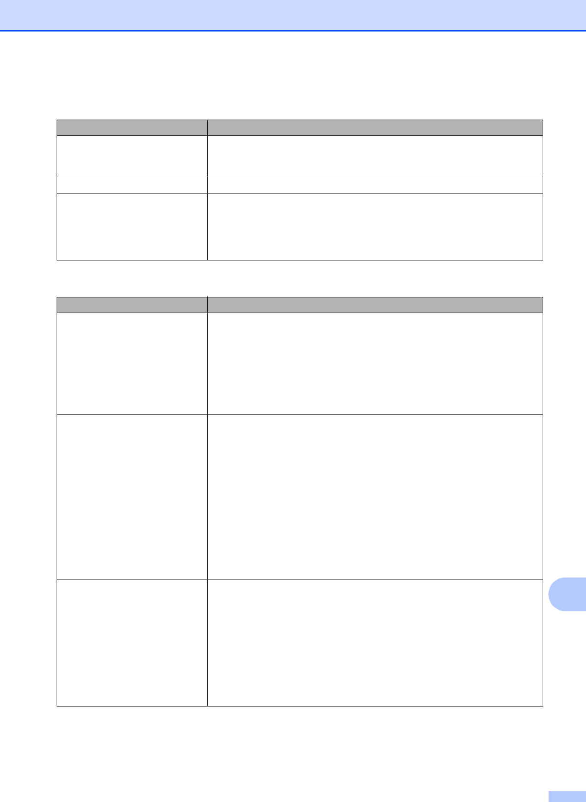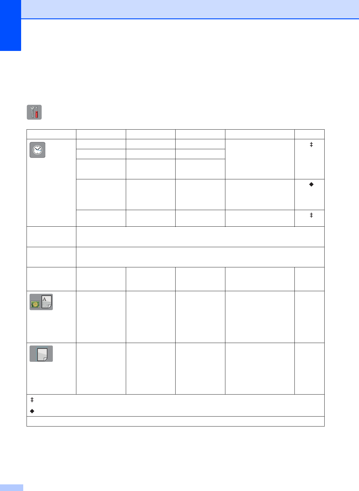 Step-by-step Settings Tables ................ 137
