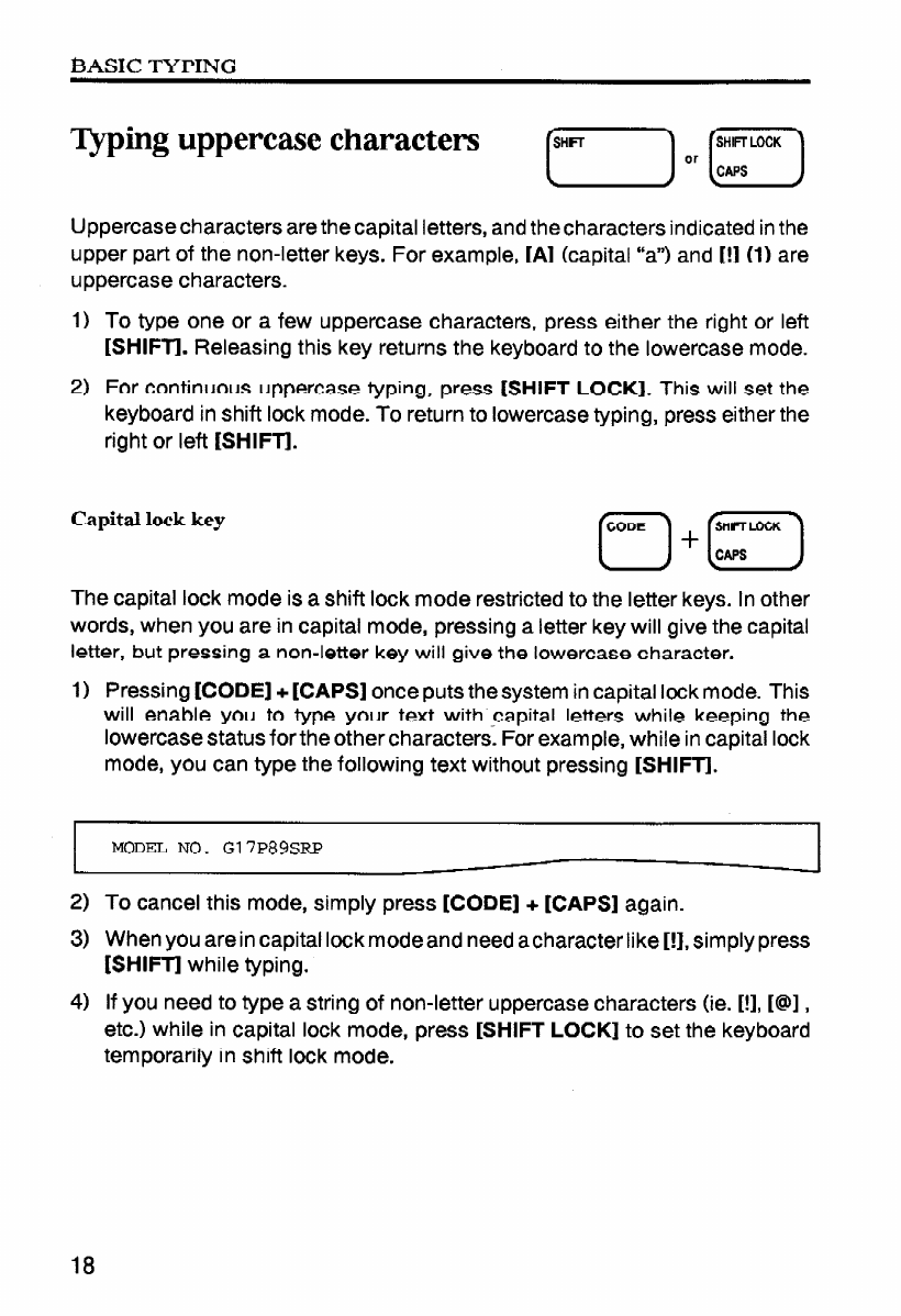 - Typing uppercase characters