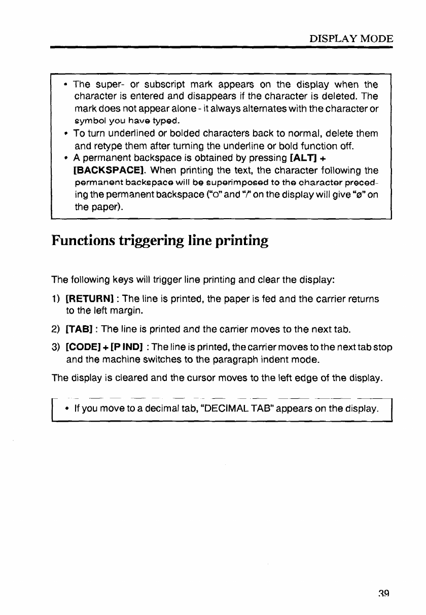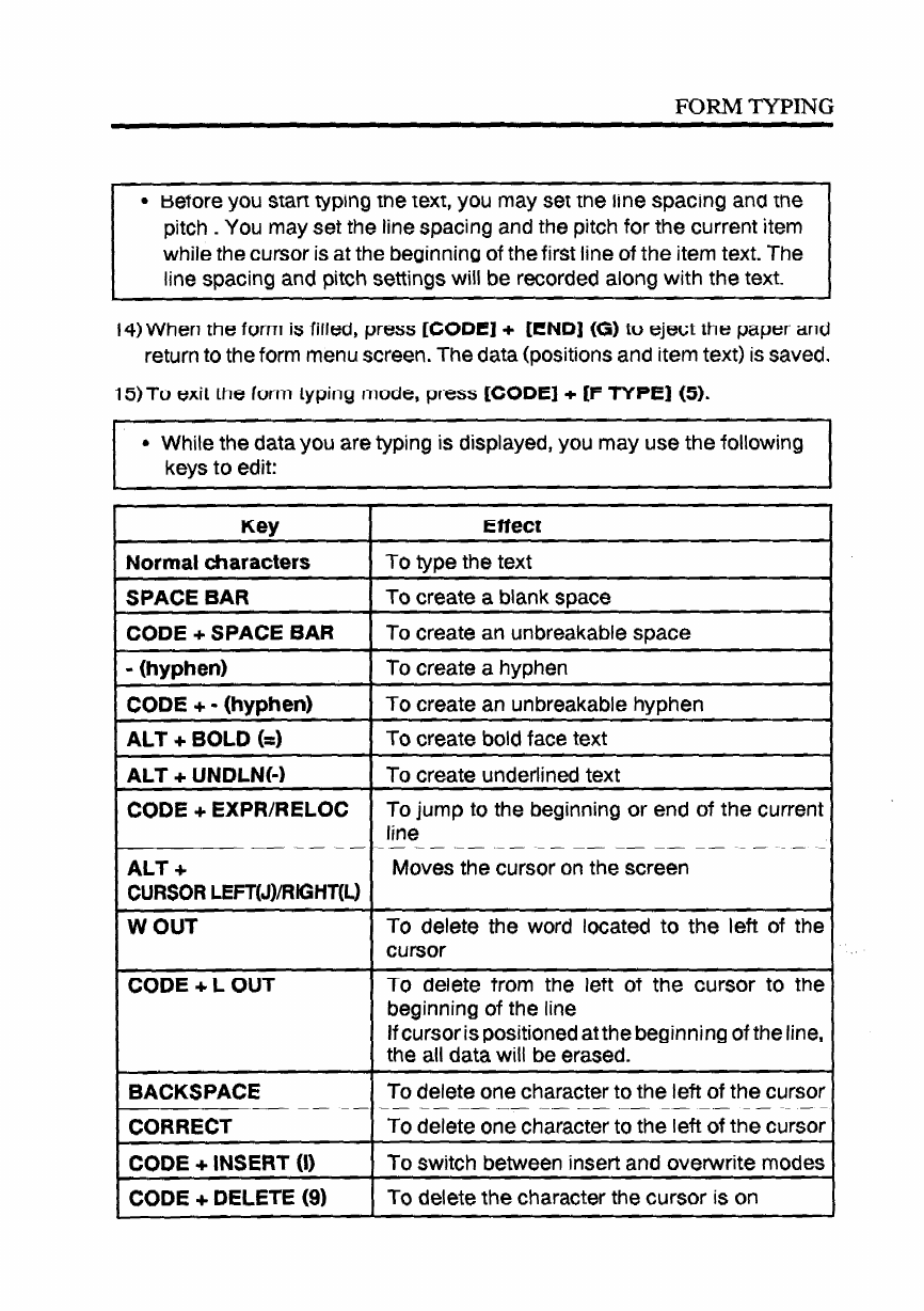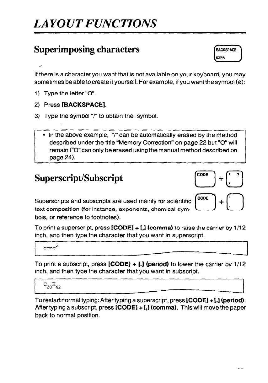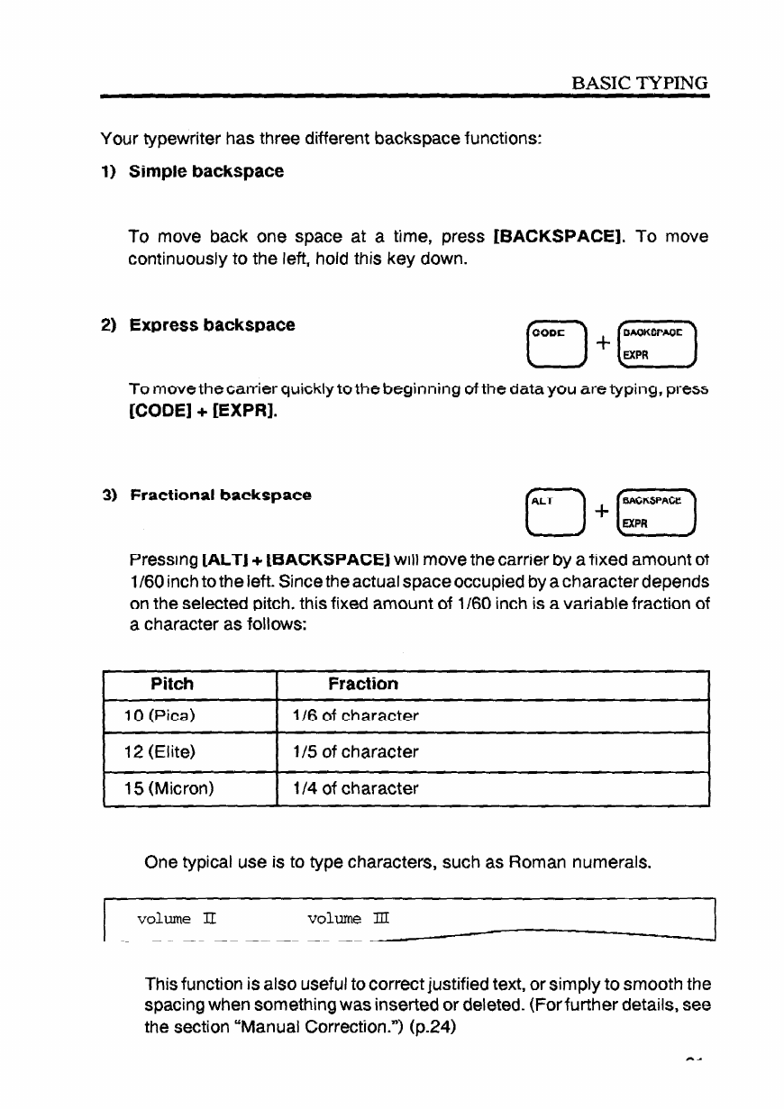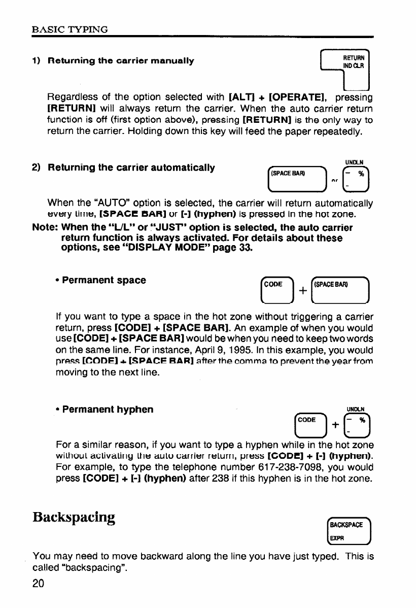 - Backspacing