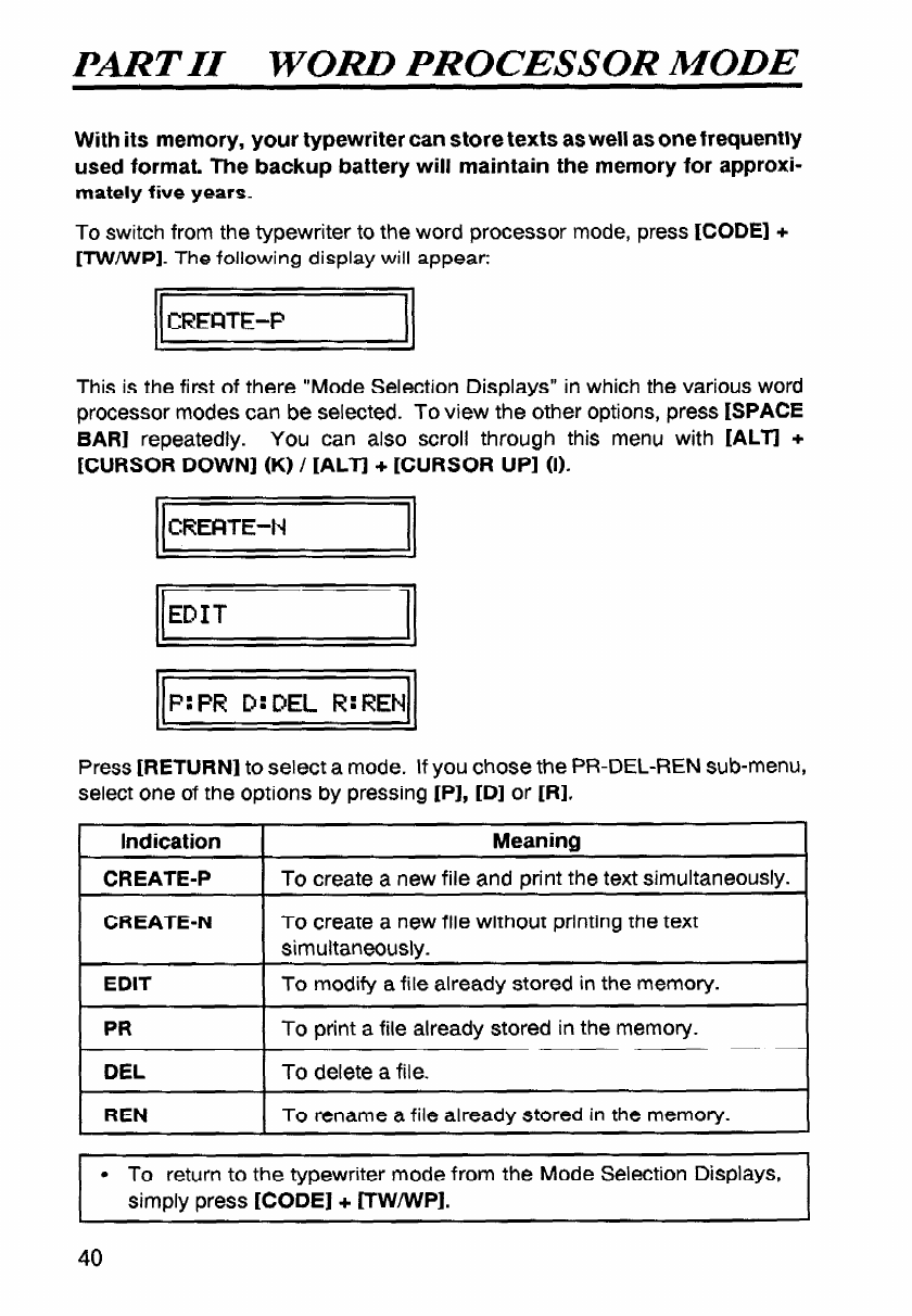 - Word Processor Mode