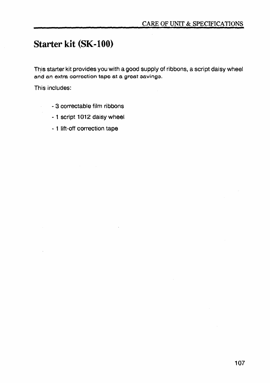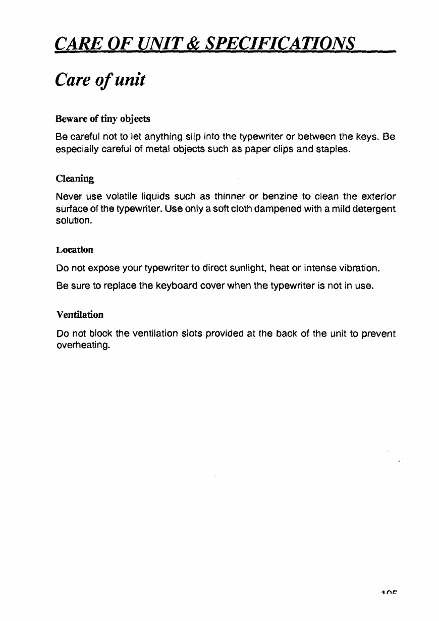 - Care of unit & specifications