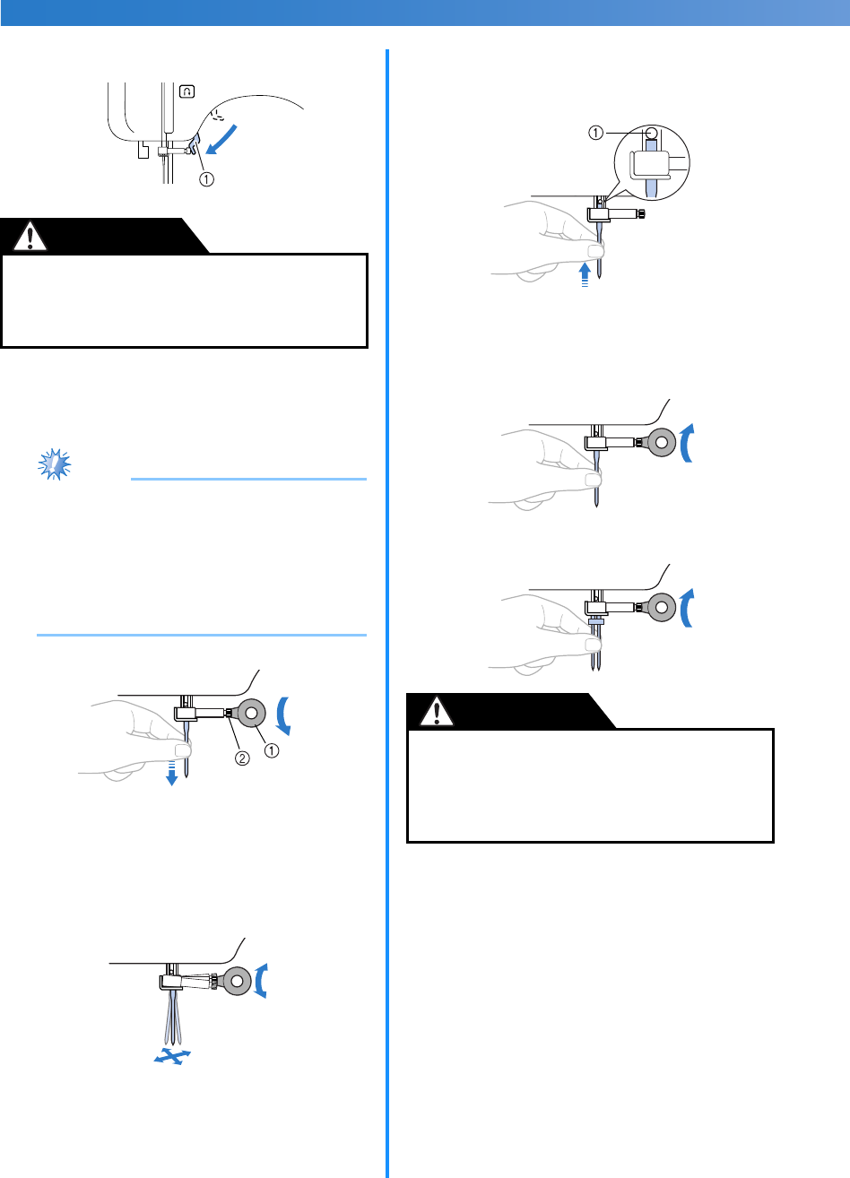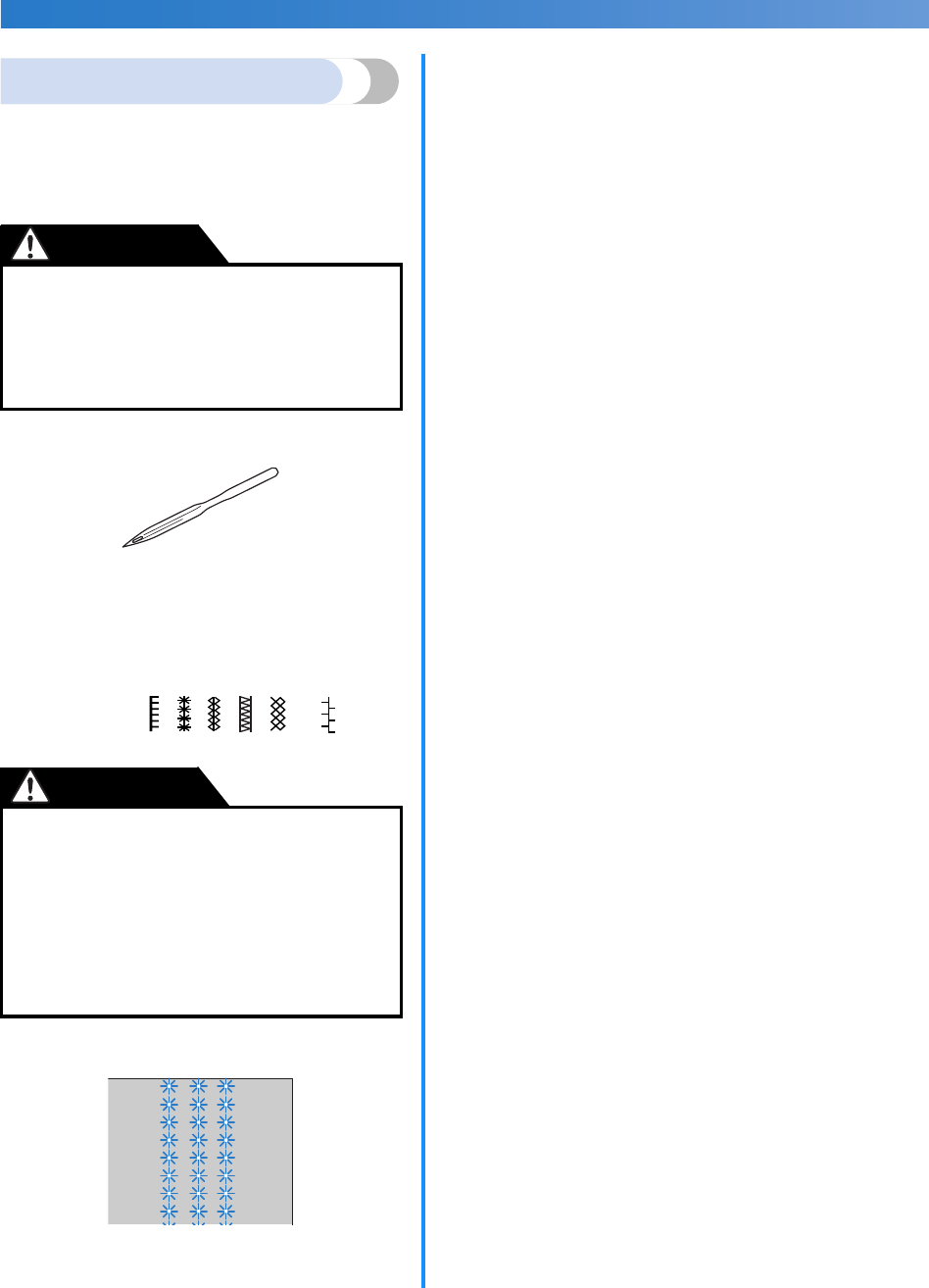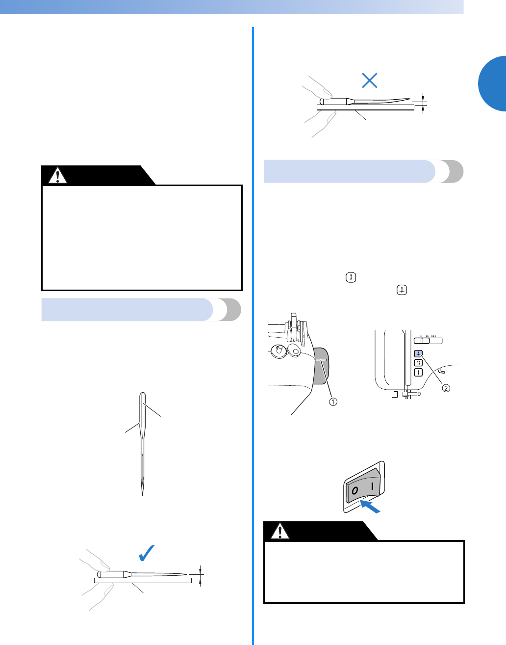 •Always pay close attention to the needle. Do not use bent or damaged needles.