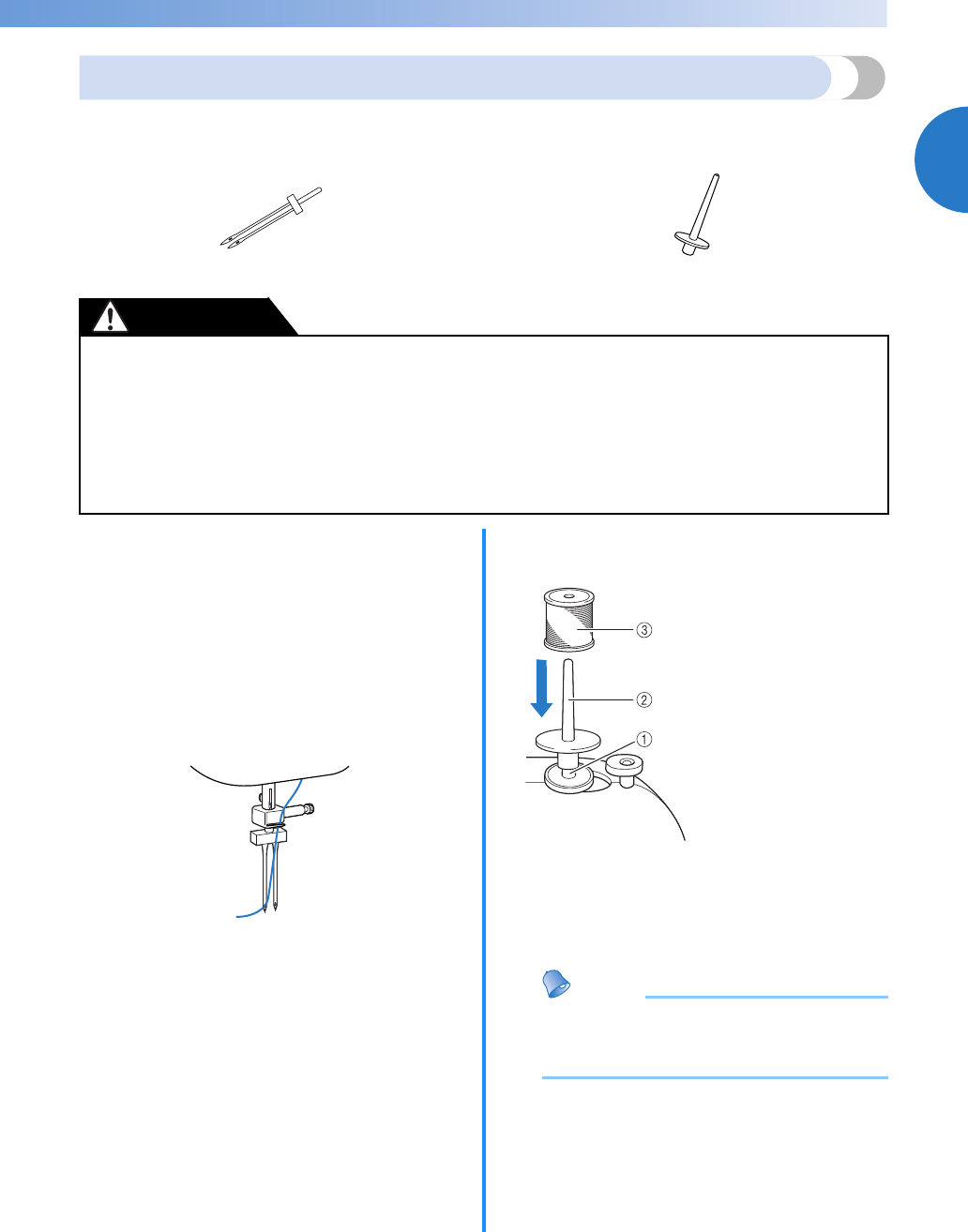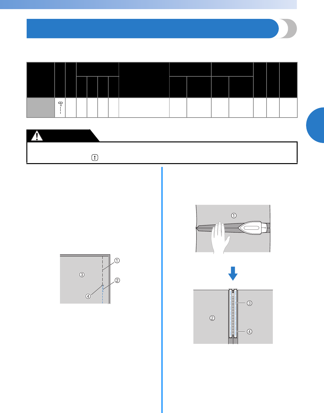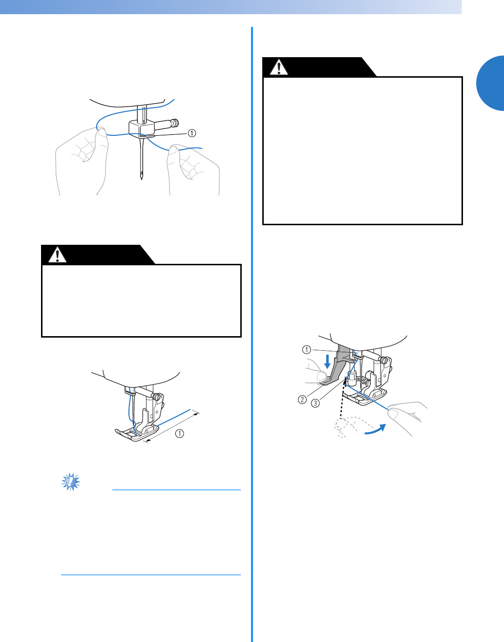 •Always pay close attention to the needle. Do not use bent or damaged needles.