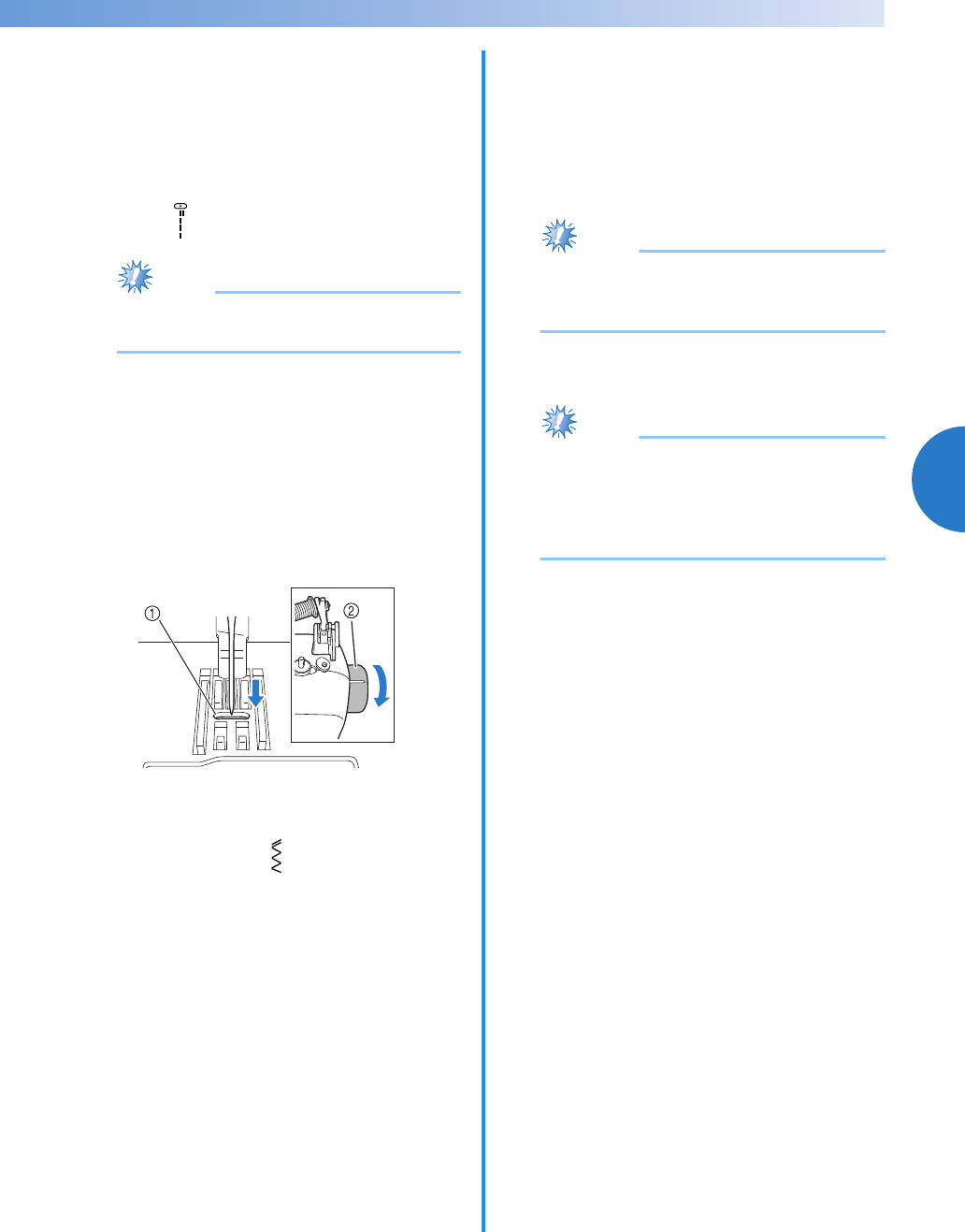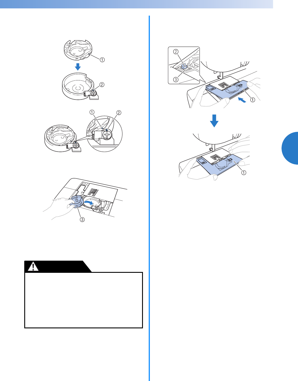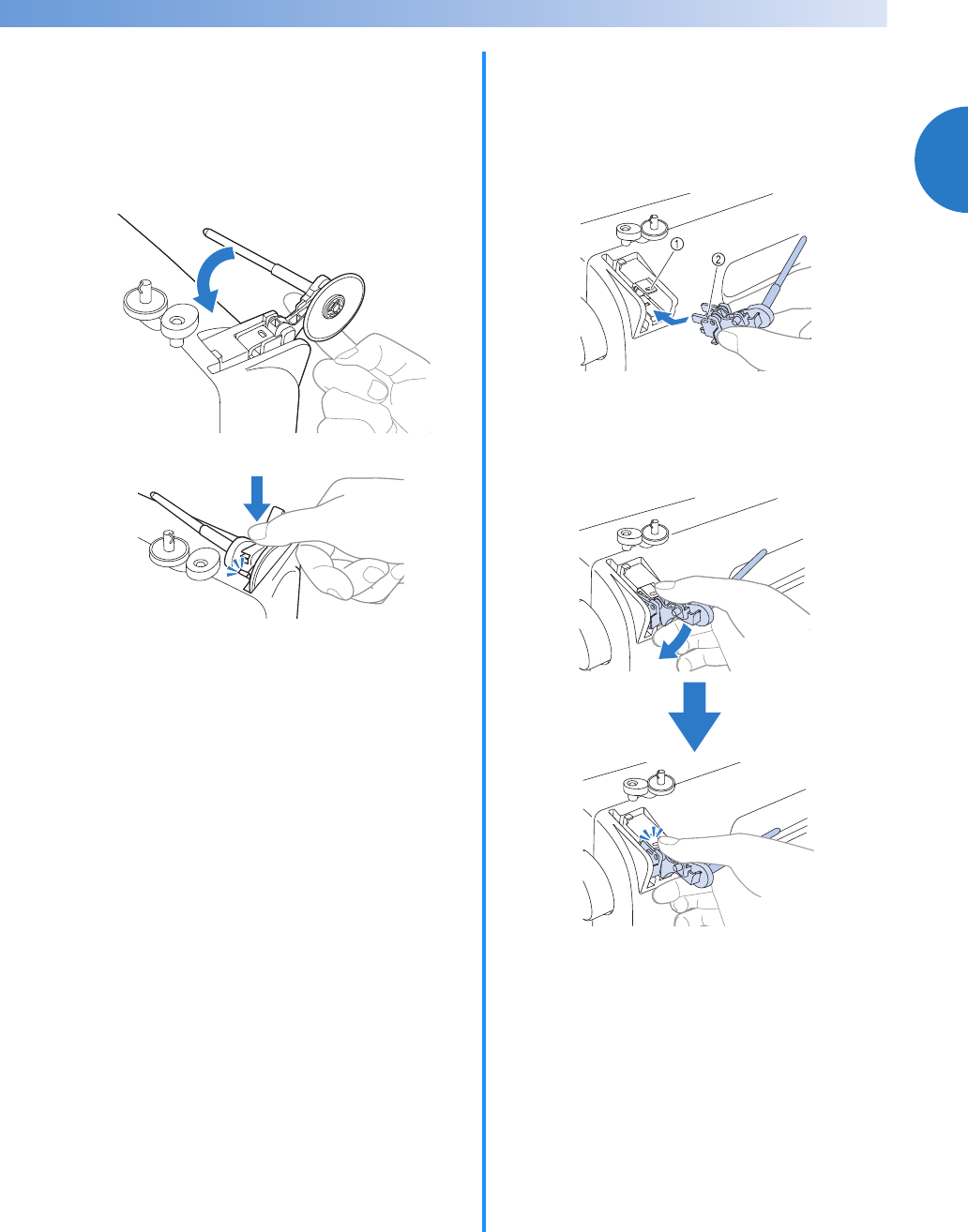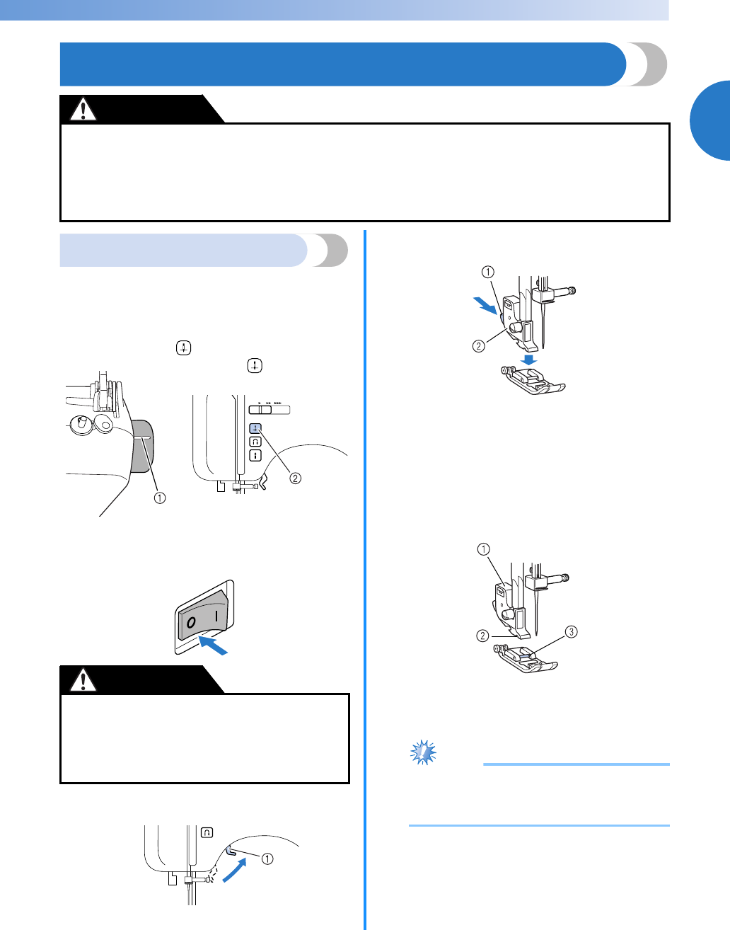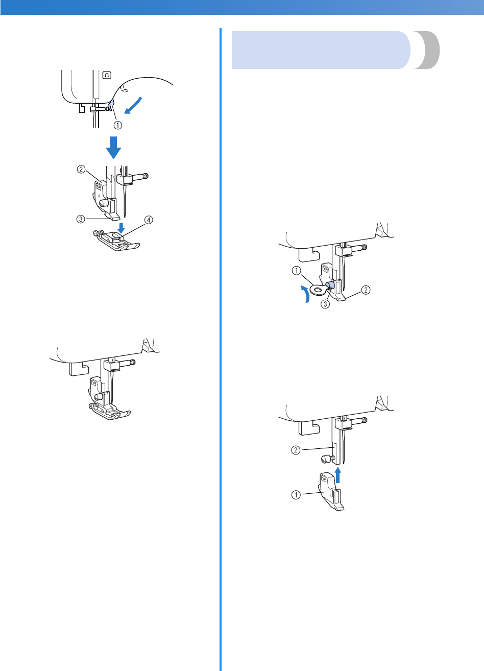 • Always consult the operation manual when replacing or installing any assemblies, the presser feet,